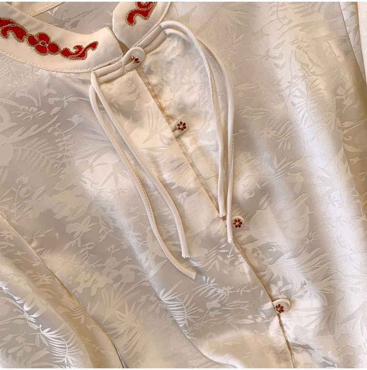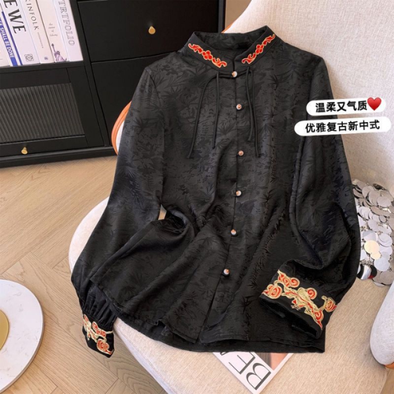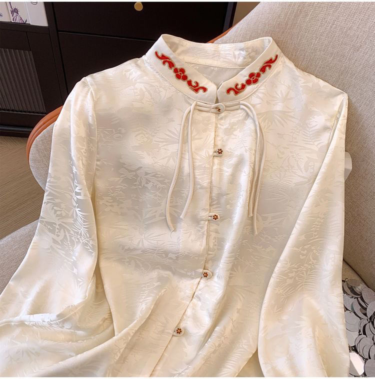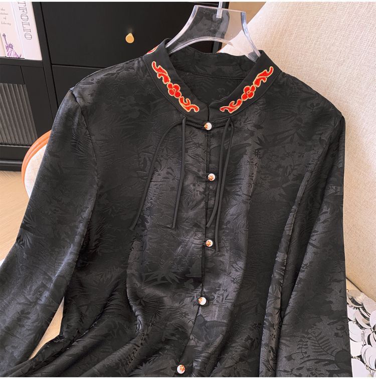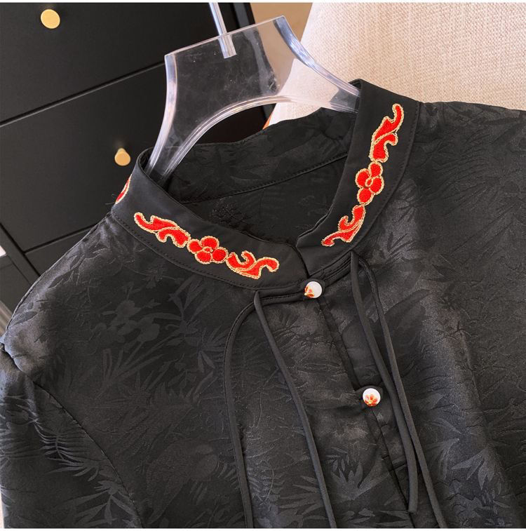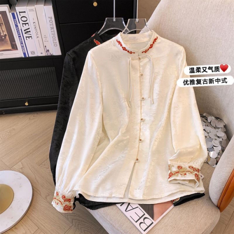 새로운 중국 스타일 자수 조끼 스커트 탑 봄과 여름 새로운 2024 국가 스타일 버클 긴팔 셔츠 스탠드 칼라 탕 세트 셔츠스토어 가기