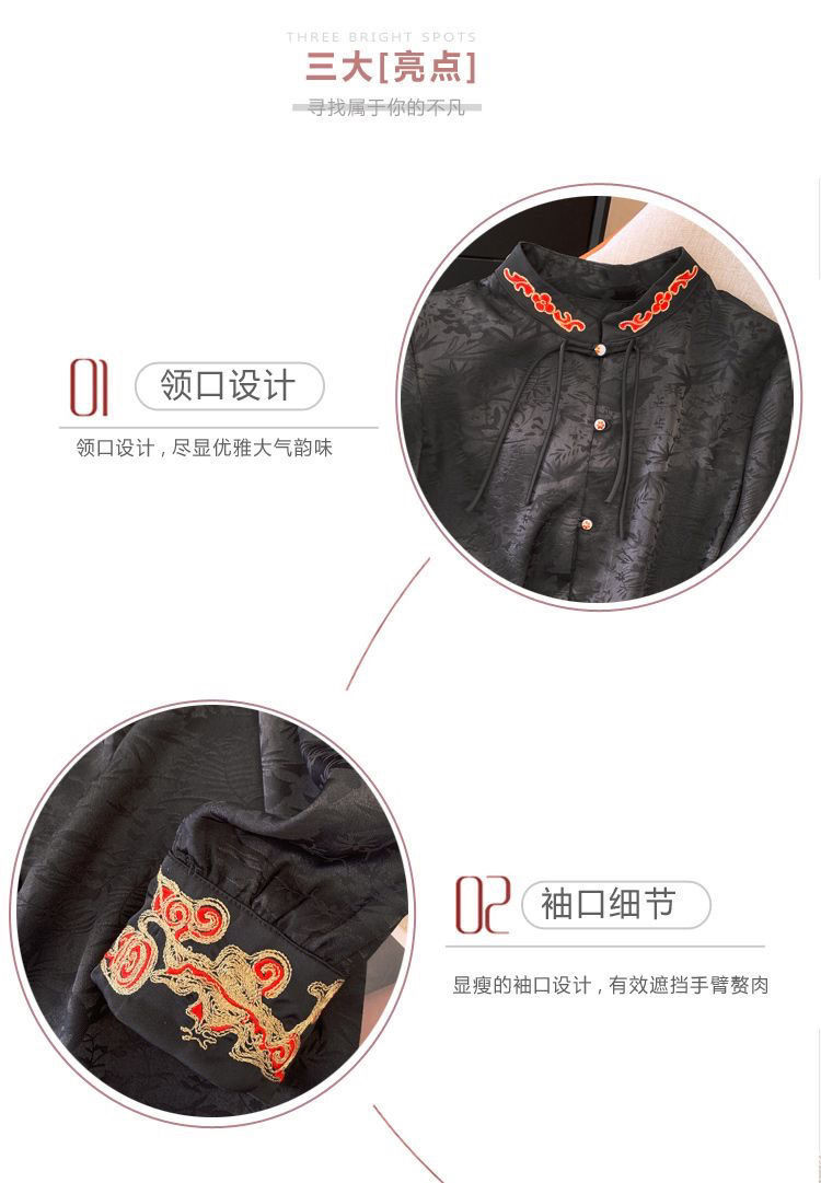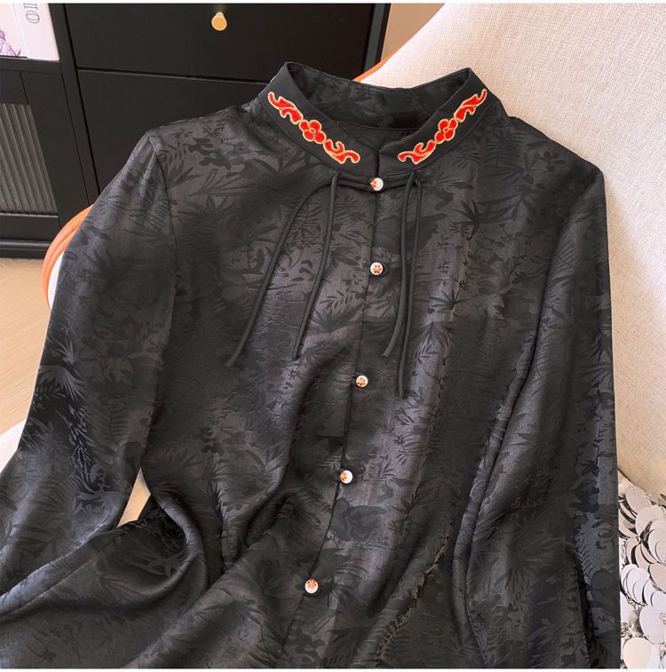 새로운 중국 스타일 자수 조끼 스커트 탑 봄과 여름 새로운 2024 국가 스타일 버클 긴팔 셔츠 스탠드 칼라 탕 세트 셔츠