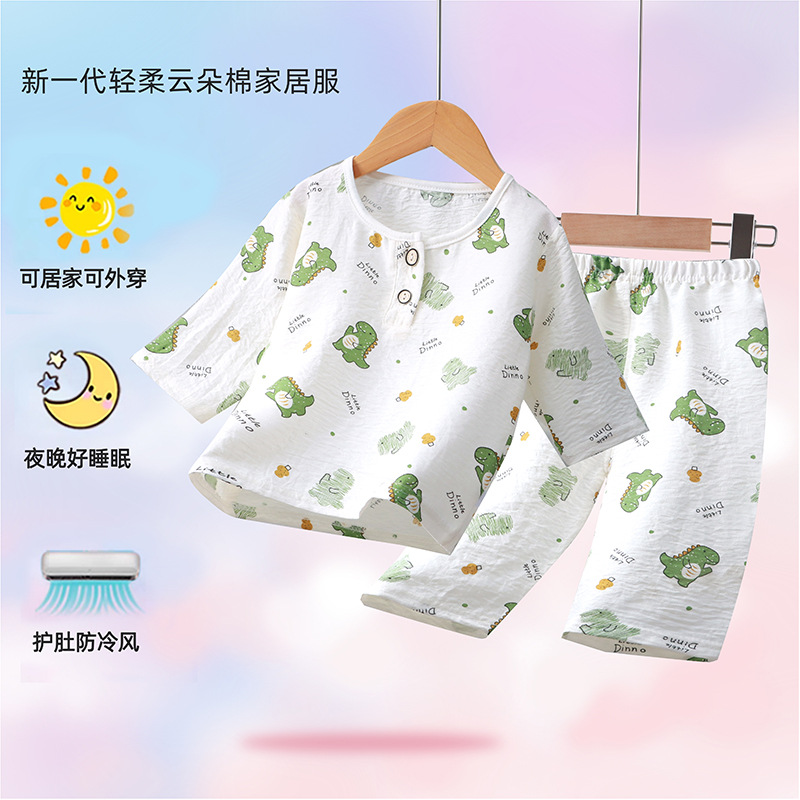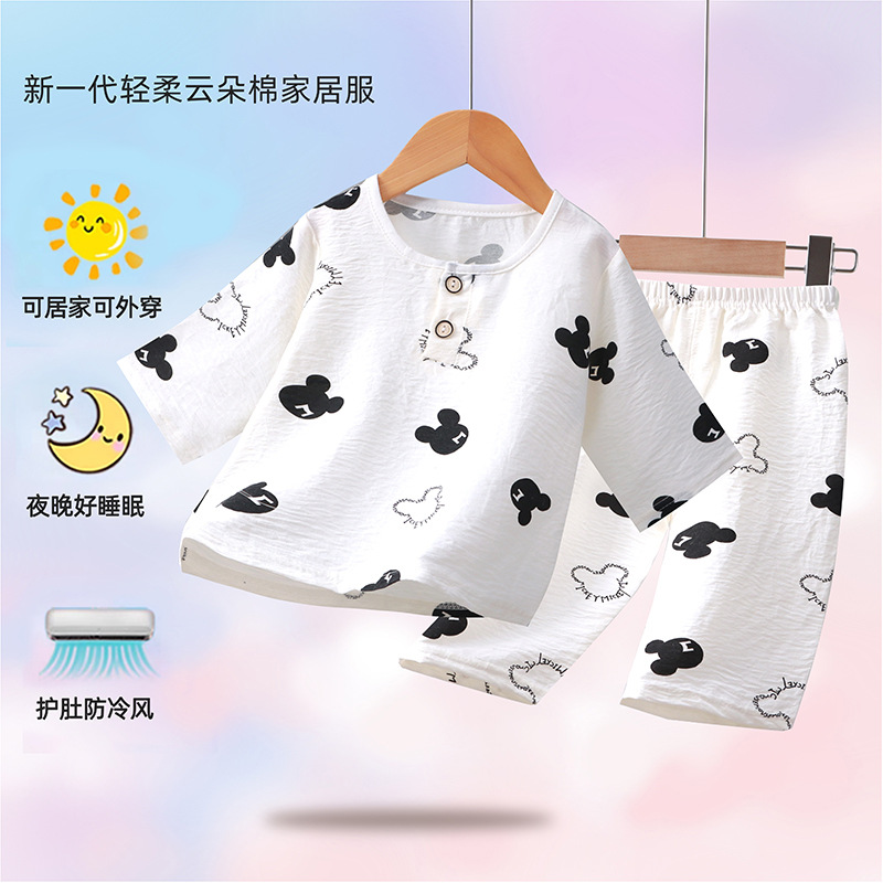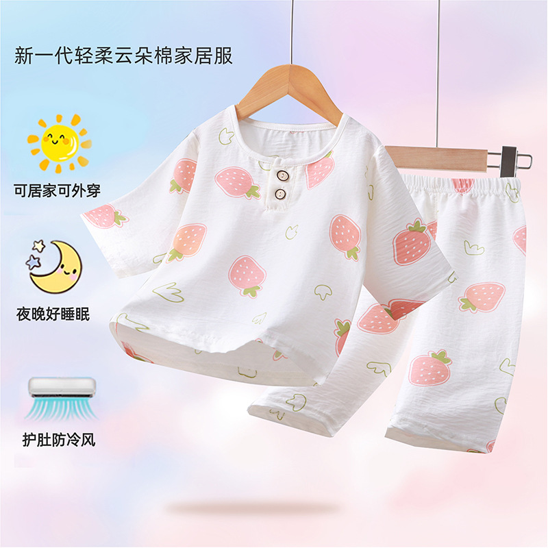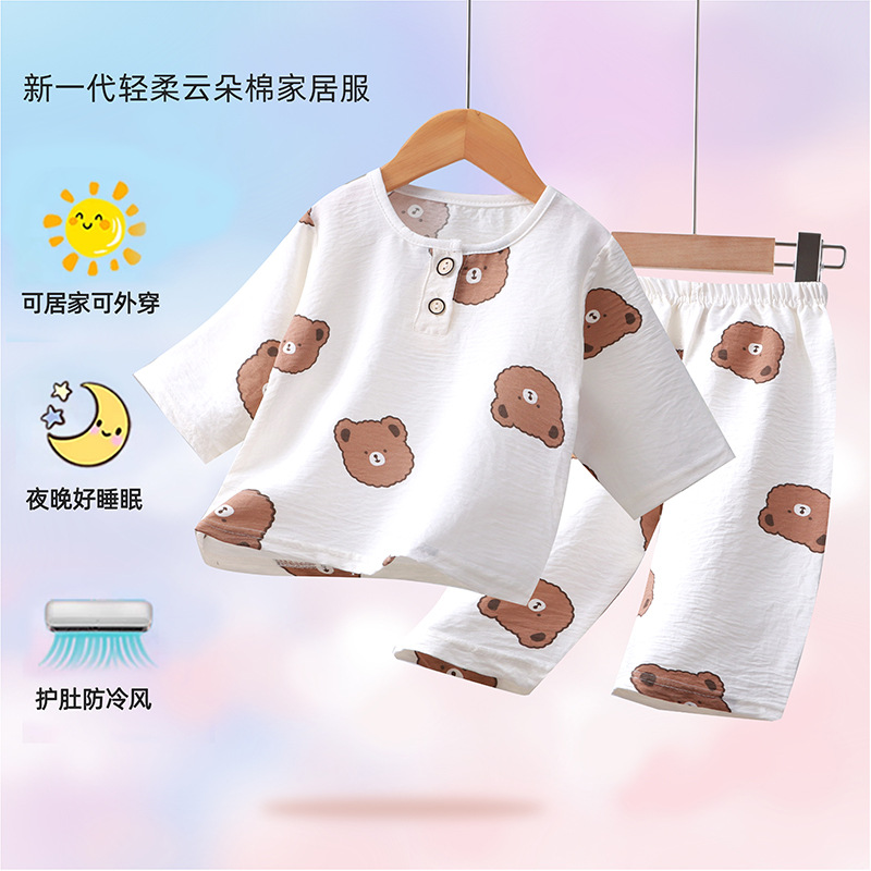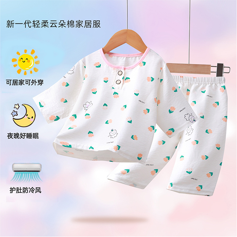 2024 새로운 어린이 구름 면 소년과 소녀를위한 7 점 슬리브 홈 옷 부드럽고 편안한 얇은 파자마 2 피스 패션 세트