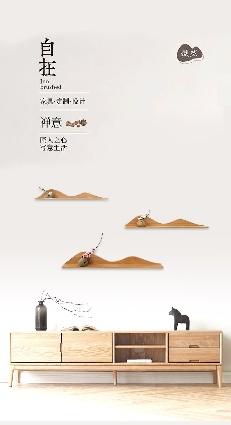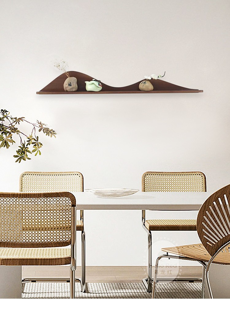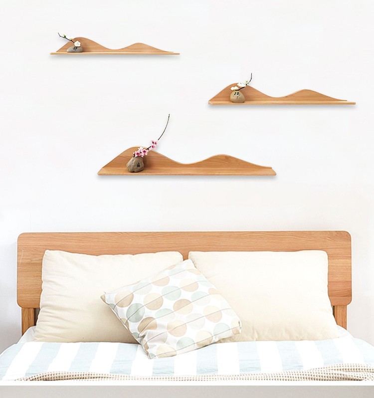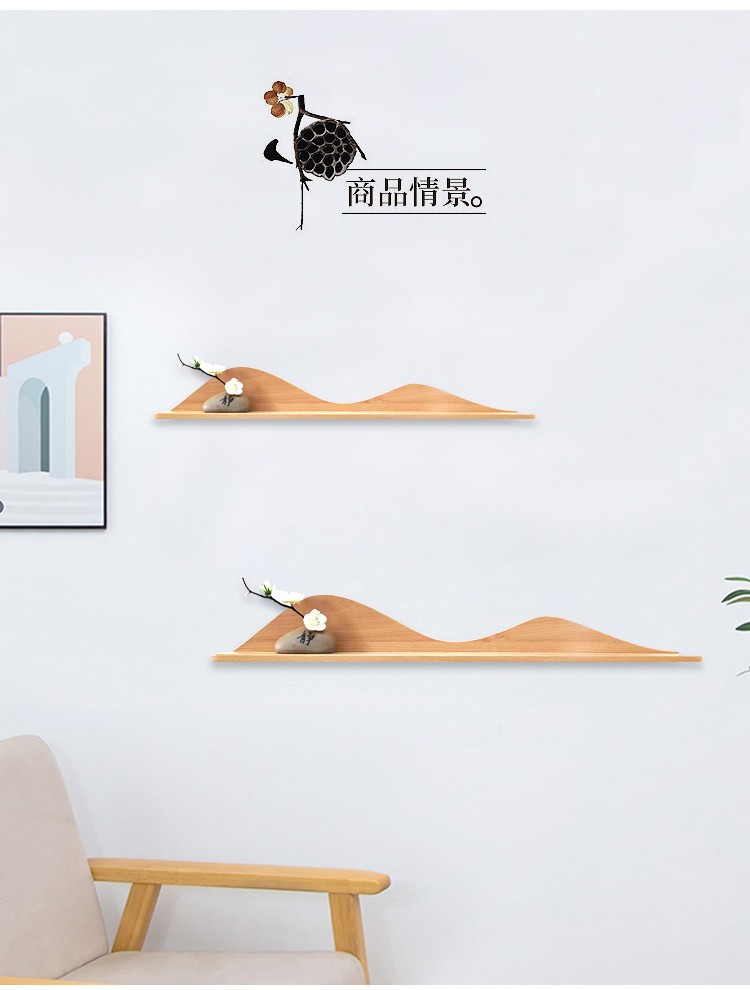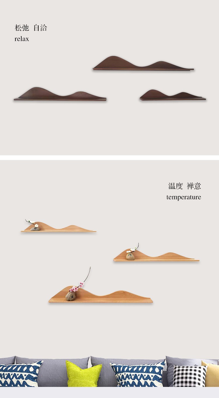 새로운 중국 스타일의 단단한 나무 풍경 저장 선반 창조적 인 저장 브래킷 간단한 장식 나무 칸막이 벽에 장착 벽이없는