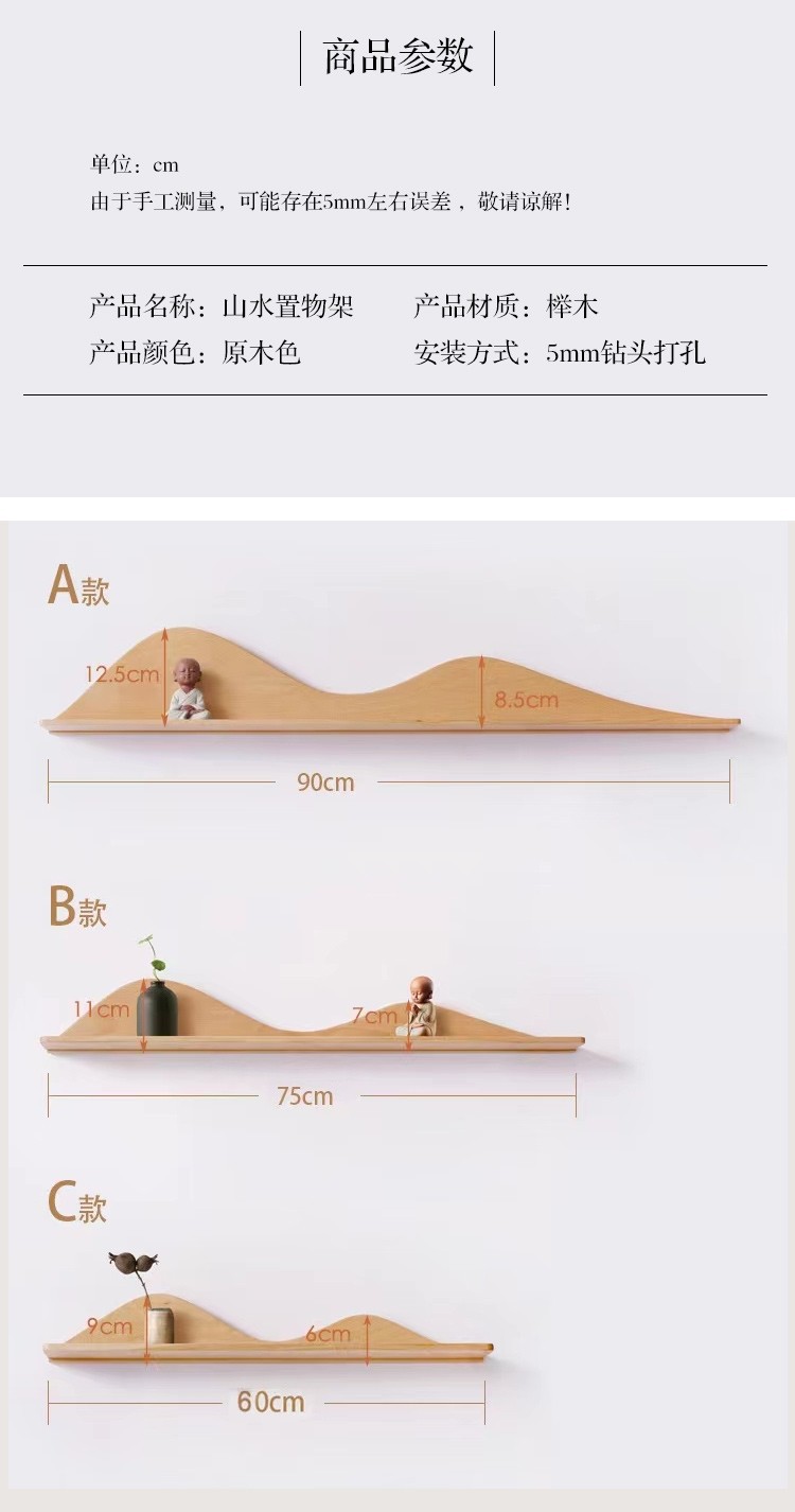 새로운 중국 스타일의 단단한 나무 풍경 저장 선반 창조적 인 저장 브래킷 간단한 장식 나무 칸막이 벽에 장착 벽이없는스토어 가기
