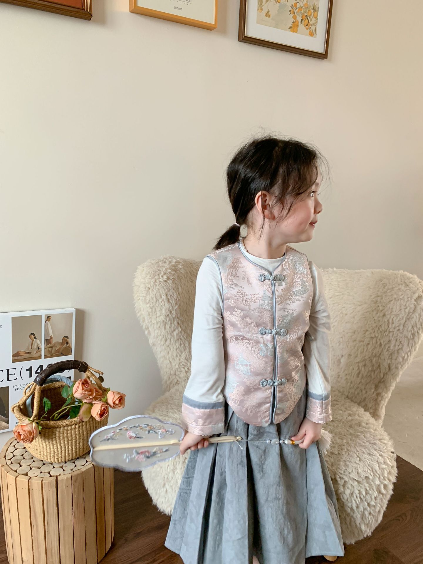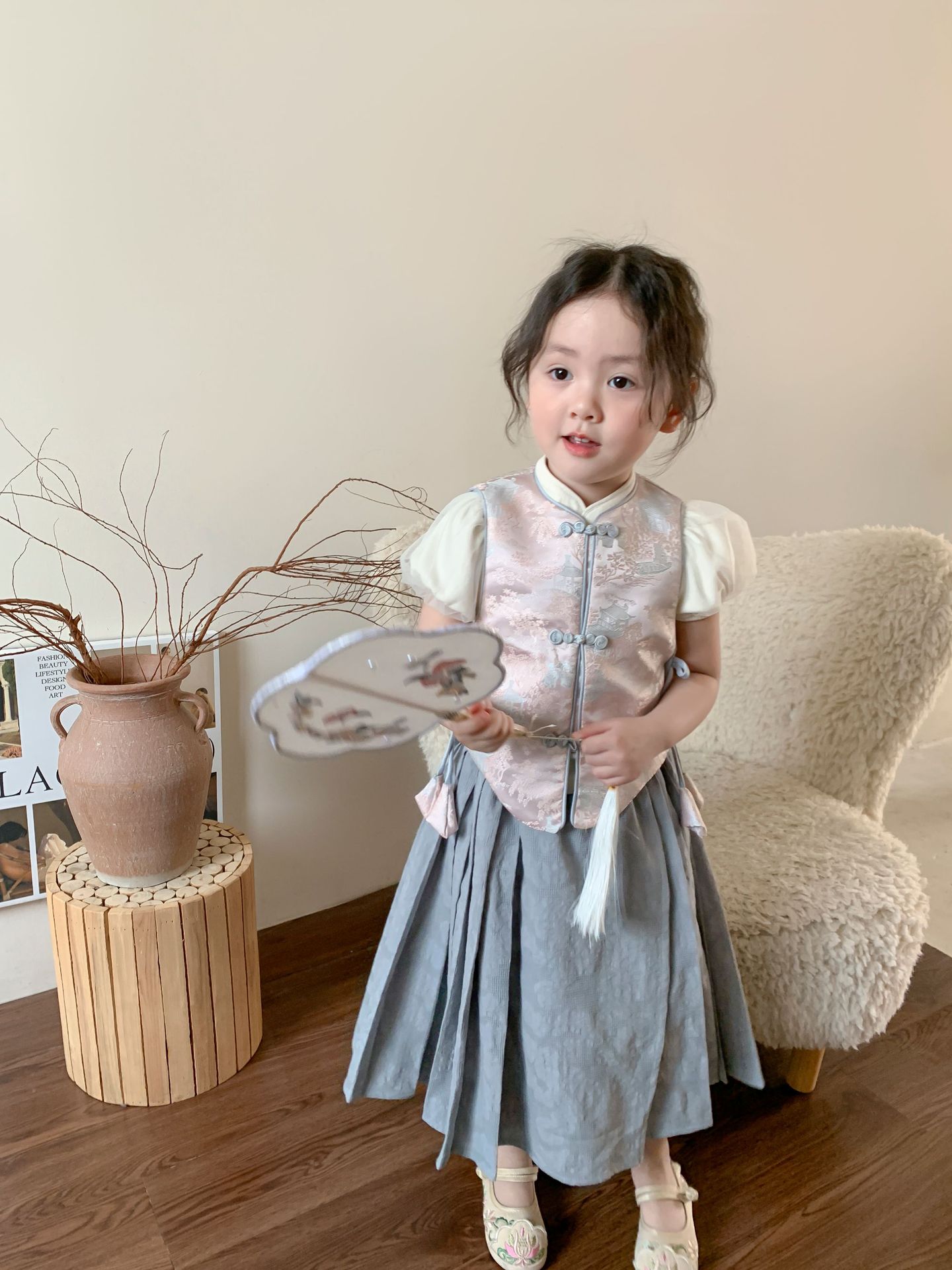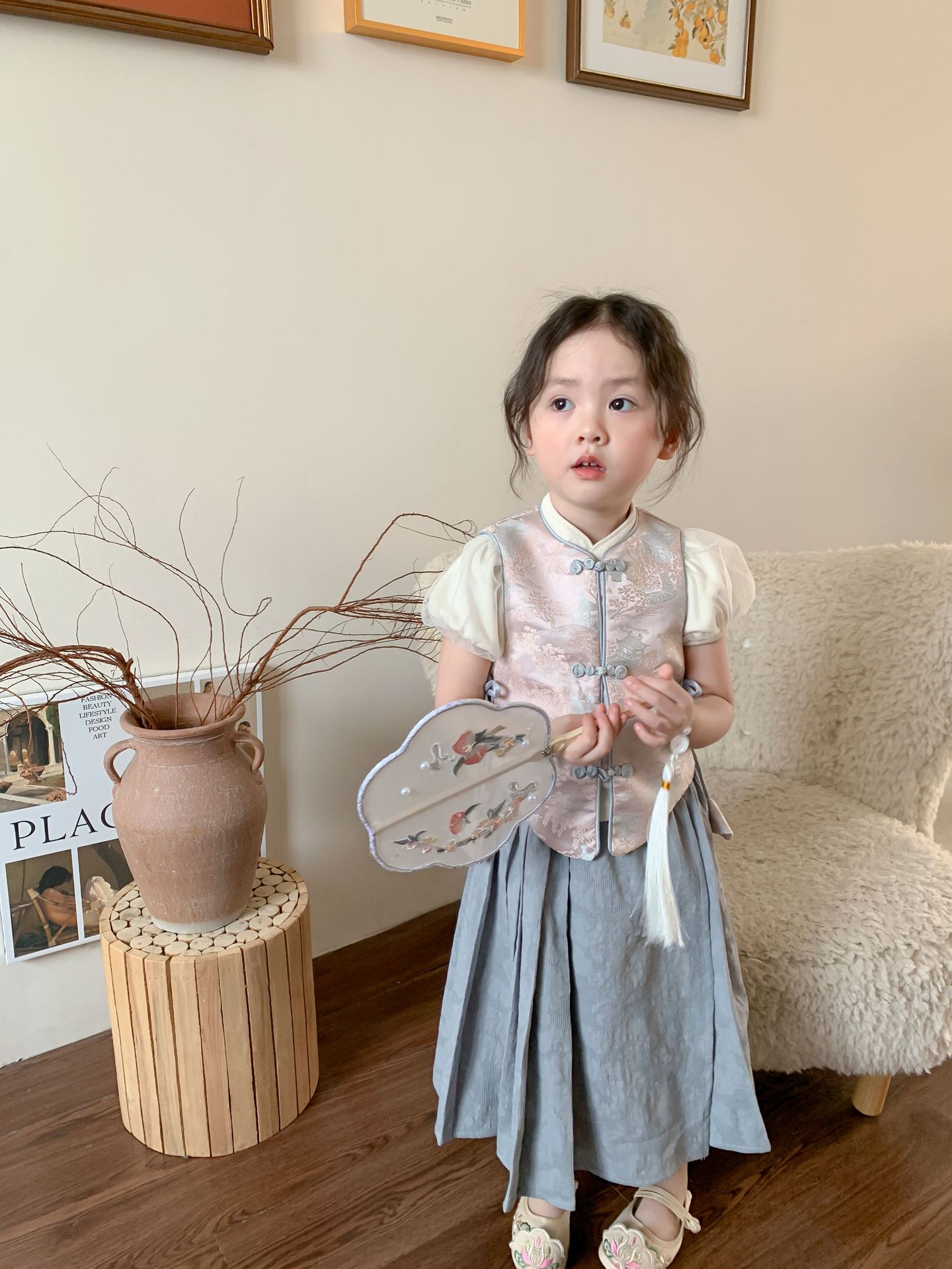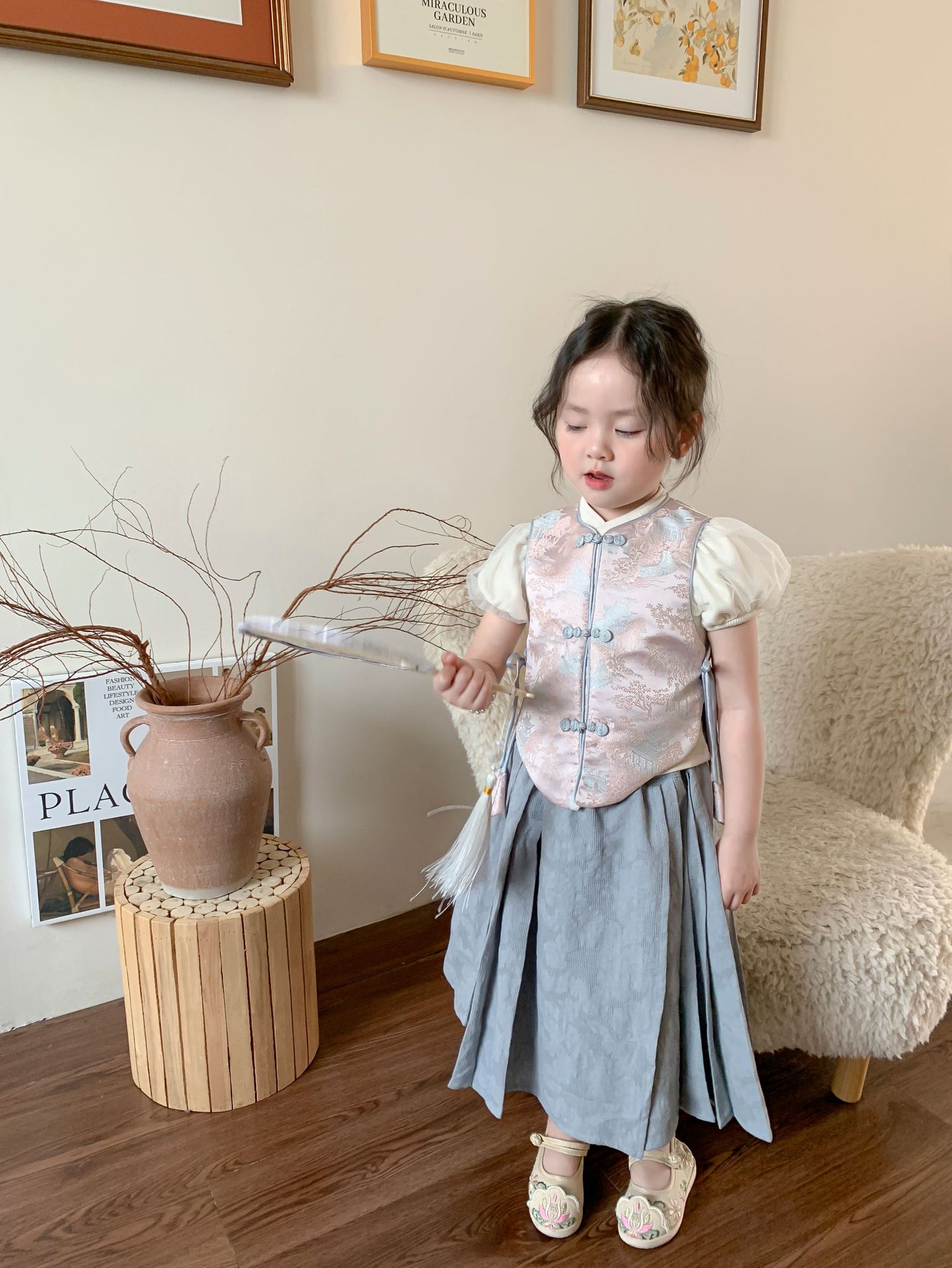 【재고정리】웨이무 아동복 여아 세트 2024 여름 신상품 아동 한국 스타일 신중국풍 상의와 스커트스토어 가기