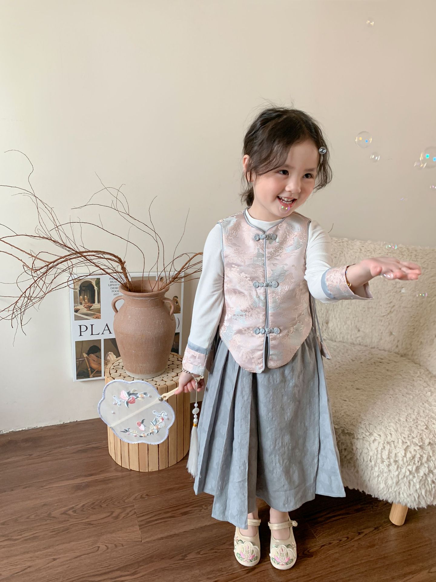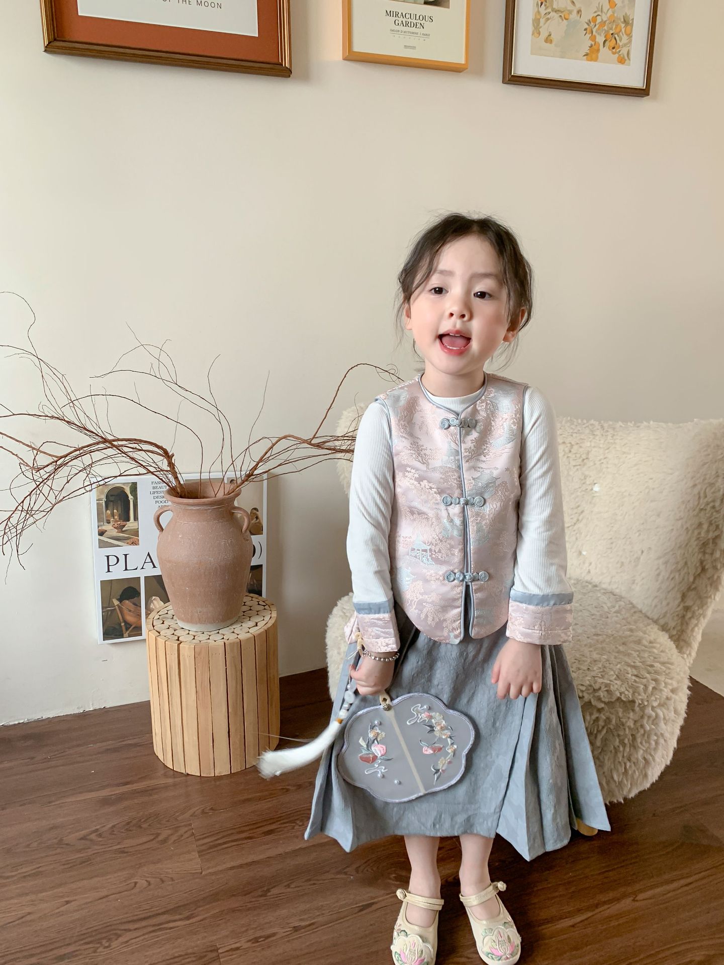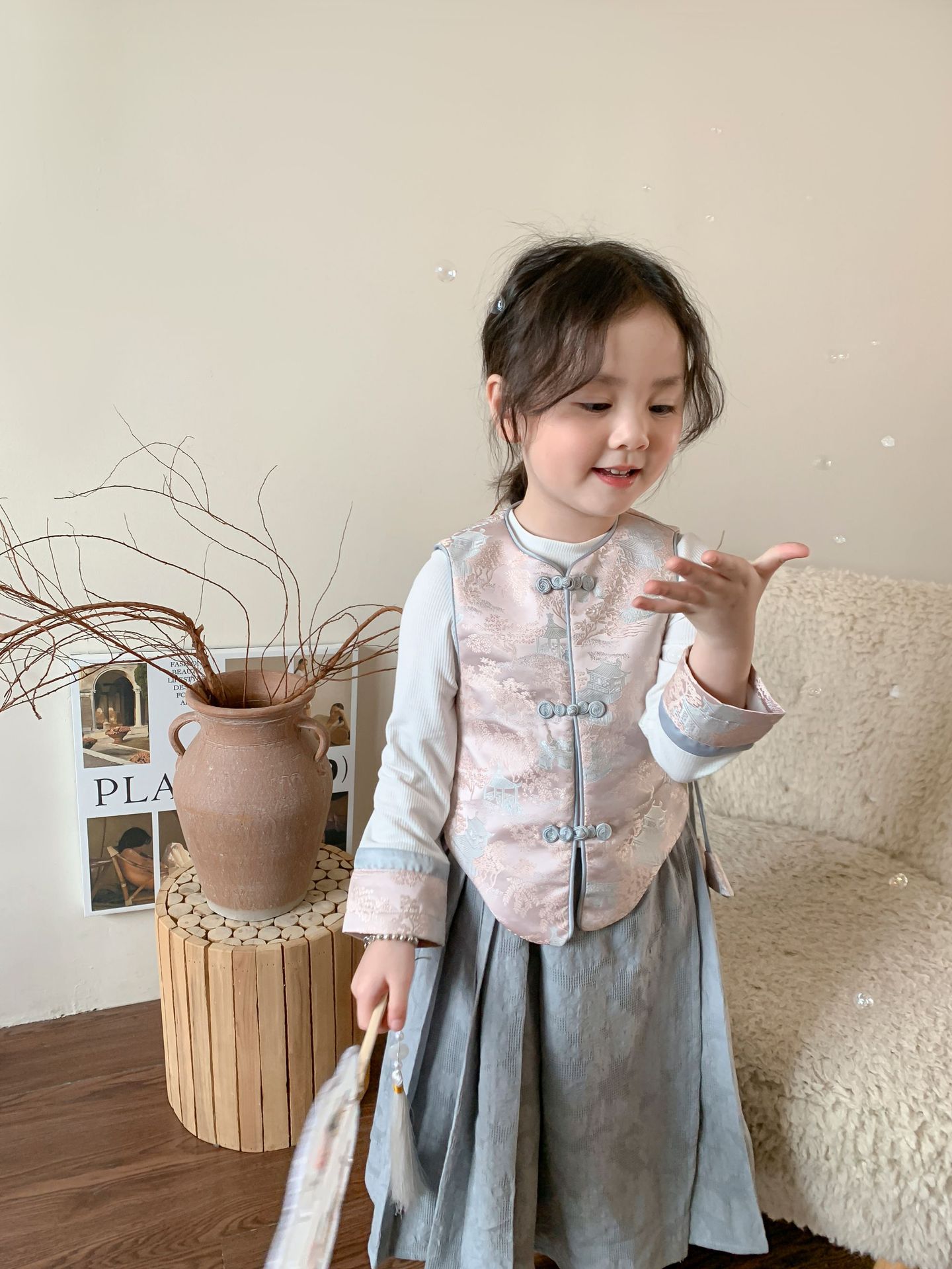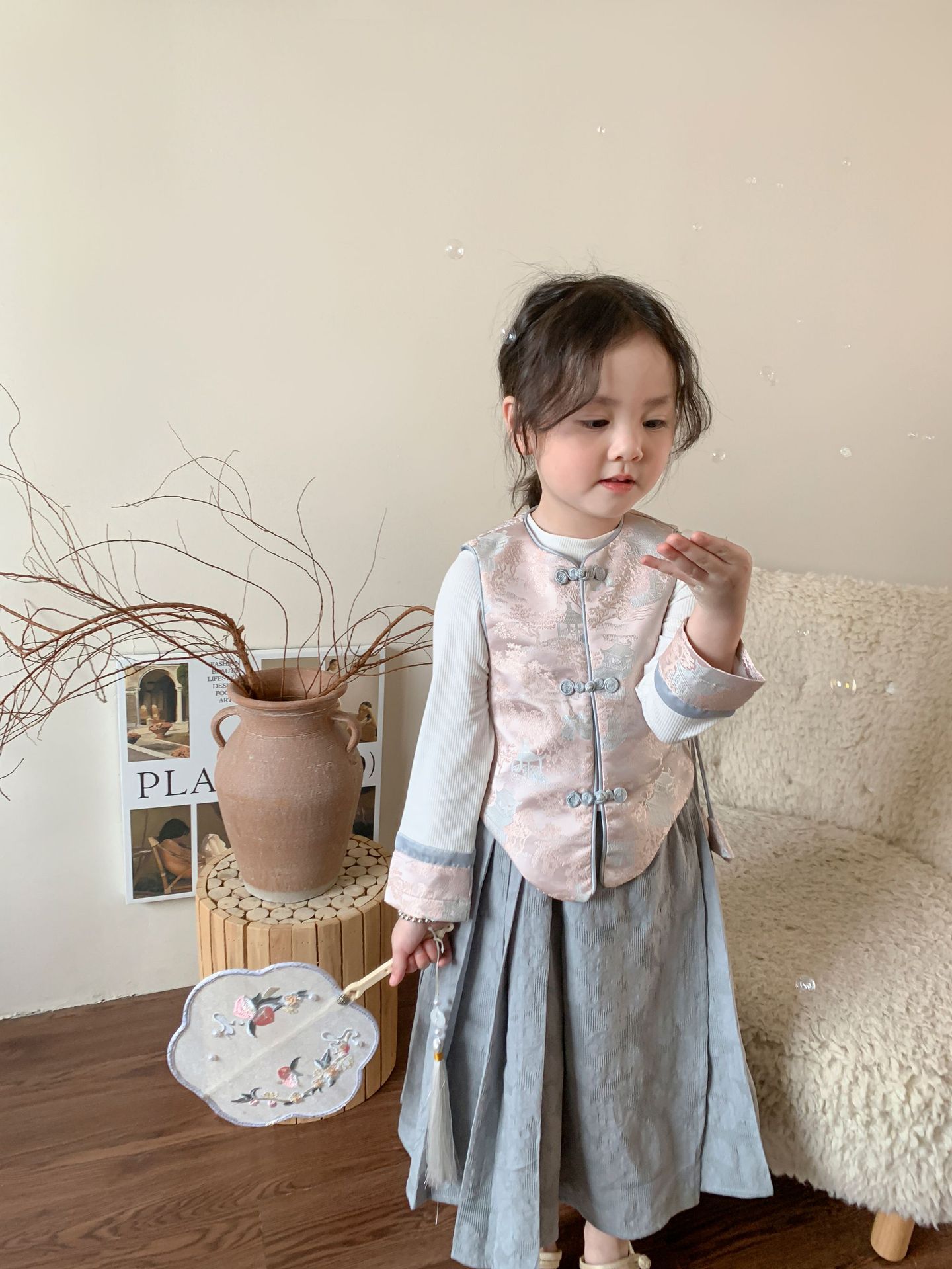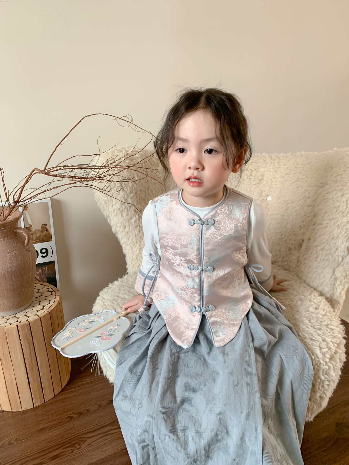 【재고정리】웨이무 아동복 여아 세트 2024 여름 신상품 아동 한국 스타일 신중국풍 상의와 스커트스토어 가기