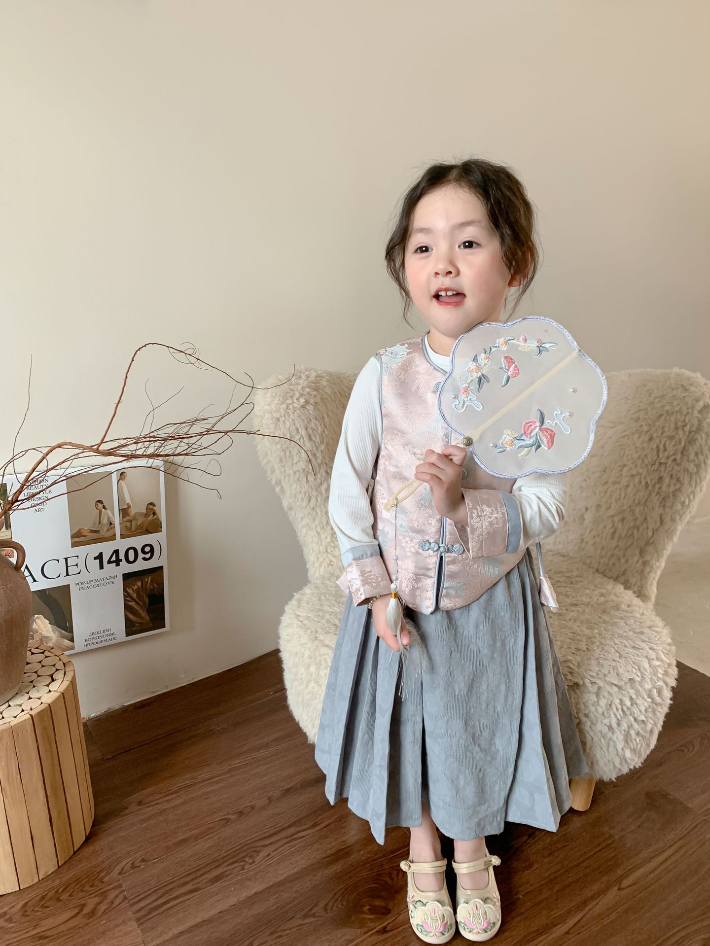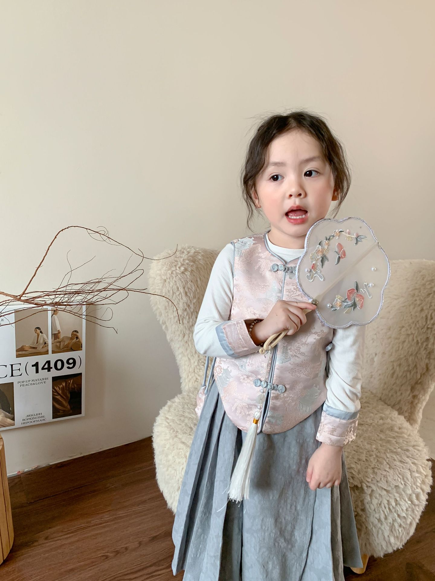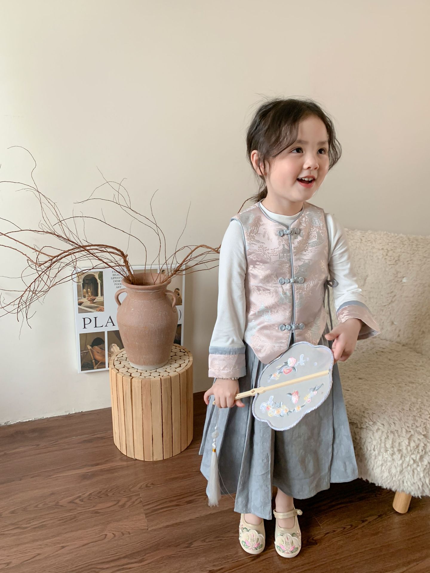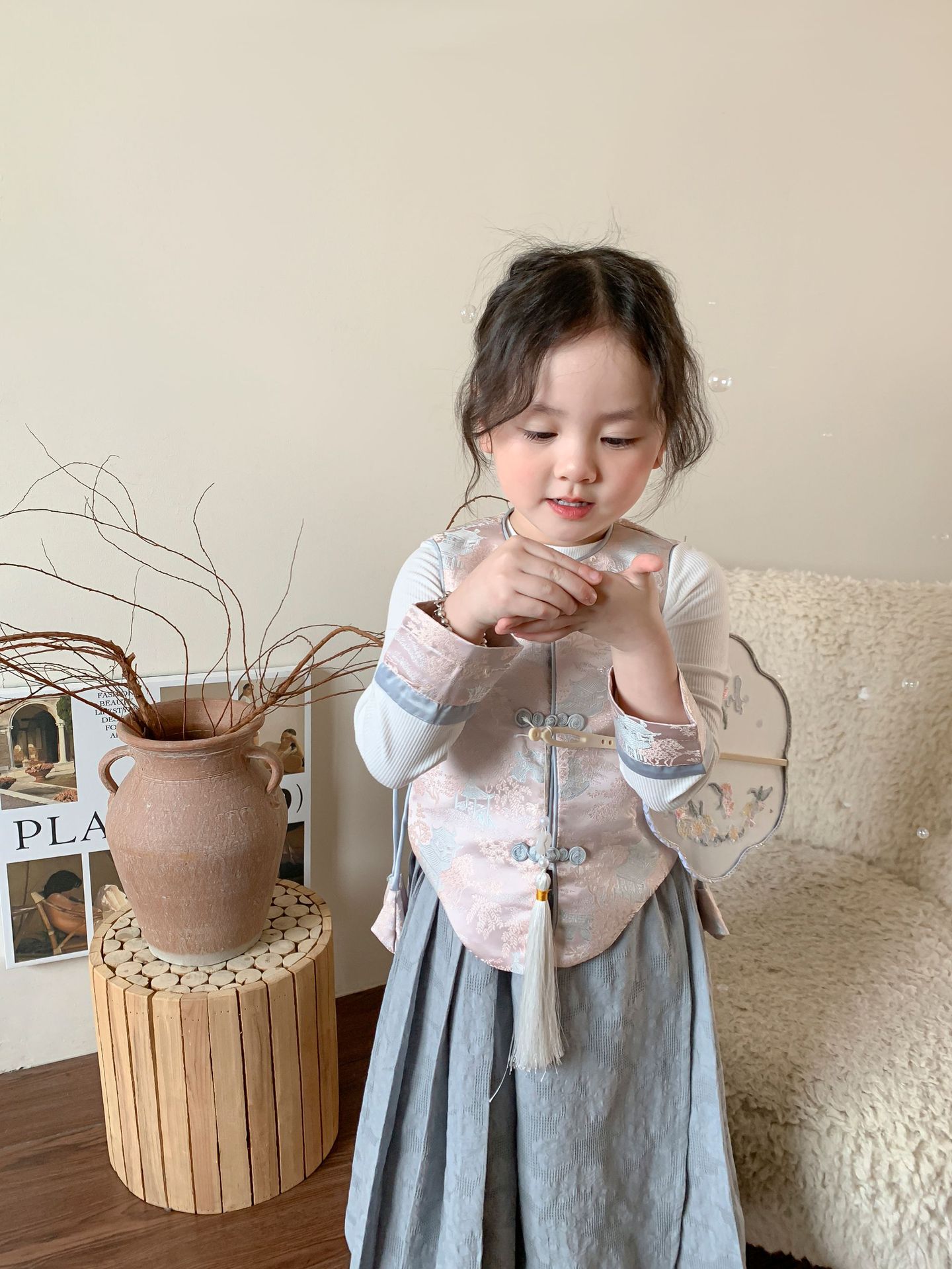 【재고정리】웨이무 아동복 여아 세트 2024 여름 신상품 아동 한국 스타일 신중국풍 상의와 스커트스토어 가기