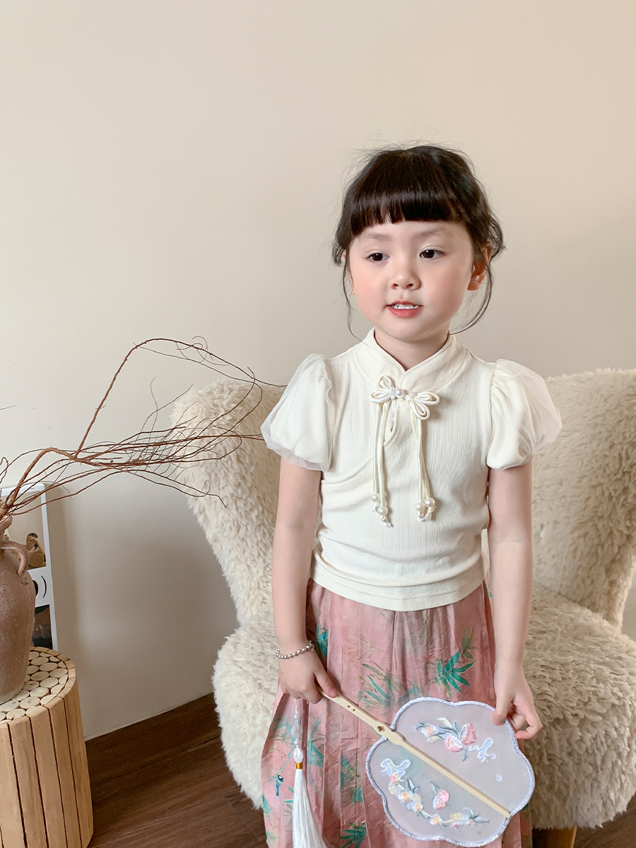 【재고정리】웨이무 아동복 여아 세트 2024 여름 신상품 아동 한국 스타일 신중국풍 상의와 스커트