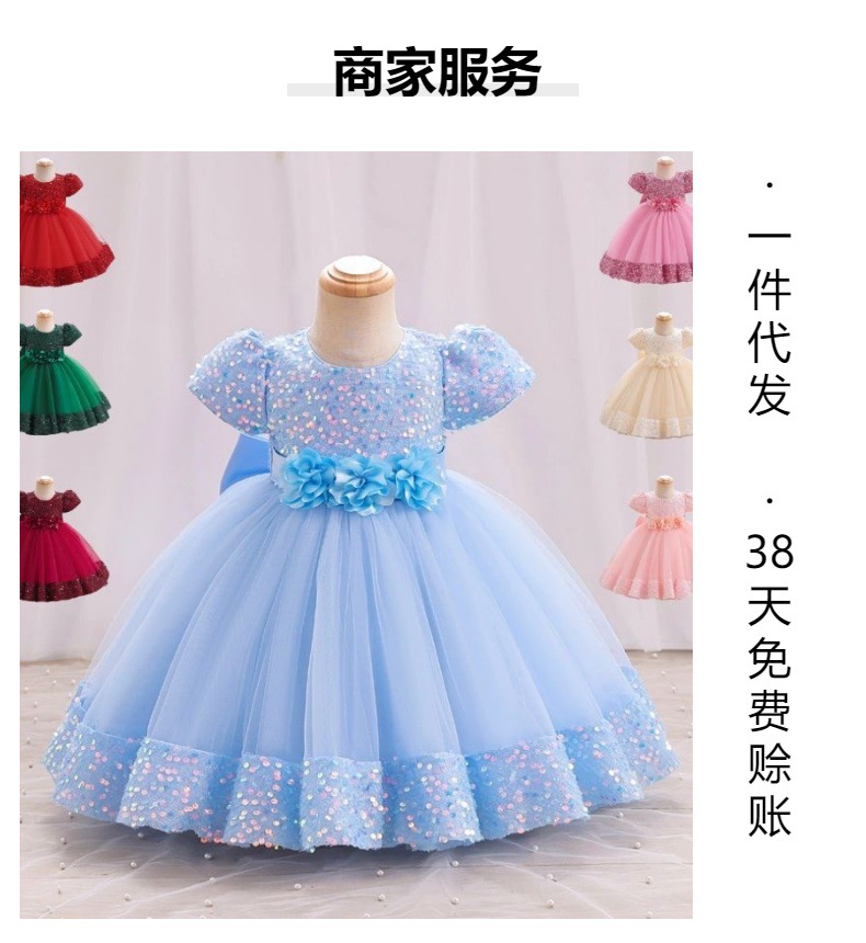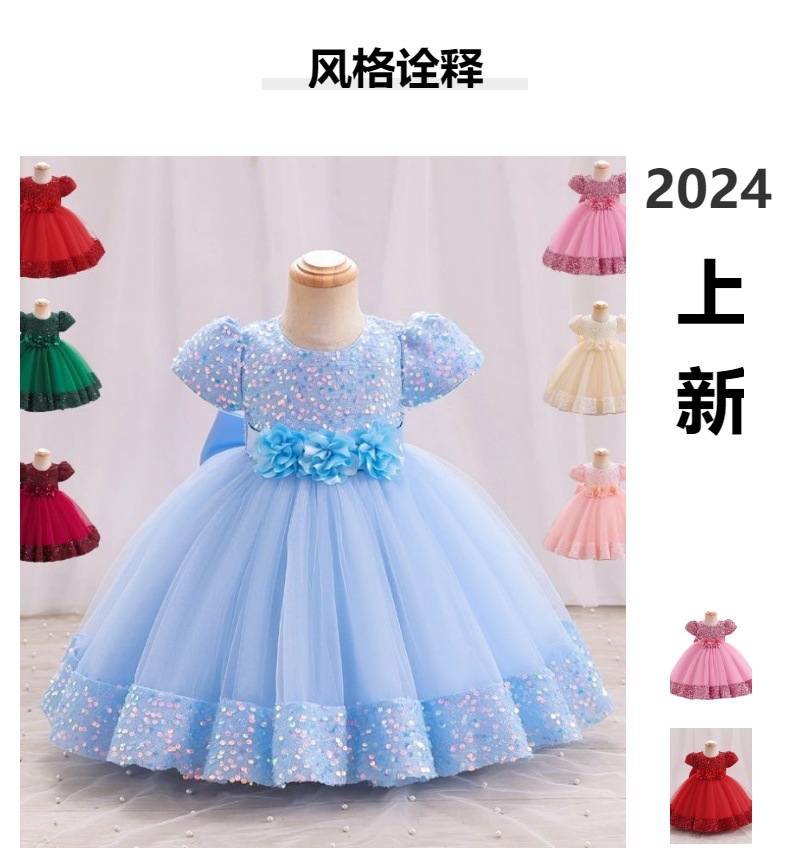 소녀 원피스 원피스 공주 어린이 원피스 2024 새로운 반팔 스팽글 페티 스커트 어린이 원피스 국경 도매스토어 가기