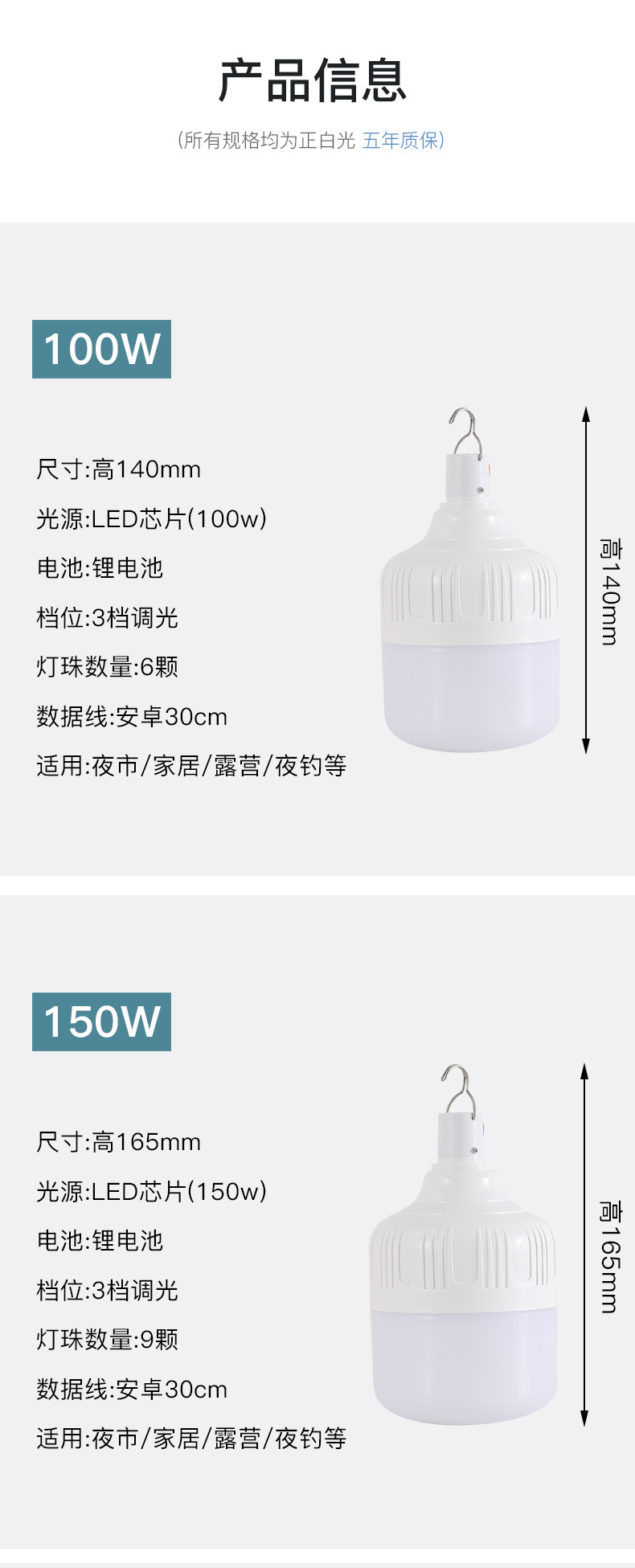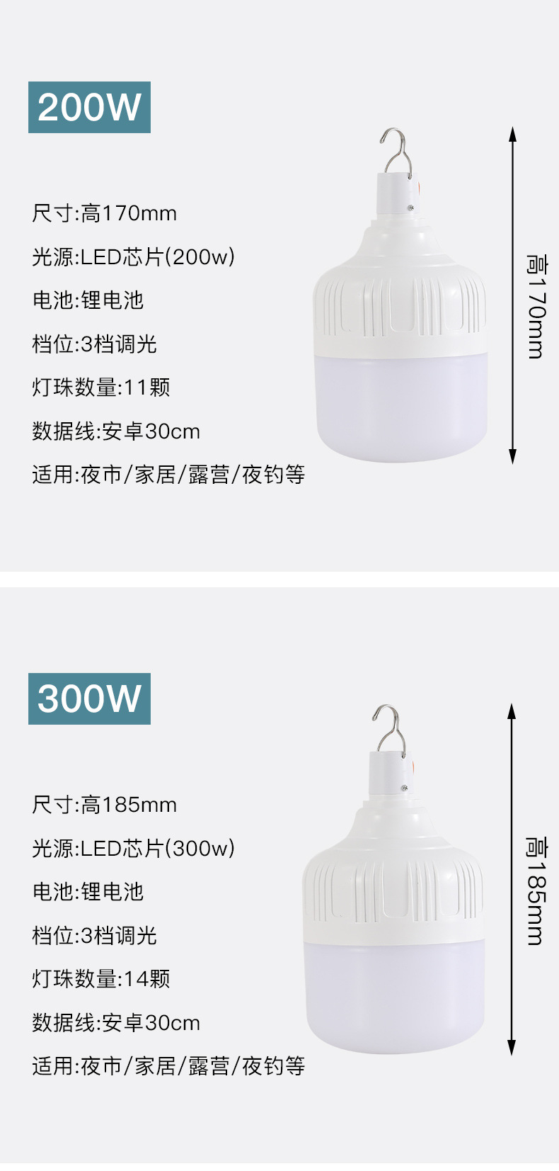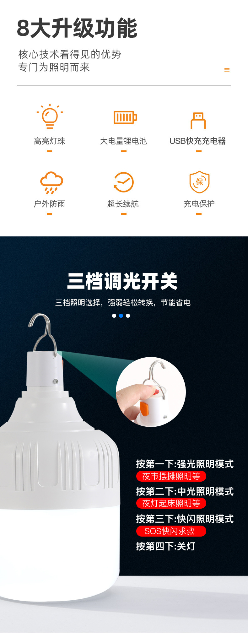 충전식 LED 스톨 전구 정전 비상 가구 전구 야간 시장 야외 캠핑 방수 실속 등스토어 가기
