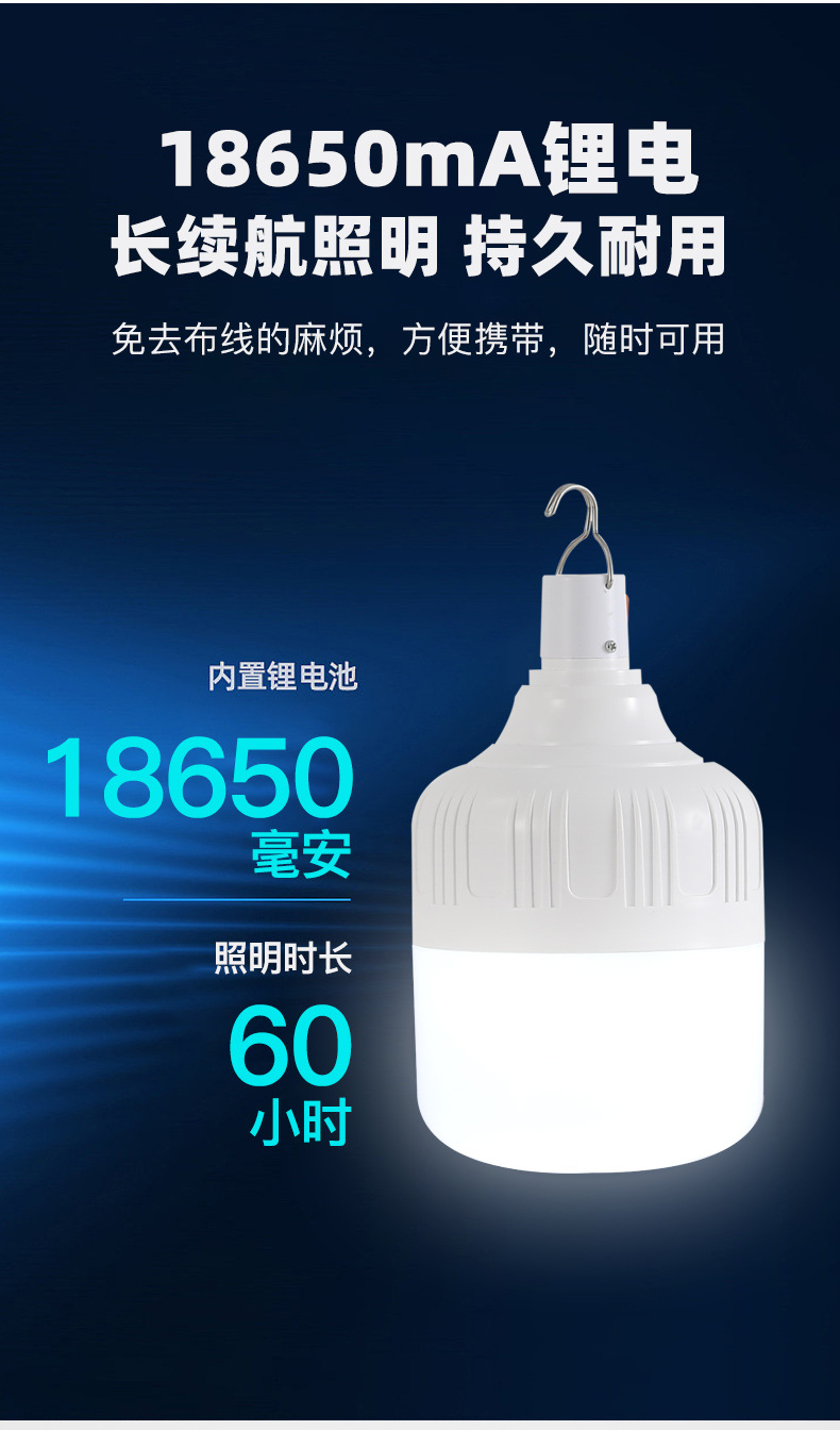 충전식 LED 스톨 전구 정전 비상 가구 전구 야간 시장 야외 캠핑 방수 실속 등
