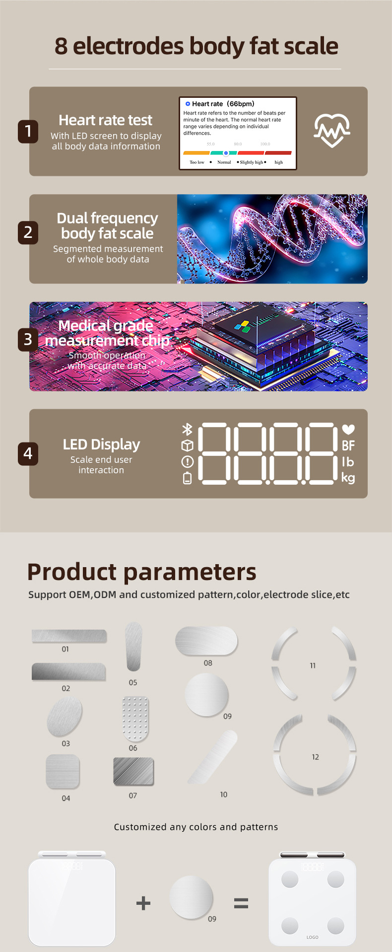 我们支持常规的定制:秤面ID设计,更改玻璃秤面颜色,印刷你喜欢的图片,更改包装印刷说明书印刷都可以