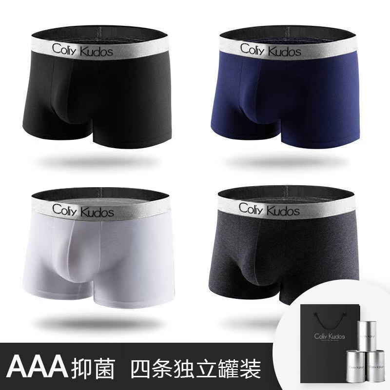 생일 선물 상자 통조림 남성 속옷 면직물 권투 선수 남성의 항균 편안한 근접 복서 브리프