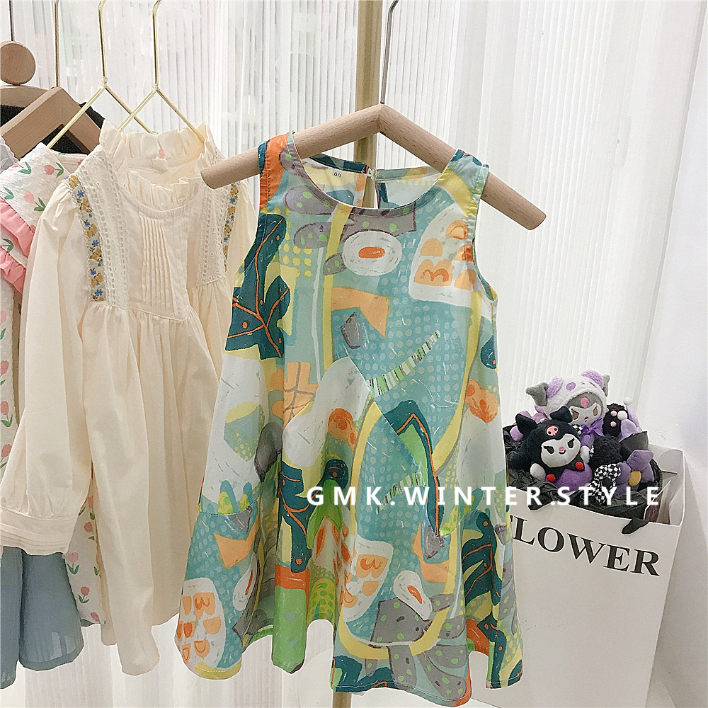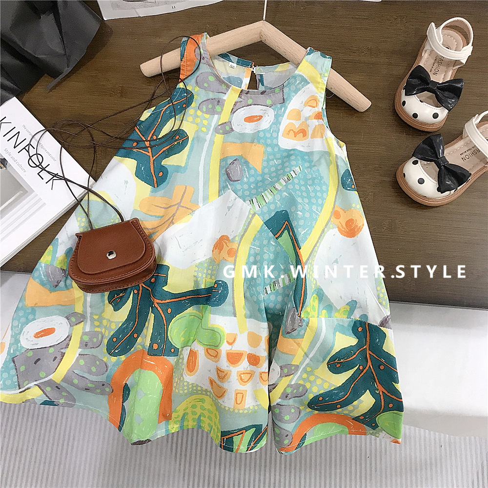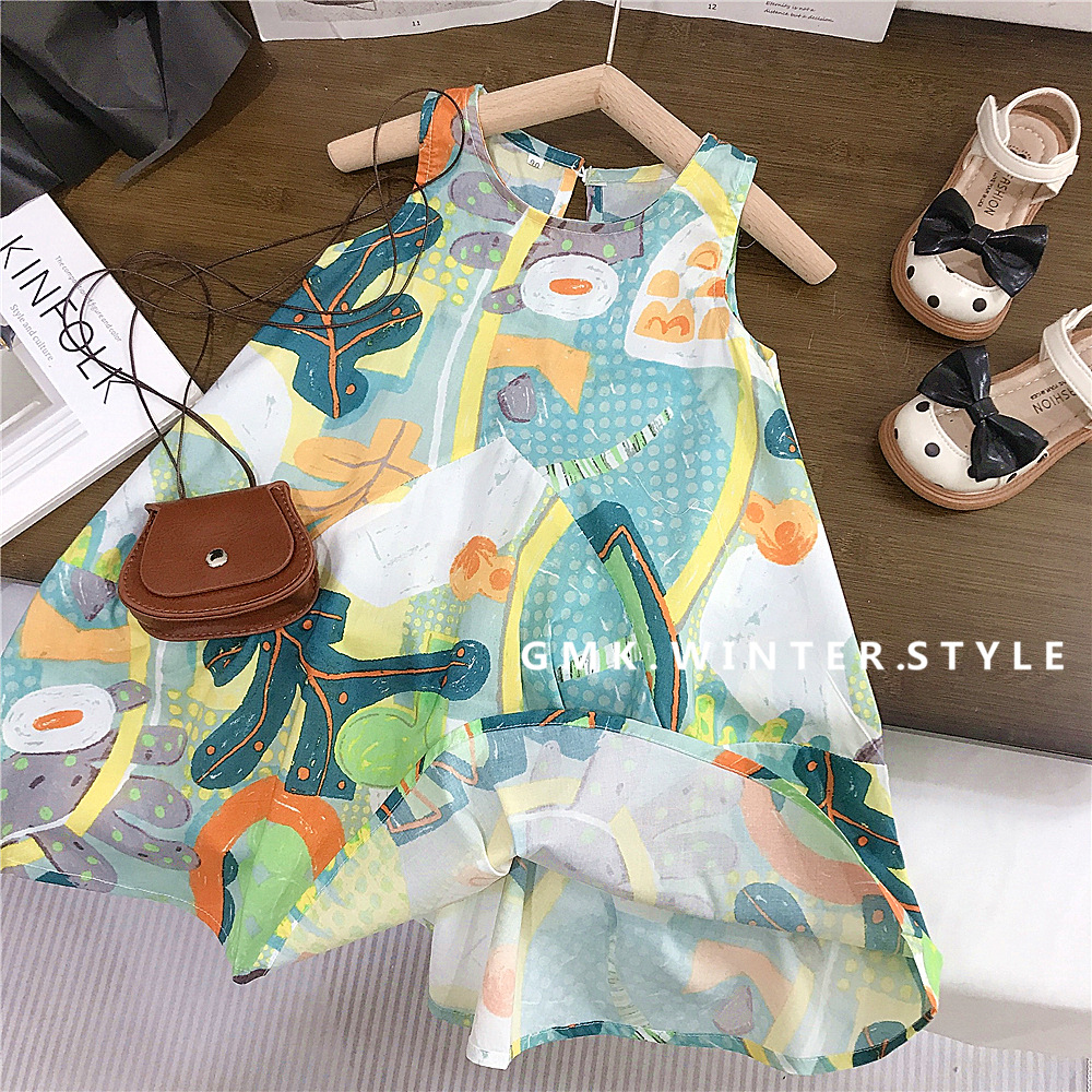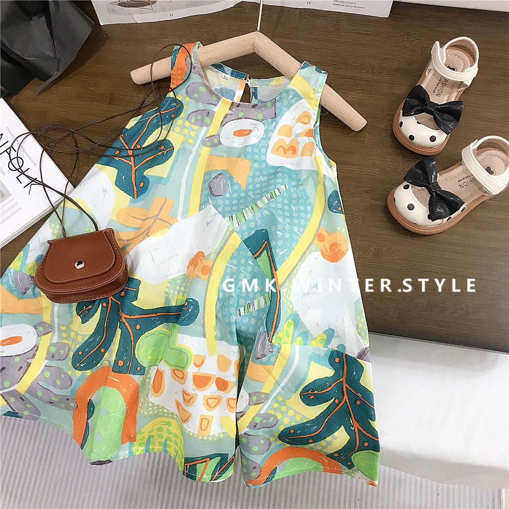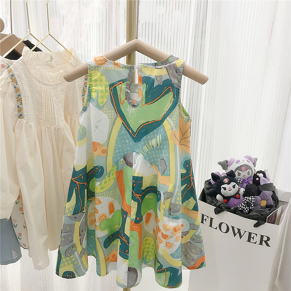 여자 원피스 여름 새로운 얇은 바느질 민소매 원피스 휴가 해변 아기 아이들 비치 스커트 대외 무역스토어 가기