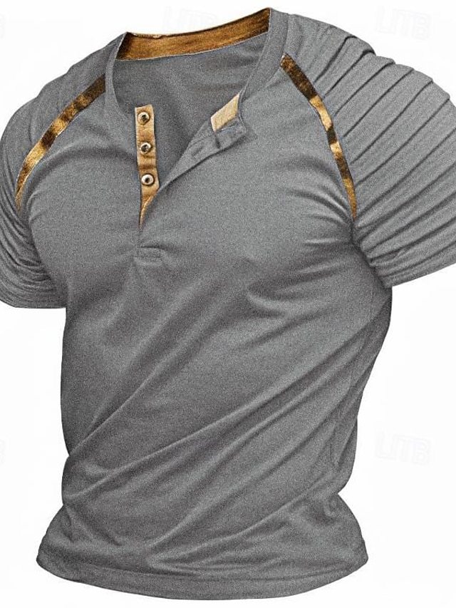 2024 새로운 국경 간 공급 여름 유럽과 미국 남성 소매 주름 반팔 티셔츠 대외 무역 남자 헨리 칼라 탑