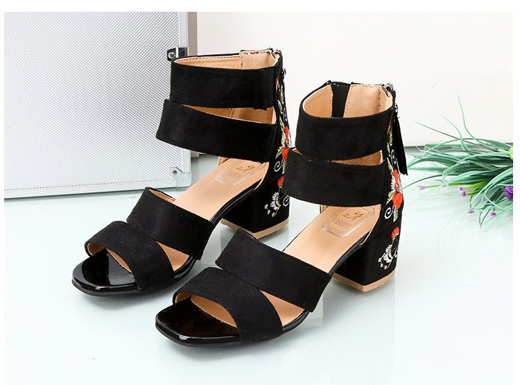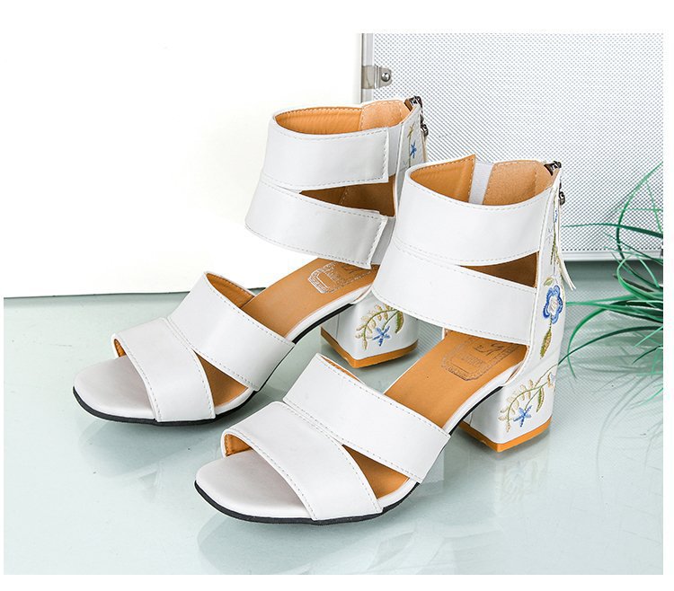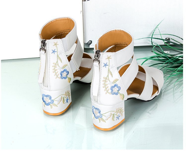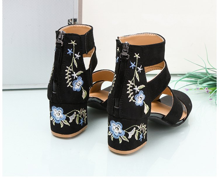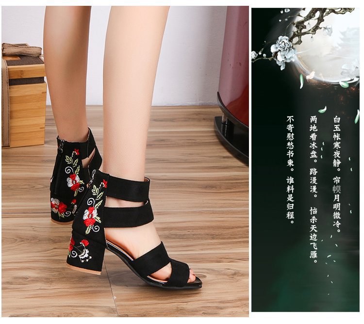 2024 여름 새로운 유럽과 미국의 복고풍 자수 샌들 여성용 섹시한 청키 힐 미드 힐 대외 무역 여성 신발 술 자수 신발
