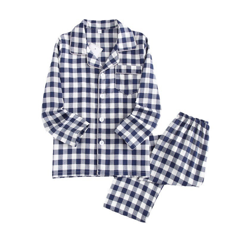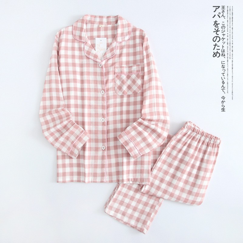 코튼 원사 커플 잠옷 한국식 남성과 여성의 심플한 봄과 여름 코튼 캐주얼 투피스 세트 일본식 격자 무늬 홈웨어스토어 가기