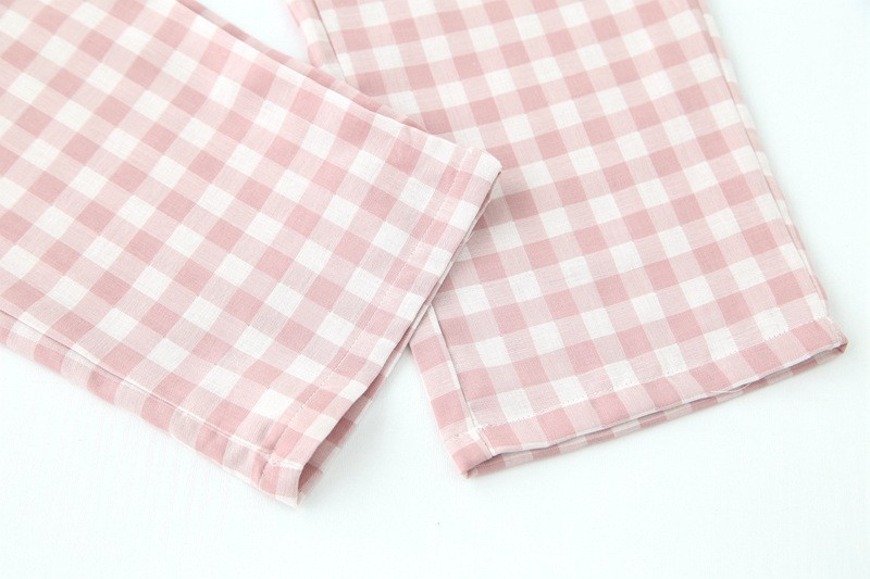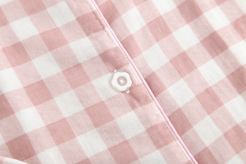 코튼 원사 커플 잠옷 한국식 남성과 여성의 심플한 봄과 여름 코튼 캐주얼 투피스 세트 일본식 격자 무늬 홈웨어