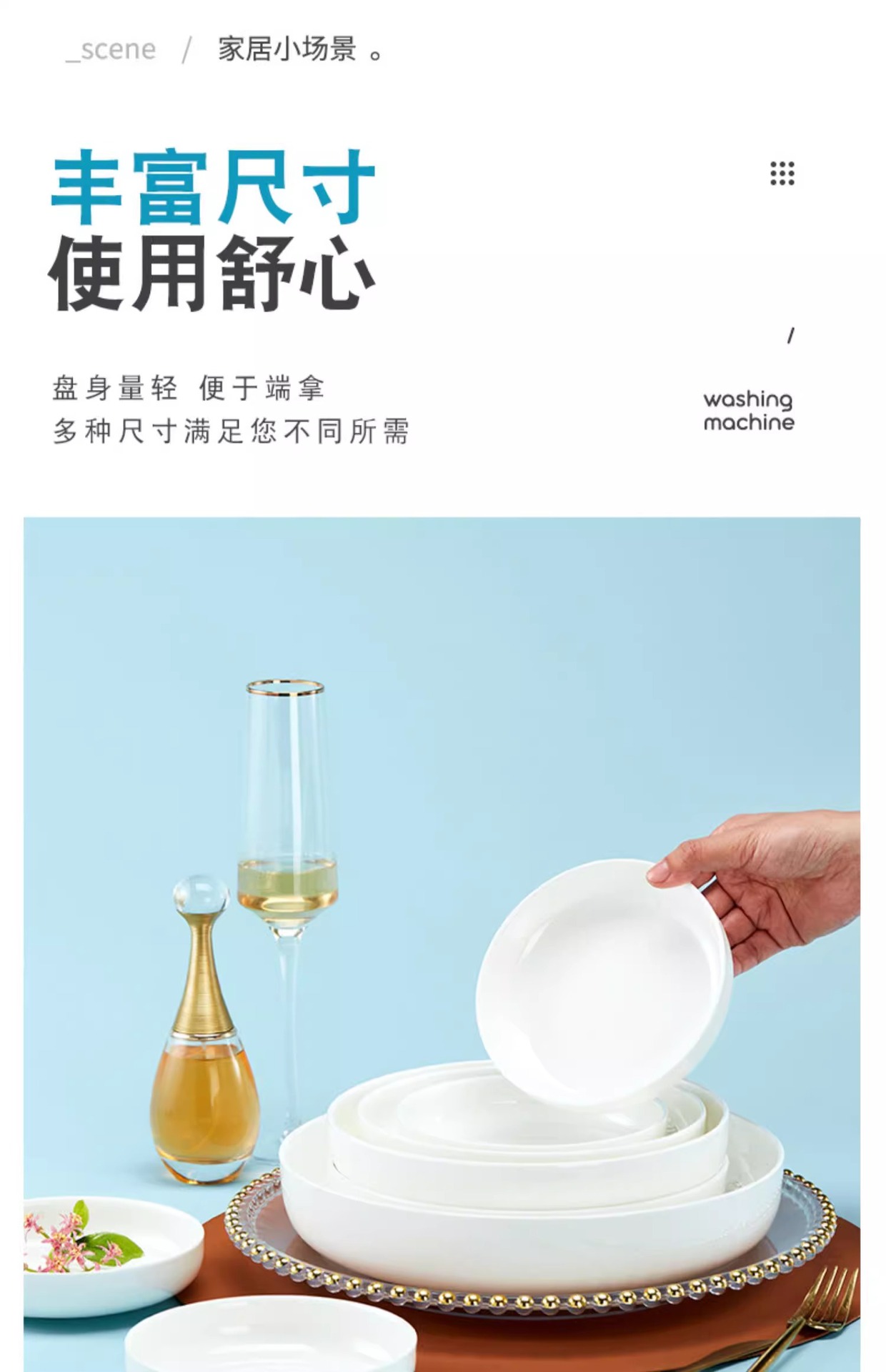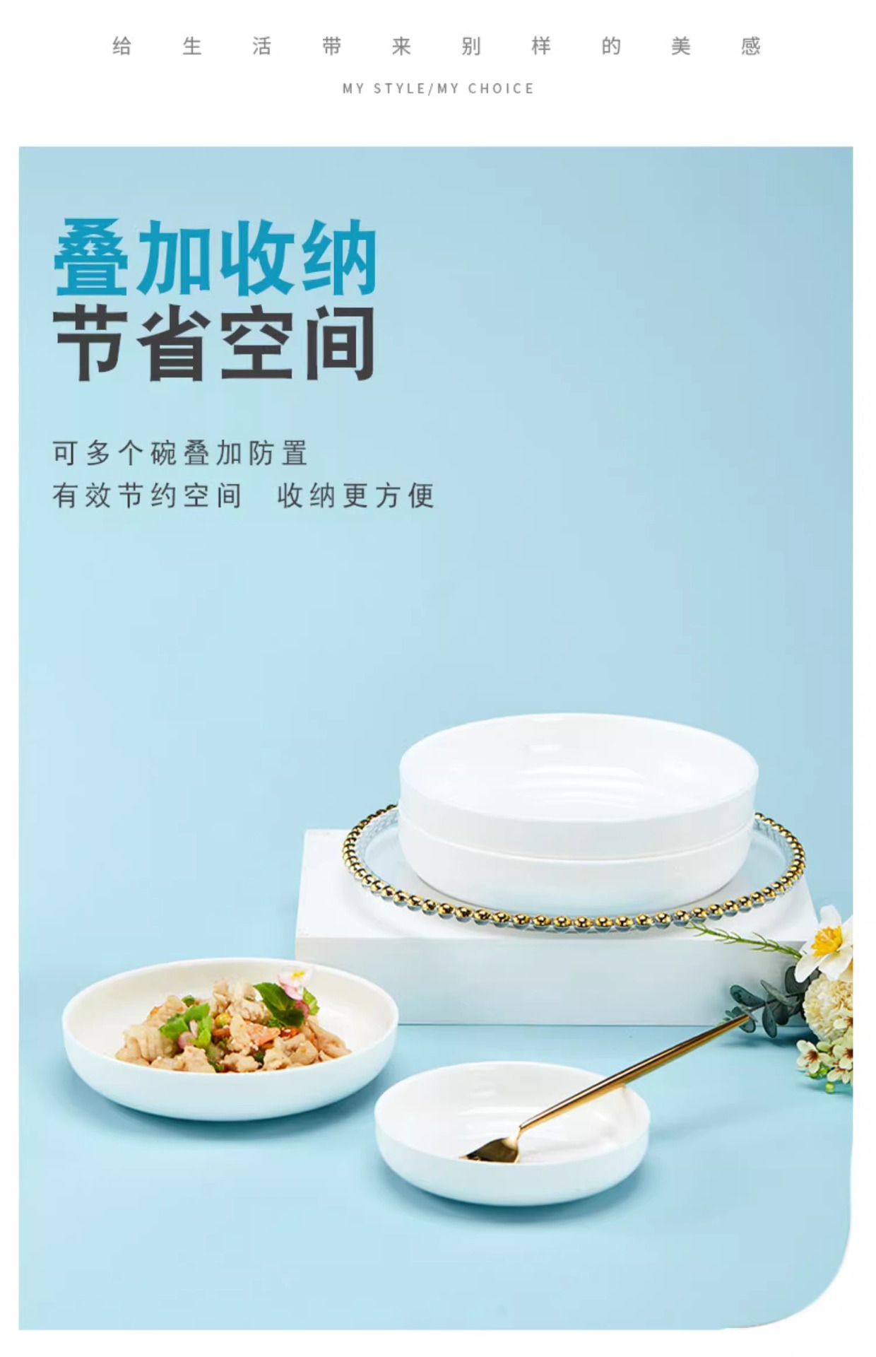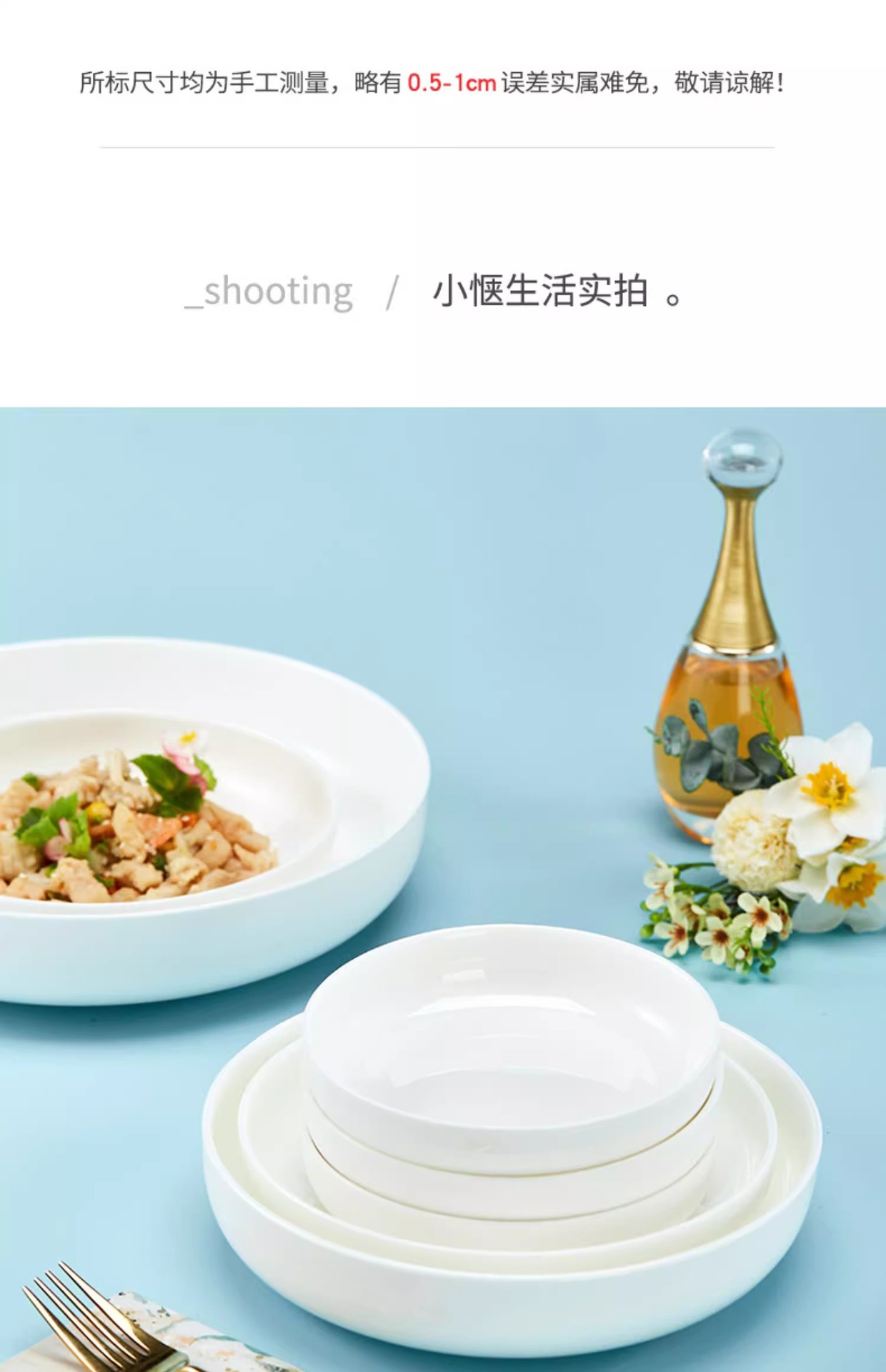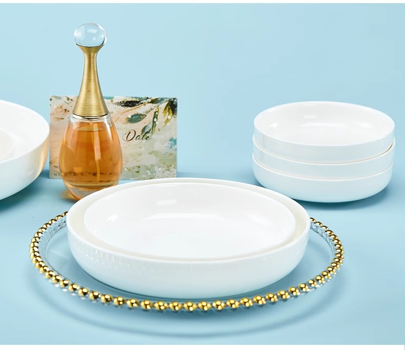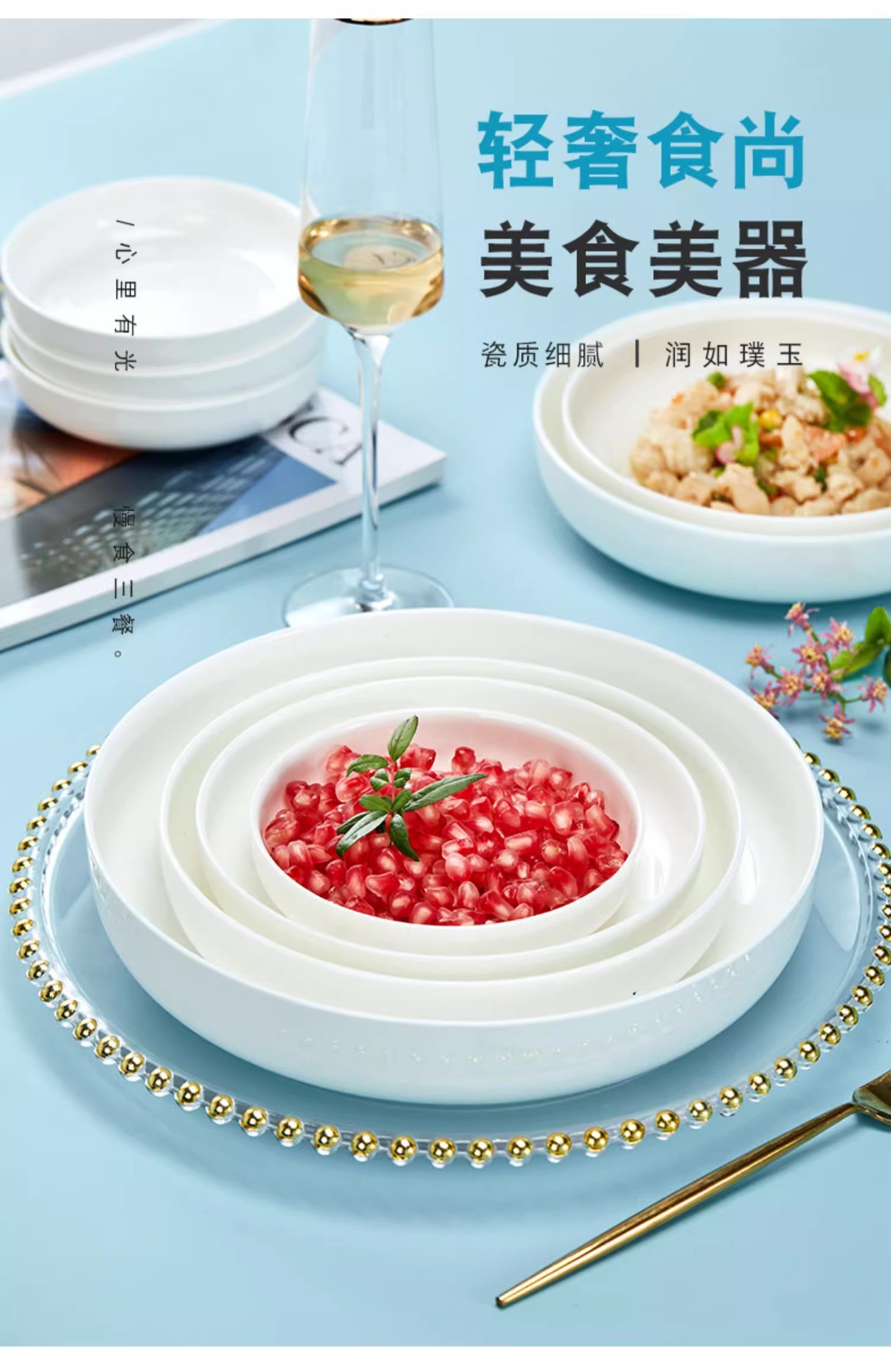 Jingdezhen 순수한 흰색 접시 underglaze 컬러 접시 가정용 중국 식기 집들이 창조적 인 둥지 접시 수프 접시 둥근 깊은 접시