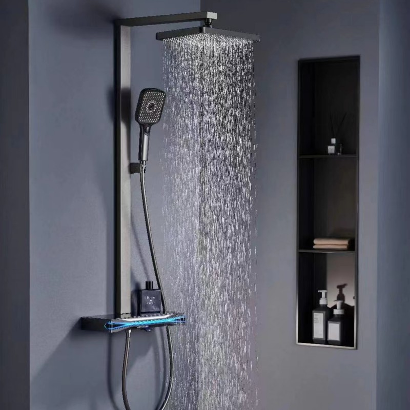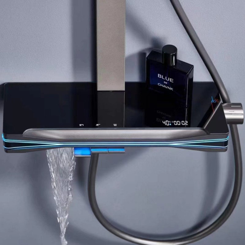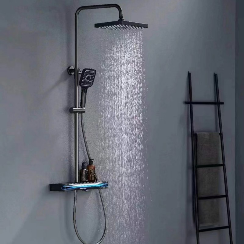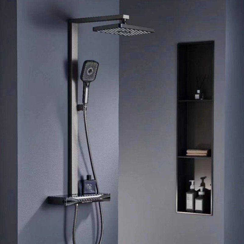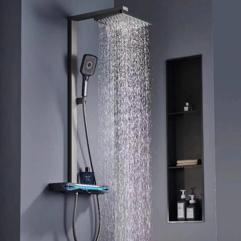 샤워 헤드 세트 건 회색 구리 샤워 헤드 가정용 일정한 온도 가압 노즐 욕실 목욕 비스토어 가기