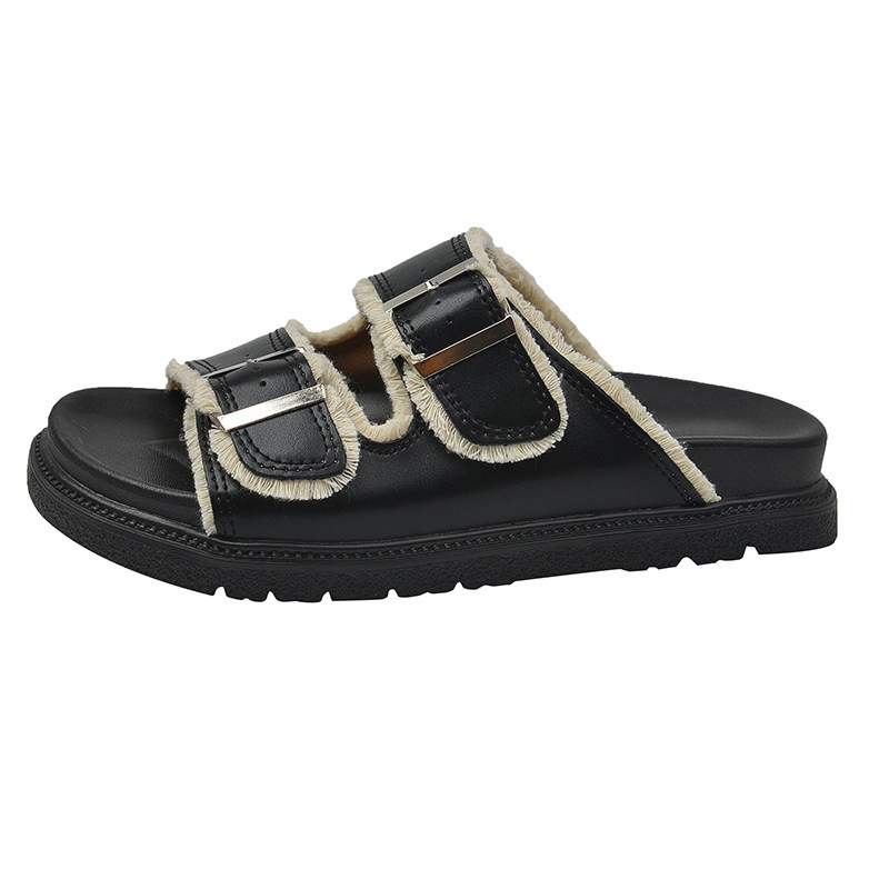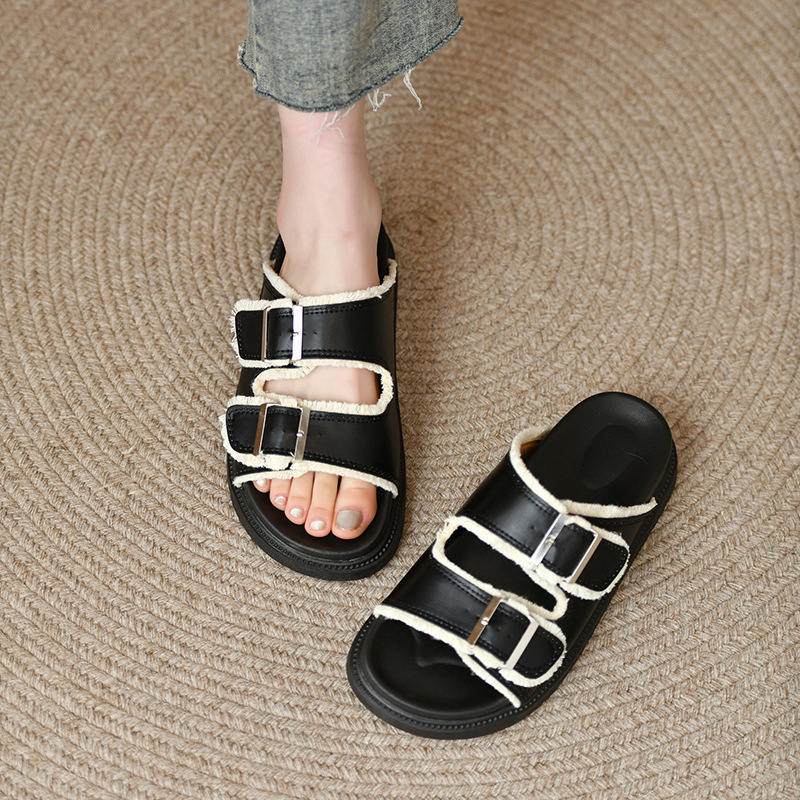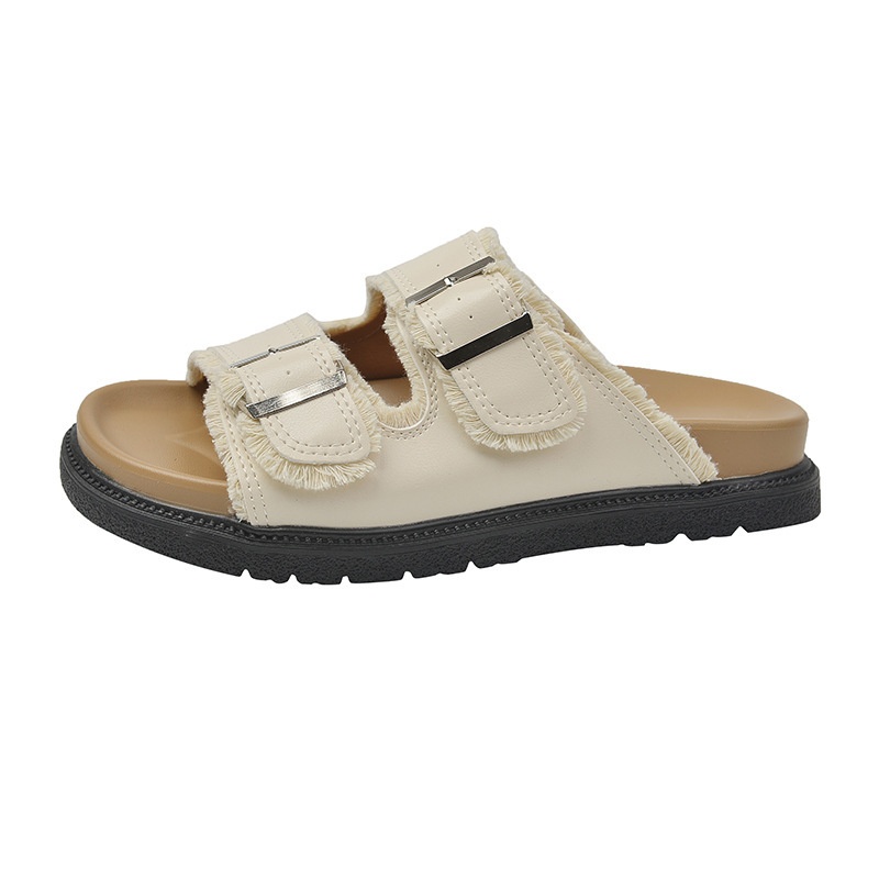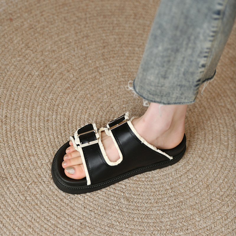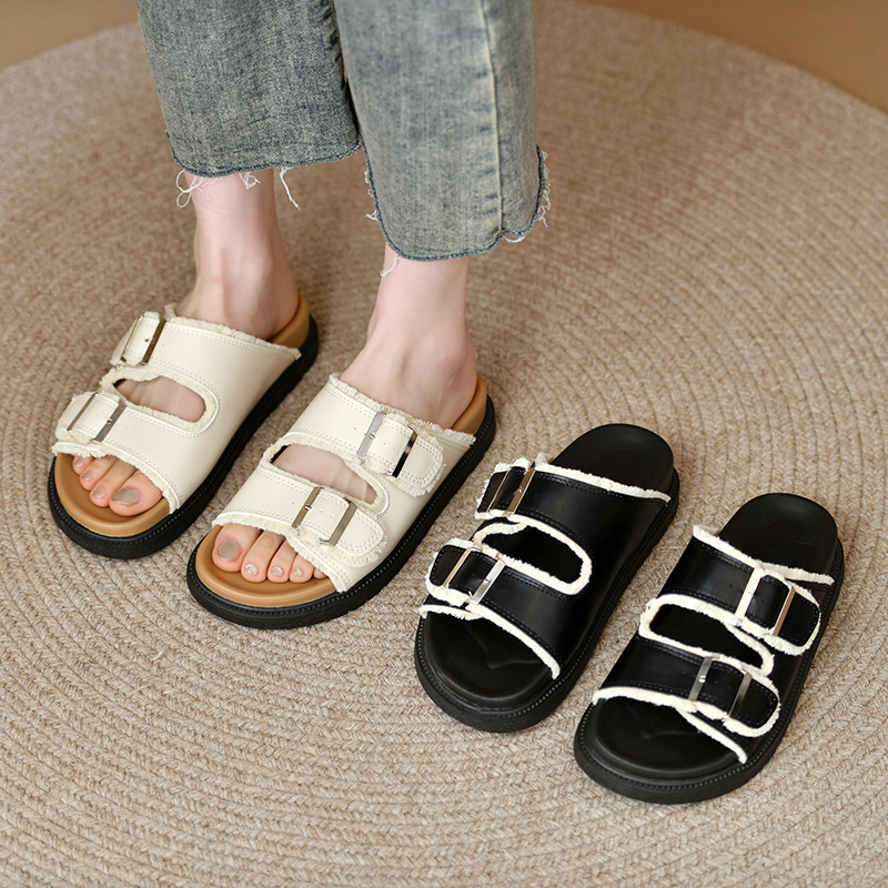 Zhongjia 부드러운 가죽 Boken 신발 여성 여름 부드러운 바닥 게으른 Boken 슬리퍼 두꺼운 바닥 스트랩 야외 해변 샌들 패션