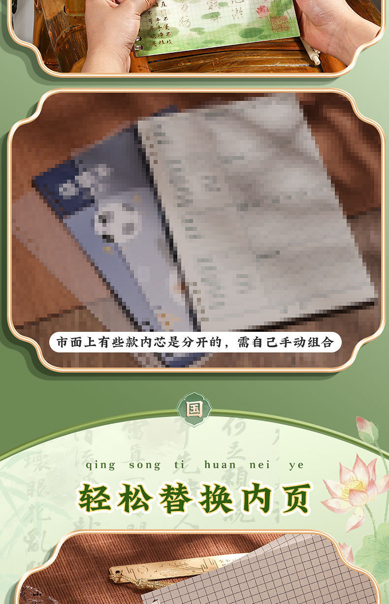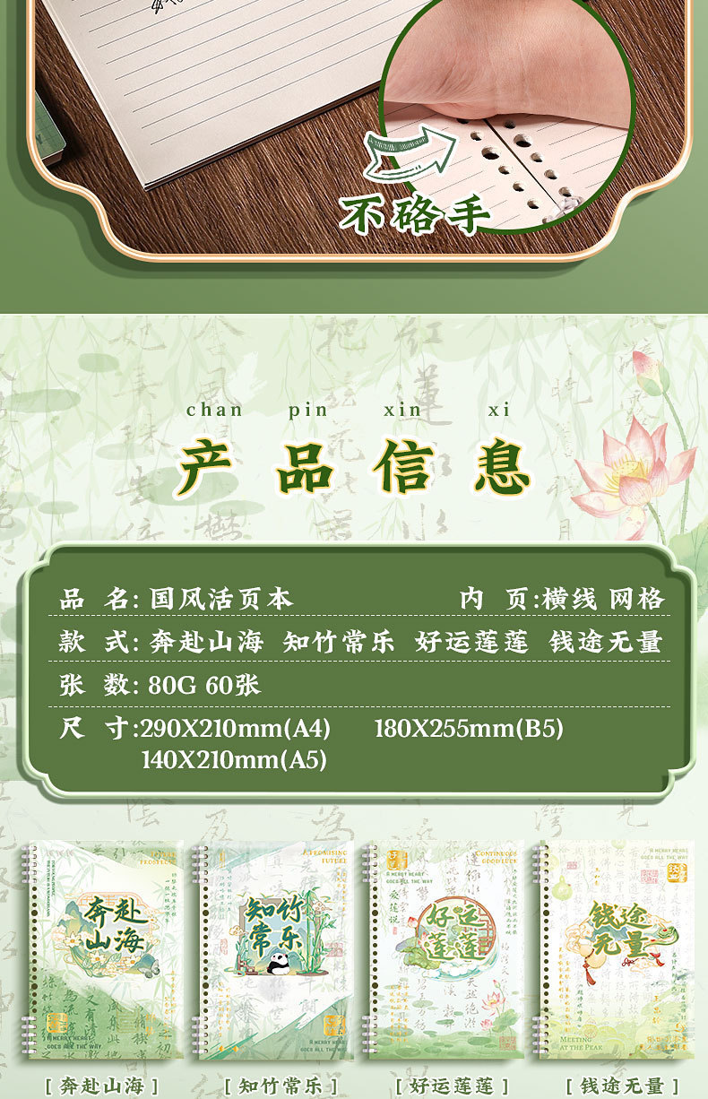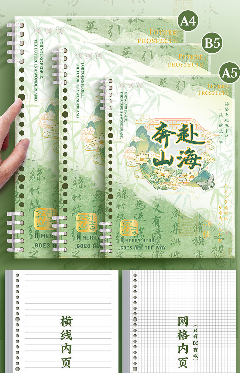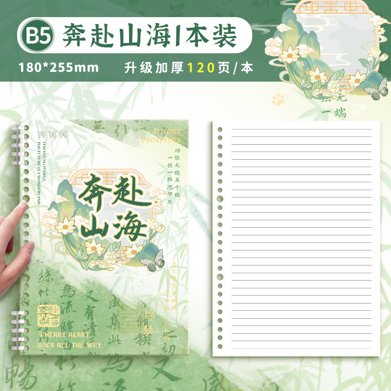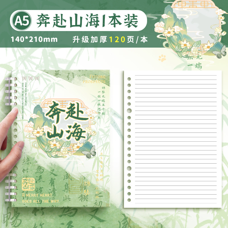 중국 스타일의 느슨한 잎 학생 노트북 a5 수평 라인 비즈니스 사무실 메모장 b5 그리드 a4 노트북스토어 가기