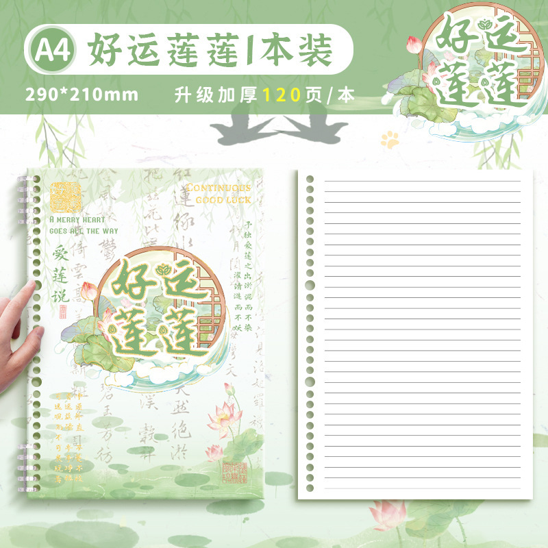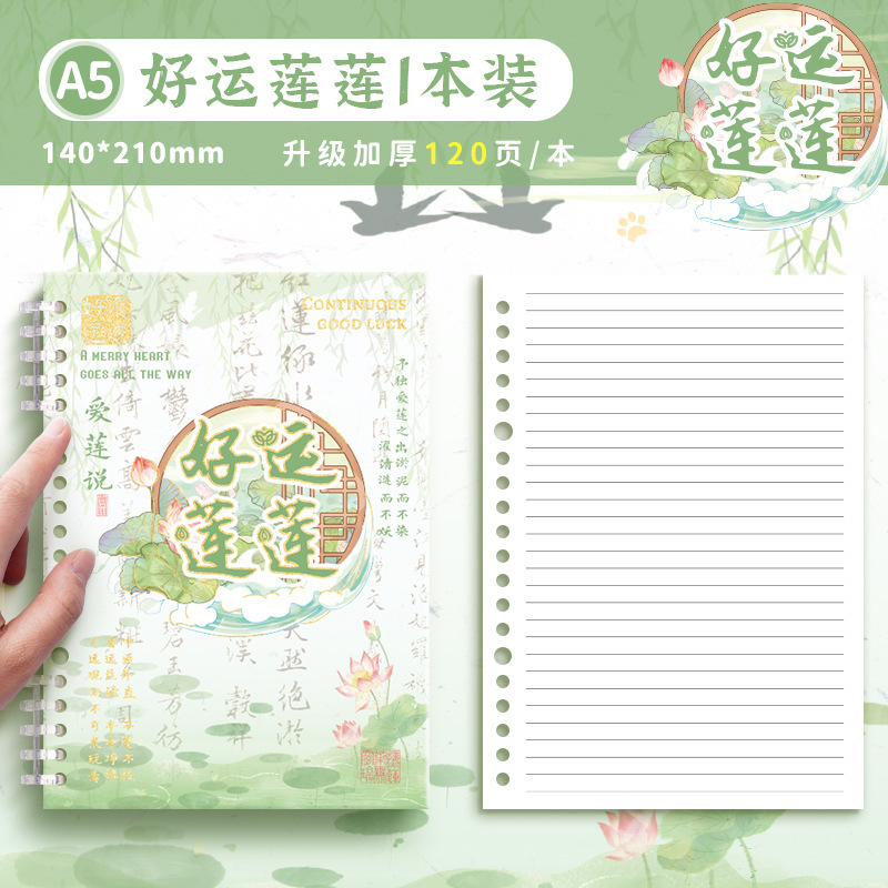 • A5 느슨한 잎 책-수평 라인 행운의 연꽃