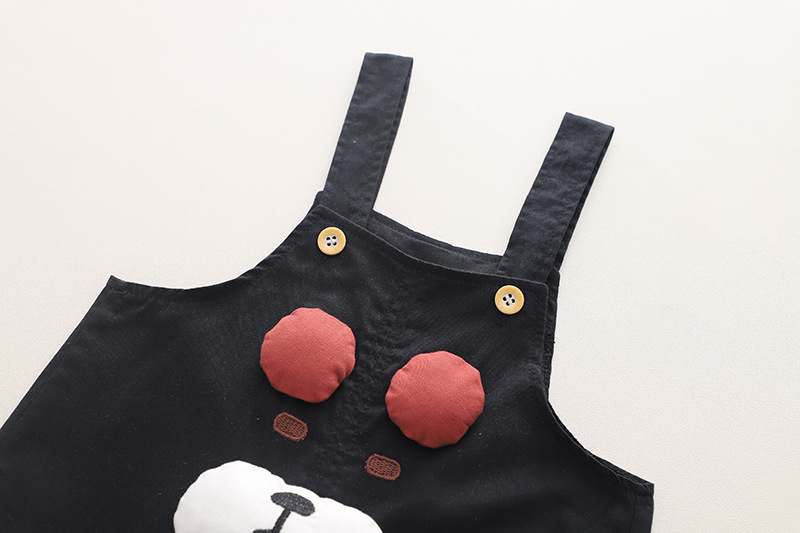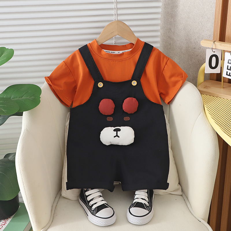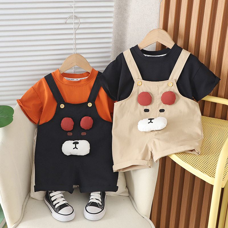 둥근 목면 단색 반팔 셔츠 귀여운 강아지 패턴 서스펜더 바지 자른 바지 2 피스 세트 공장 도매스토어 가기