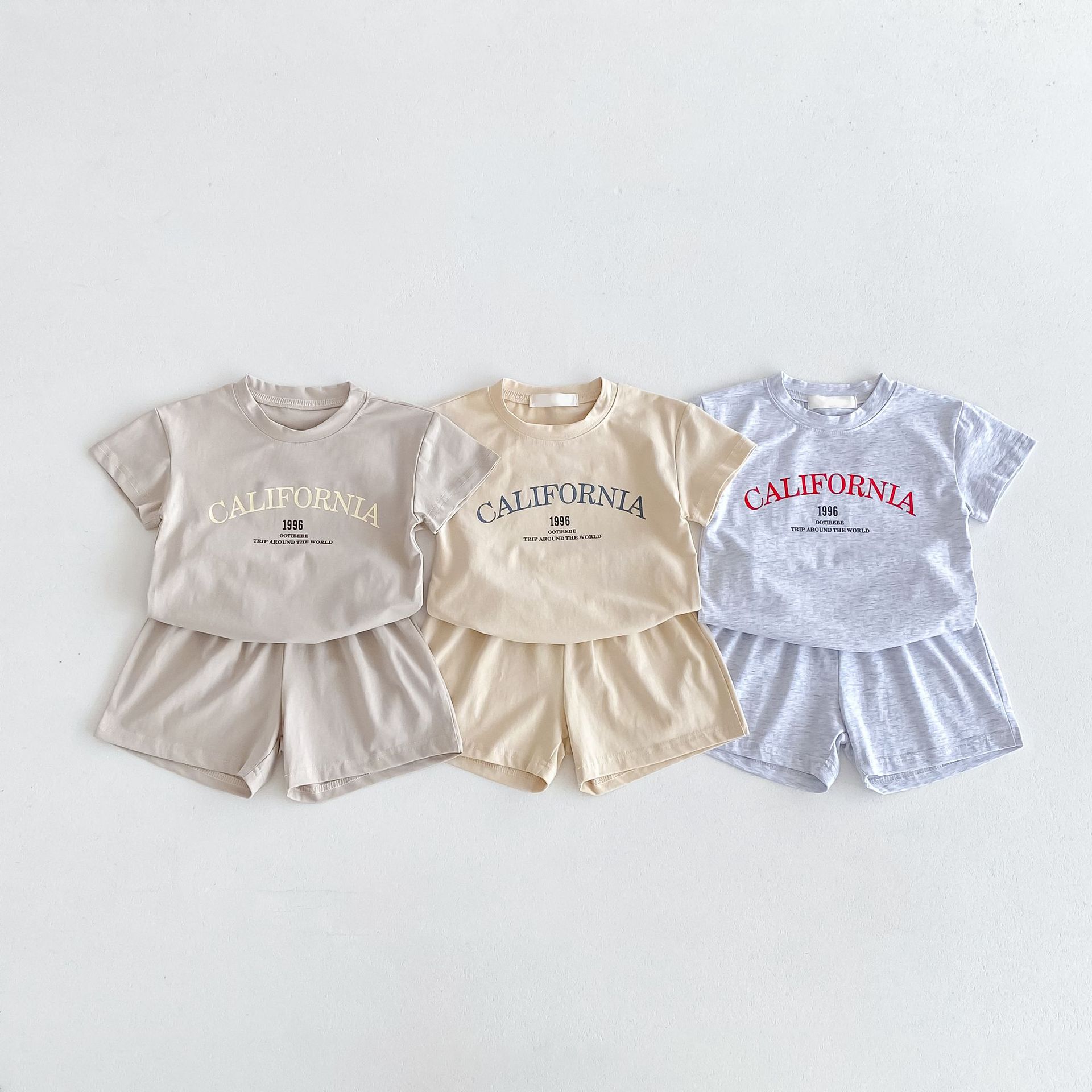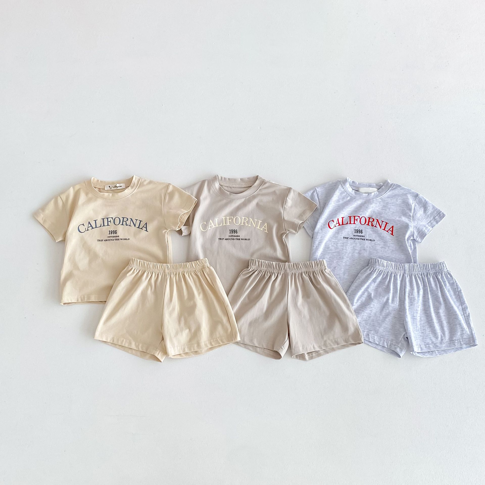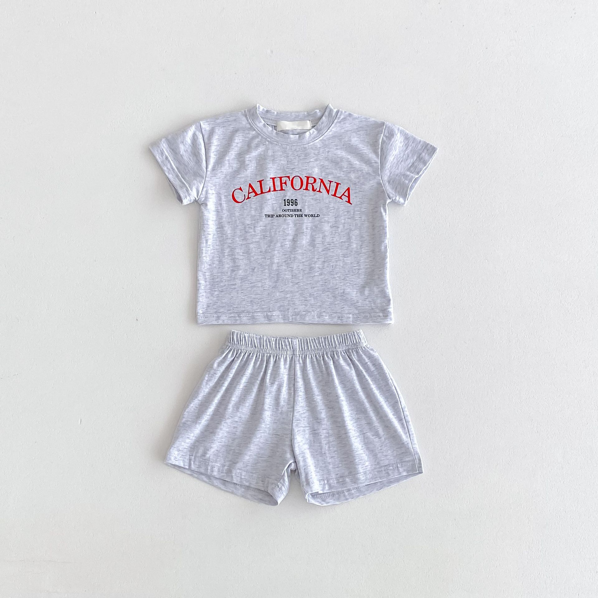 2024 여름 새로운 한국식 아동복 1-8 세 반팔 티셔츠 반바지 소년 소녀를위한 얇은 투피스 세트스토어 가기