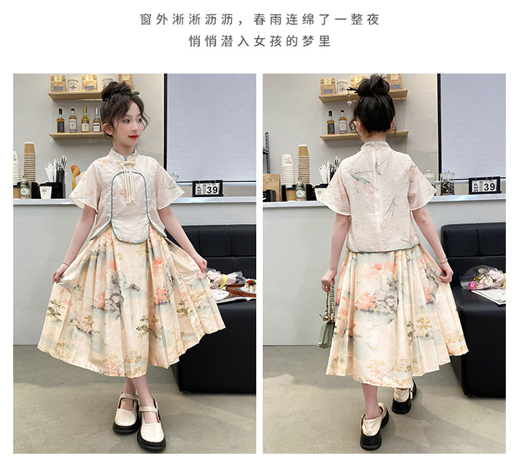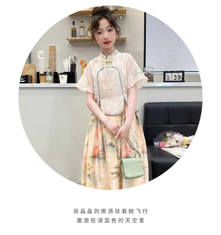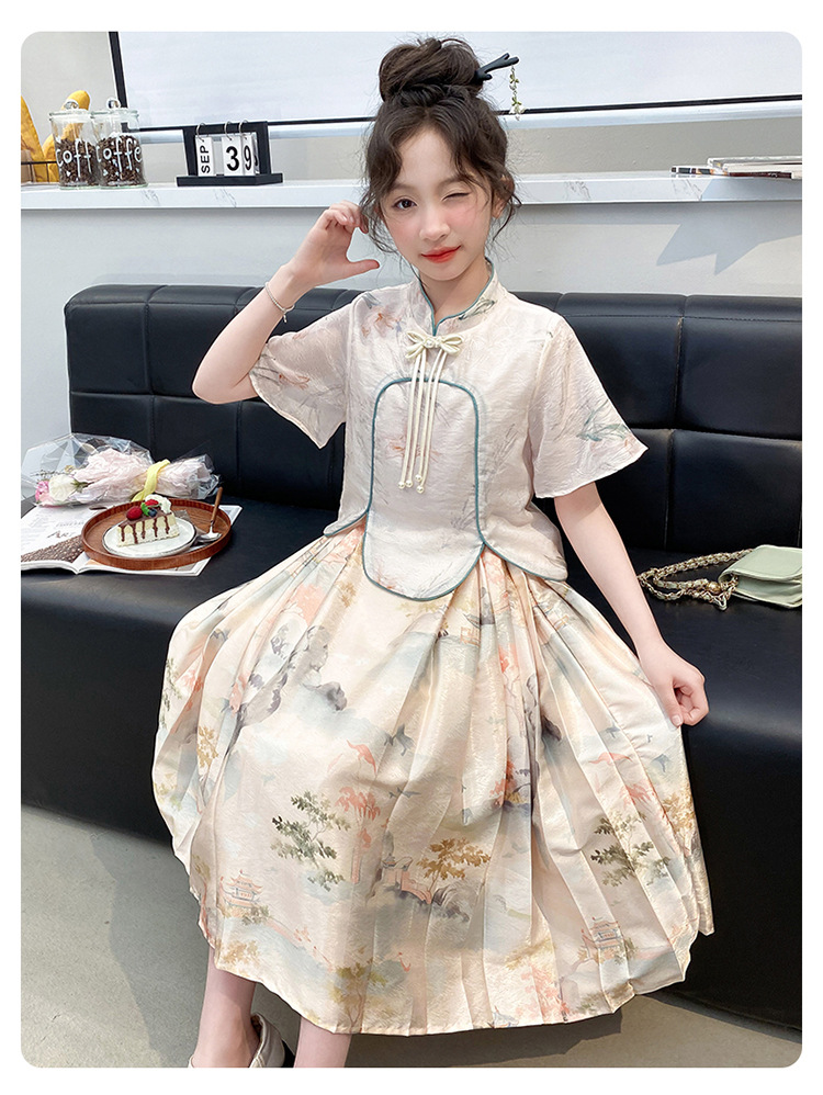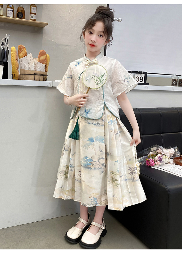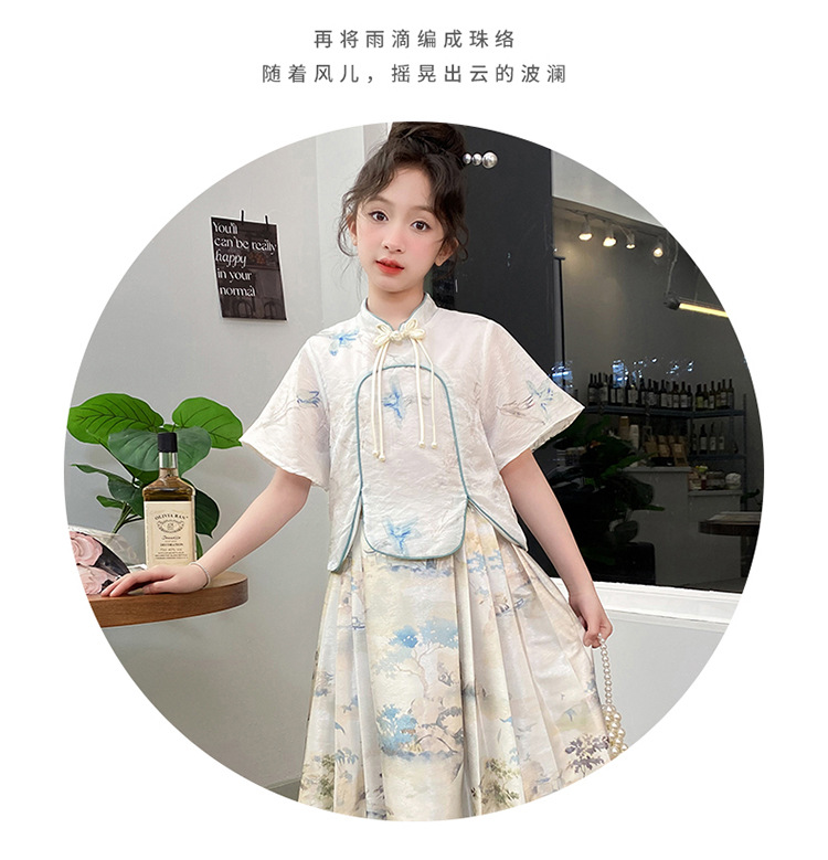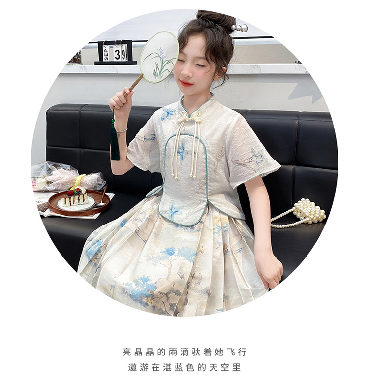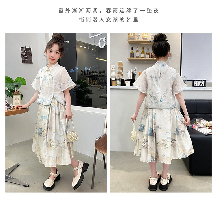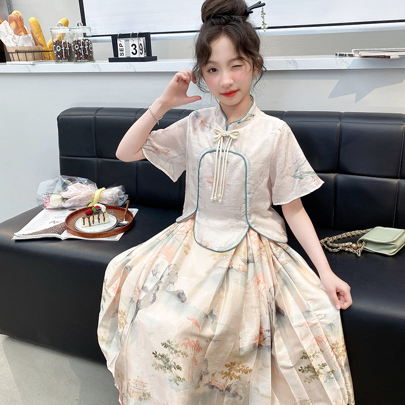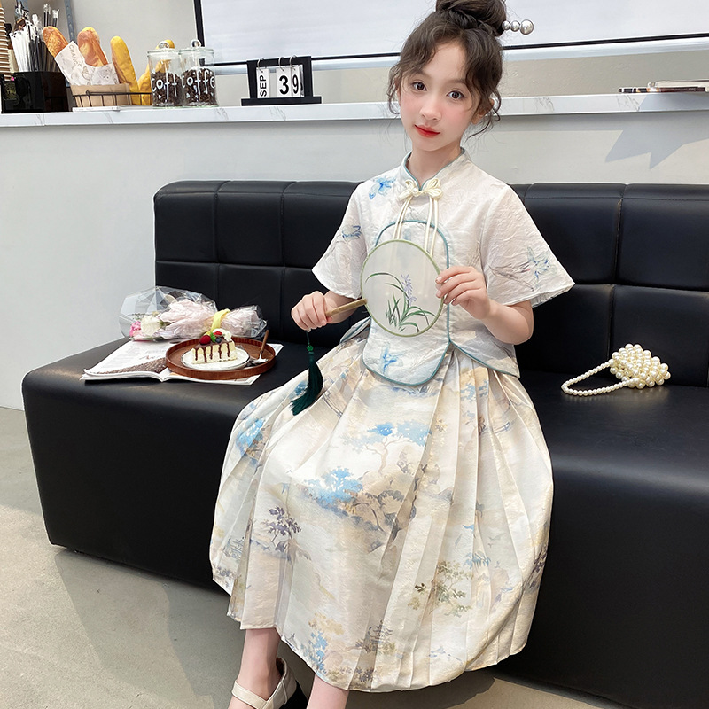 소녀 여름 조끼 치마 세트 2024 새로운 어린이 여름 중국 스타일 한후 소녀 여름 고대 원피스