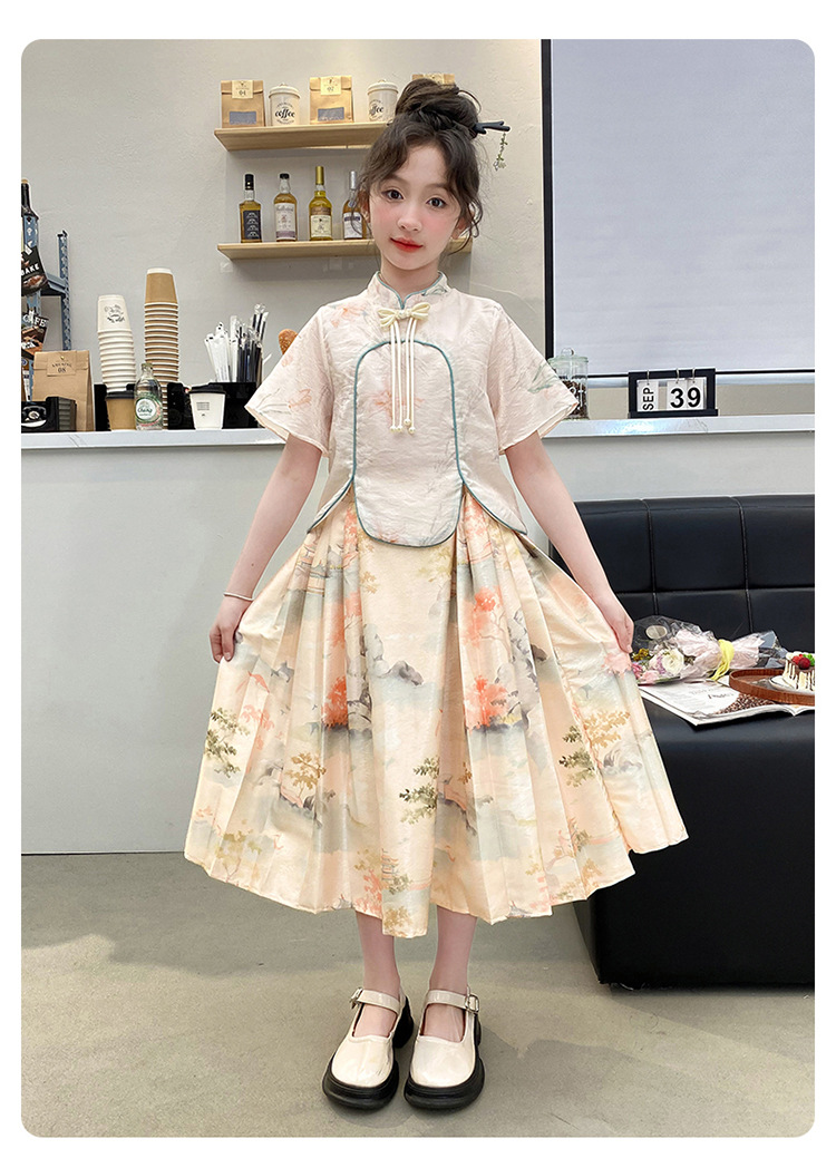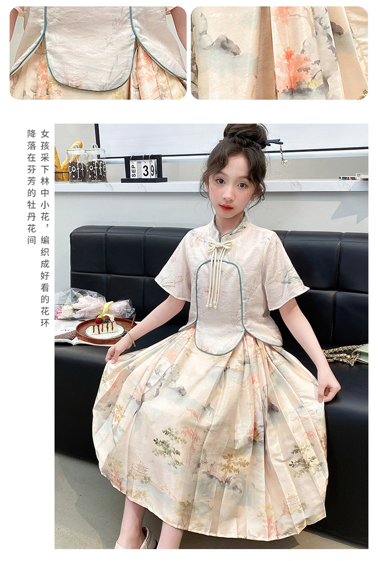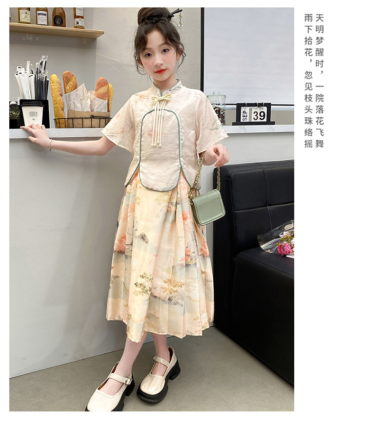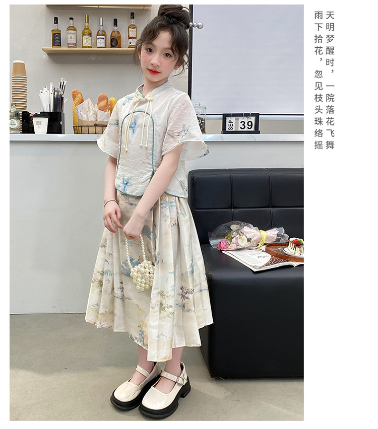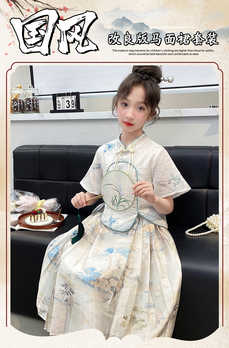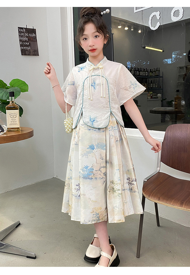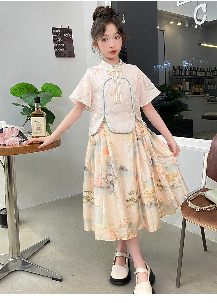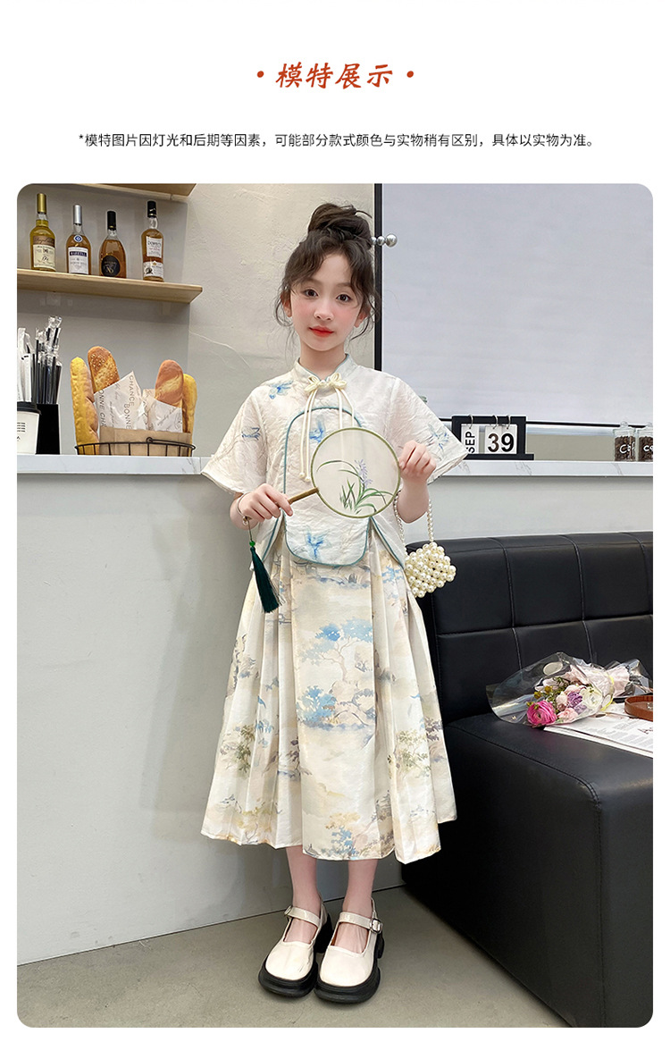 소녀 여름 조끼 치마 세트 2024 새로운 어린이 여름 중국 스타일 한후 소녀 여름 고대 원피스