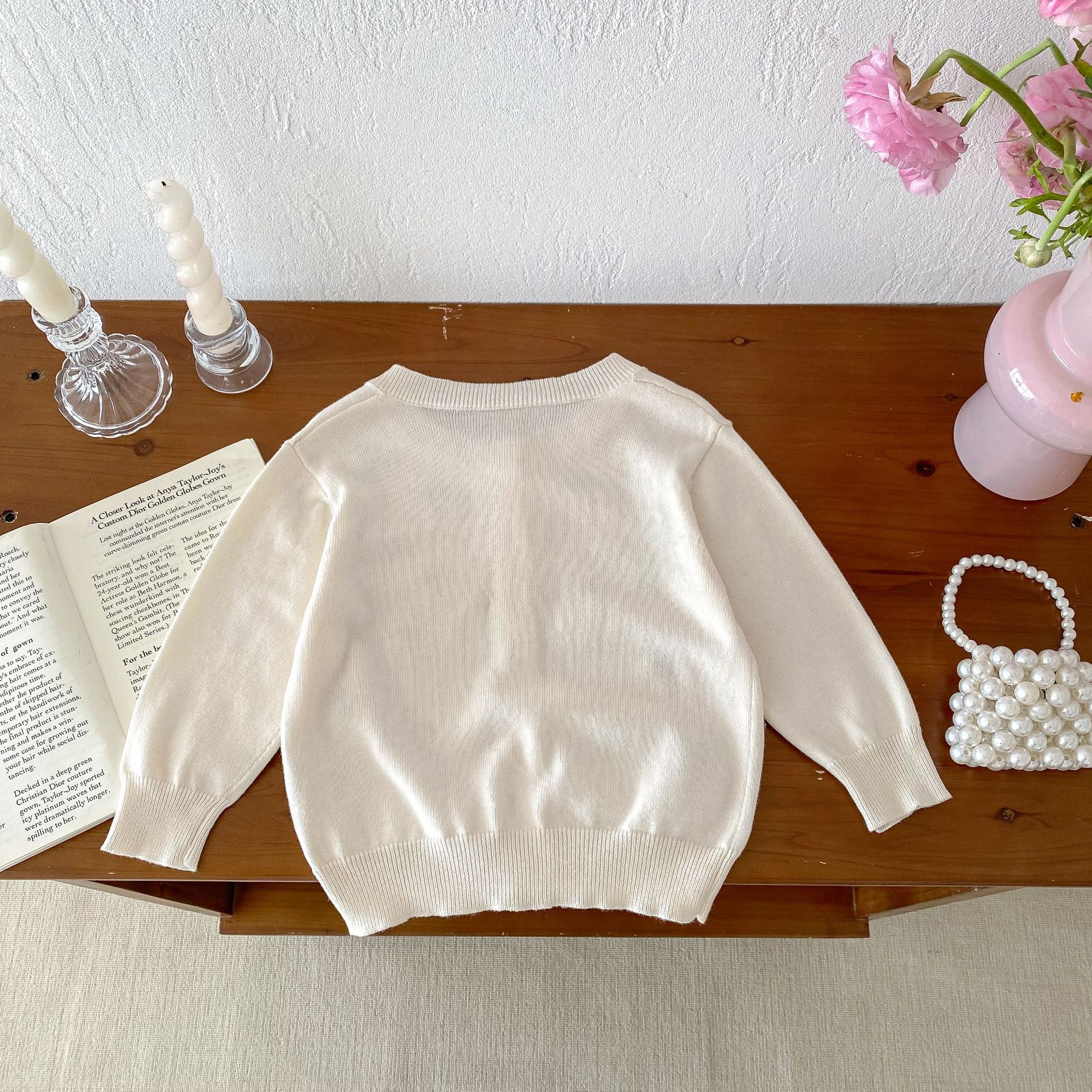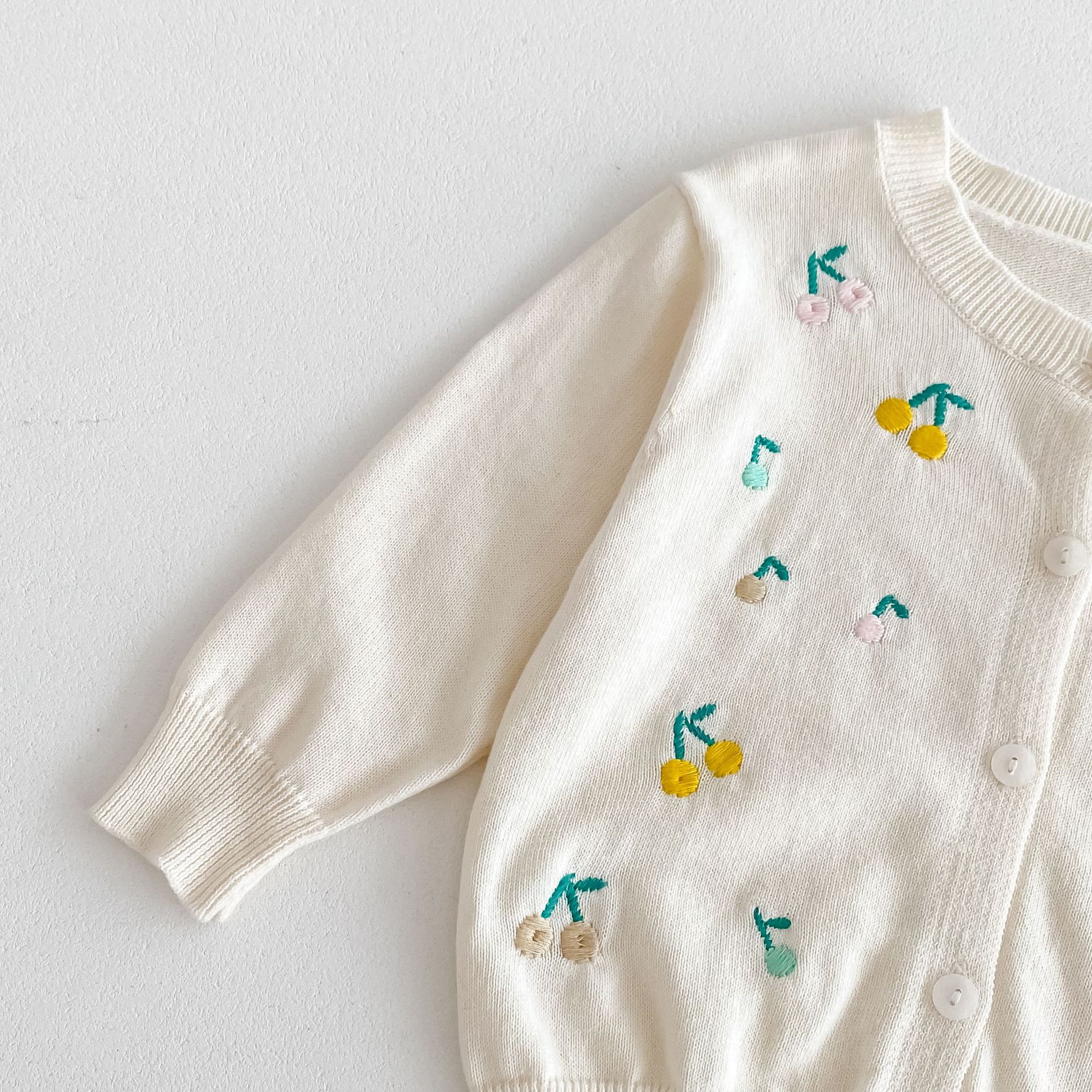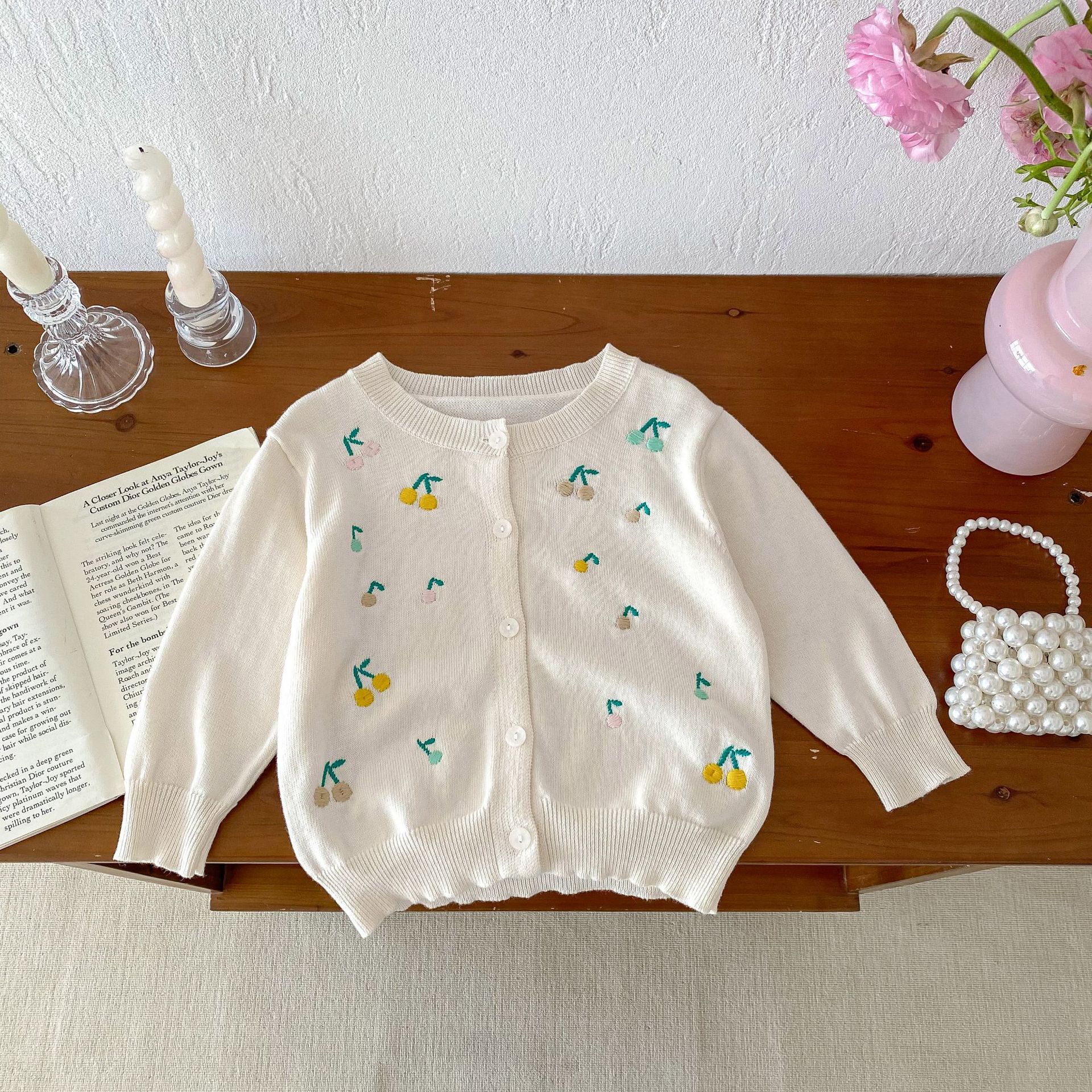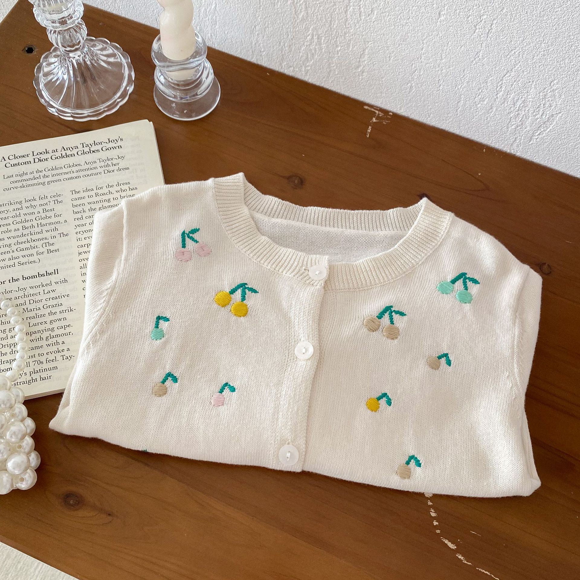 여름 2024 새로운 1-8 세 소녀 니트 카디건 한국식 수제 자수 체리 얇은 스웨터 코트