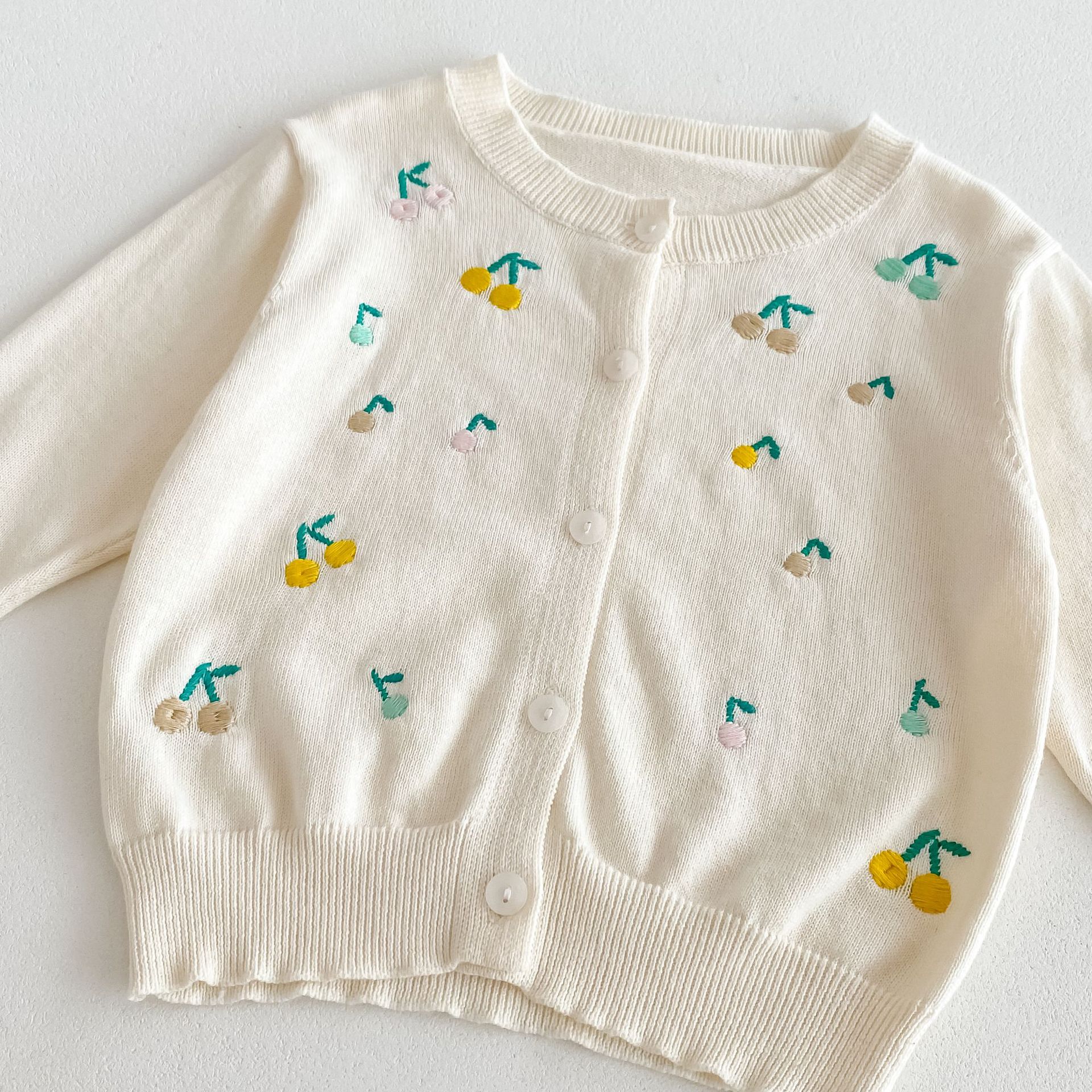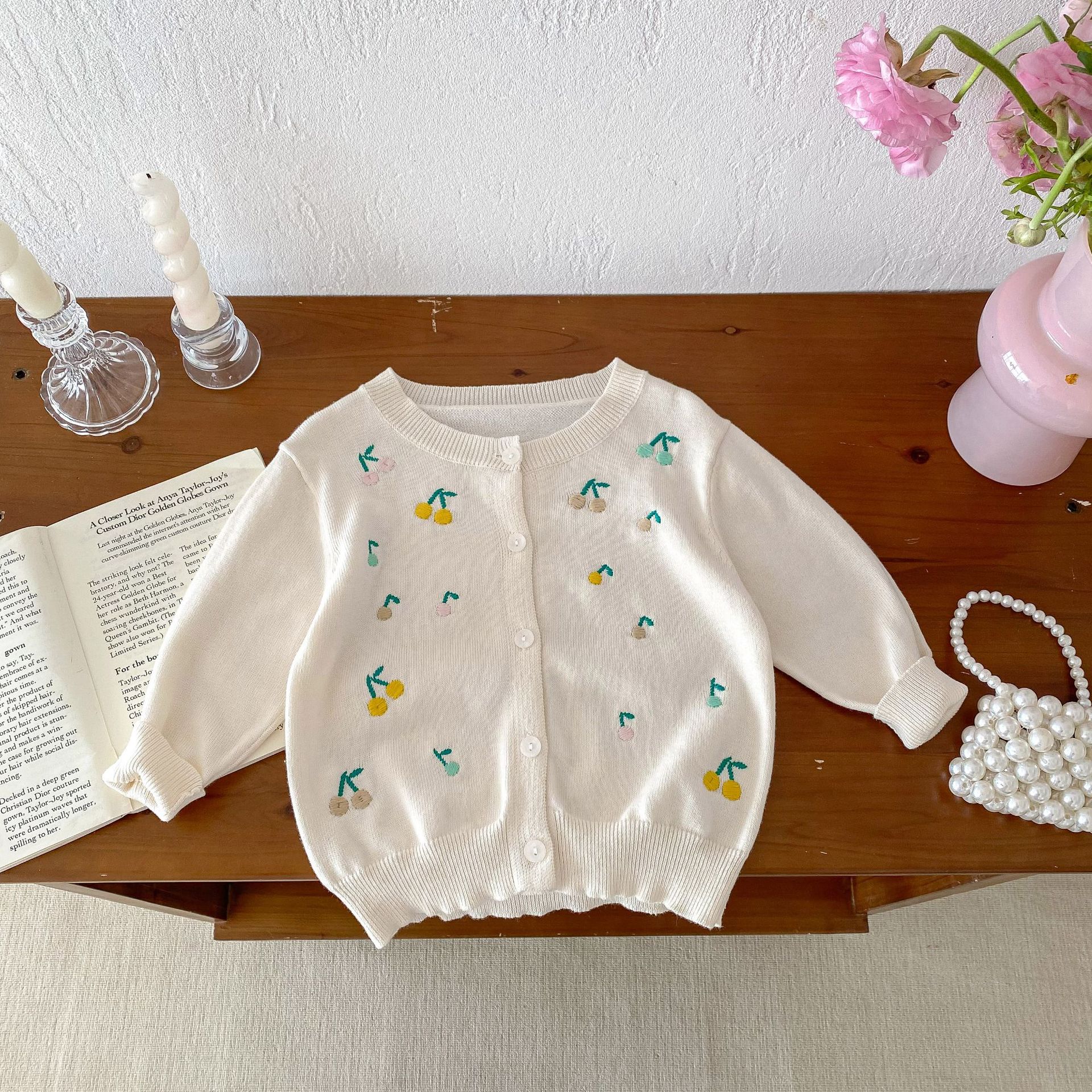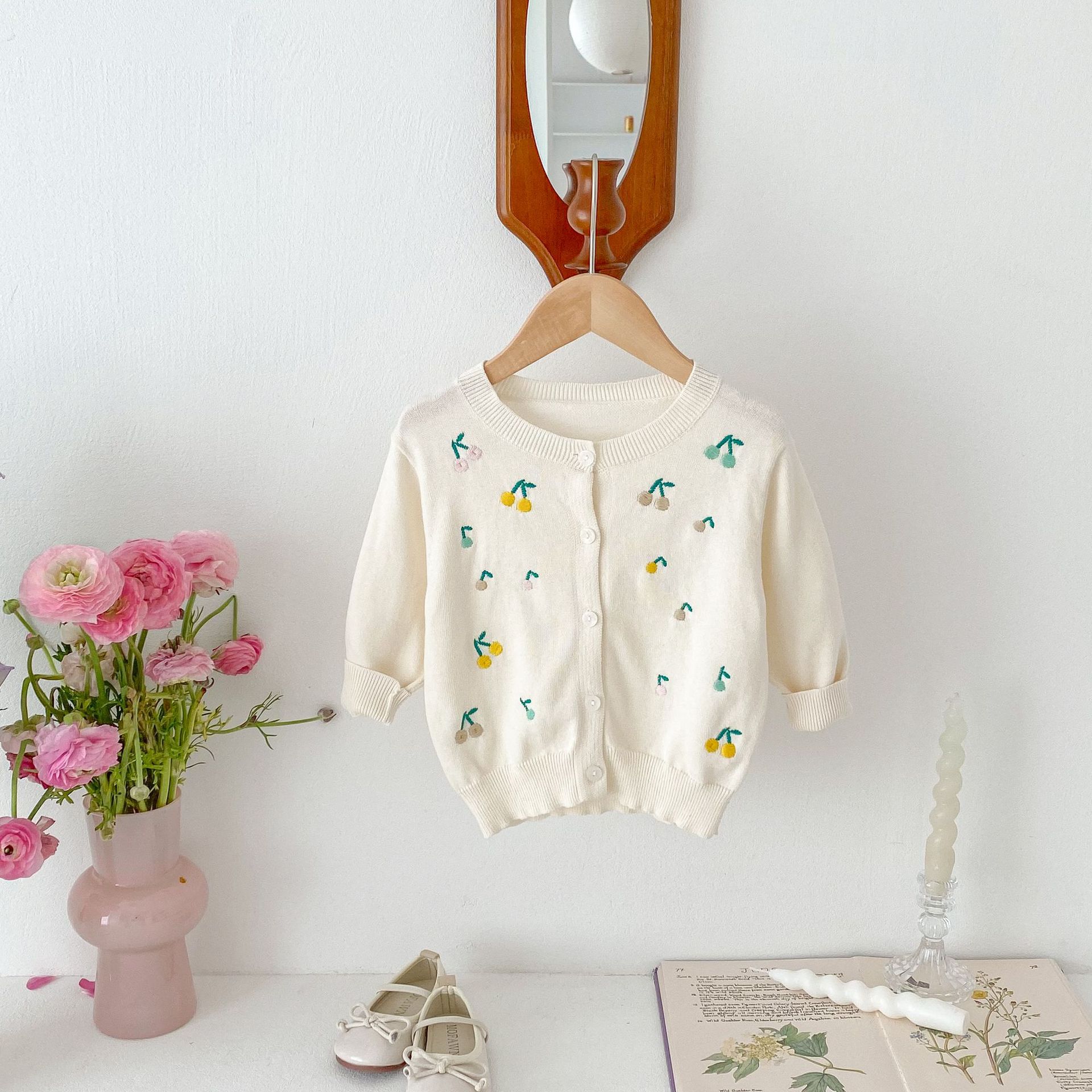 여름 2024 새로운 1-8 세 소녀 니트 카디건 한국식 수제 자수 체리 얇은 스웨터 코트스토어 가기