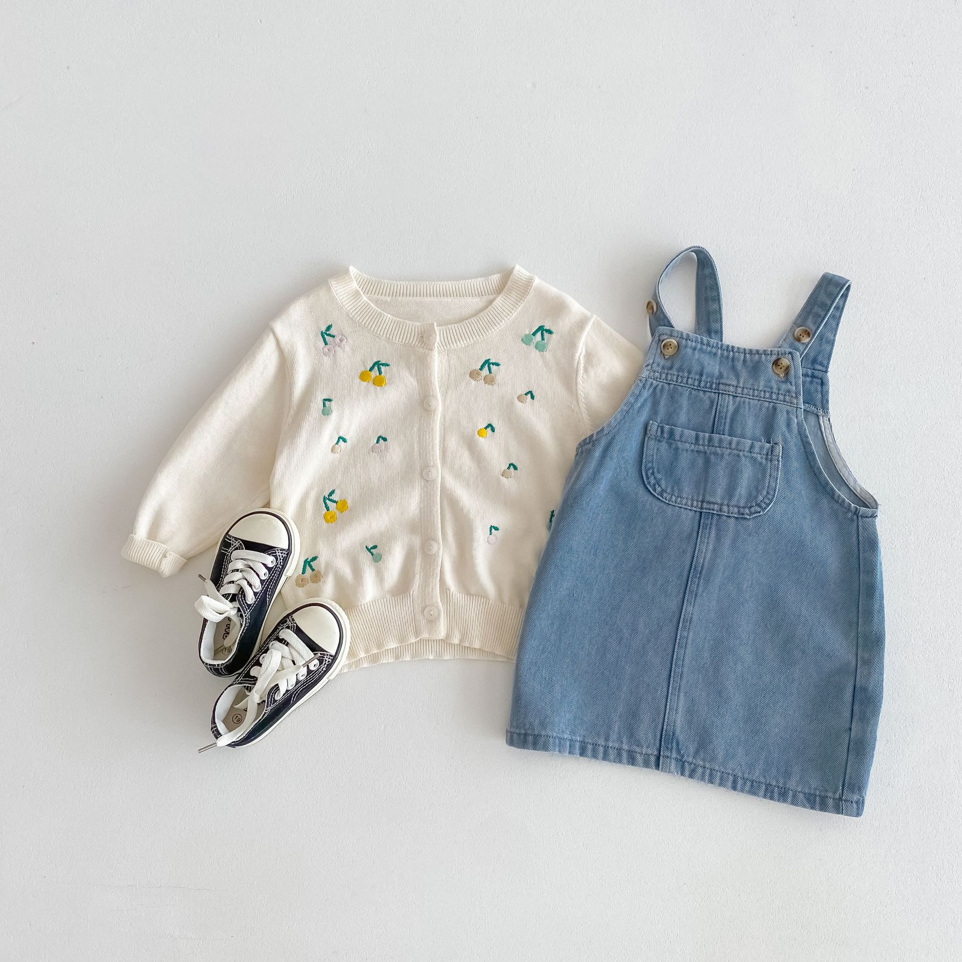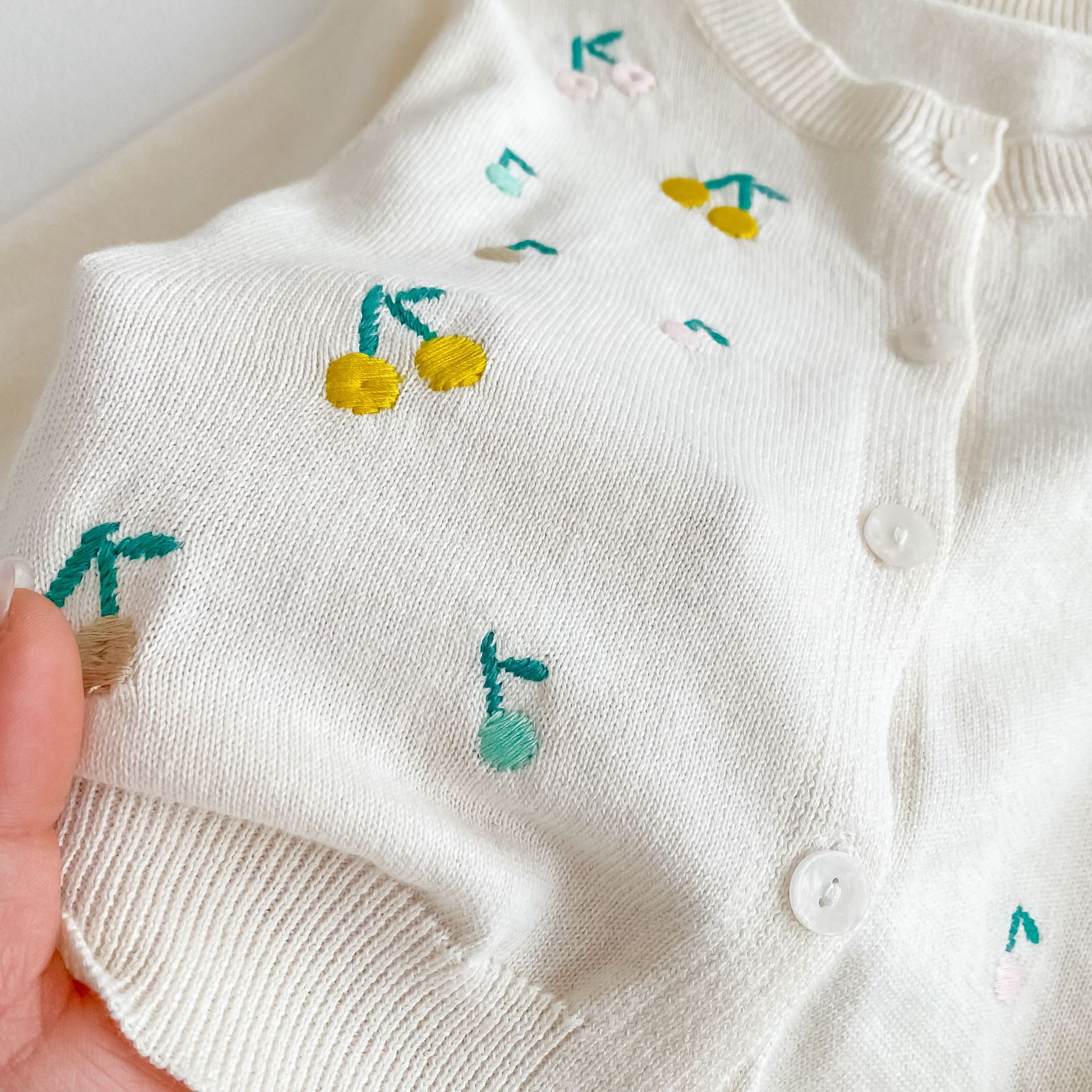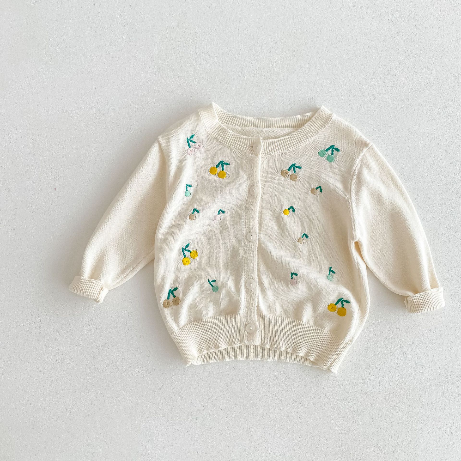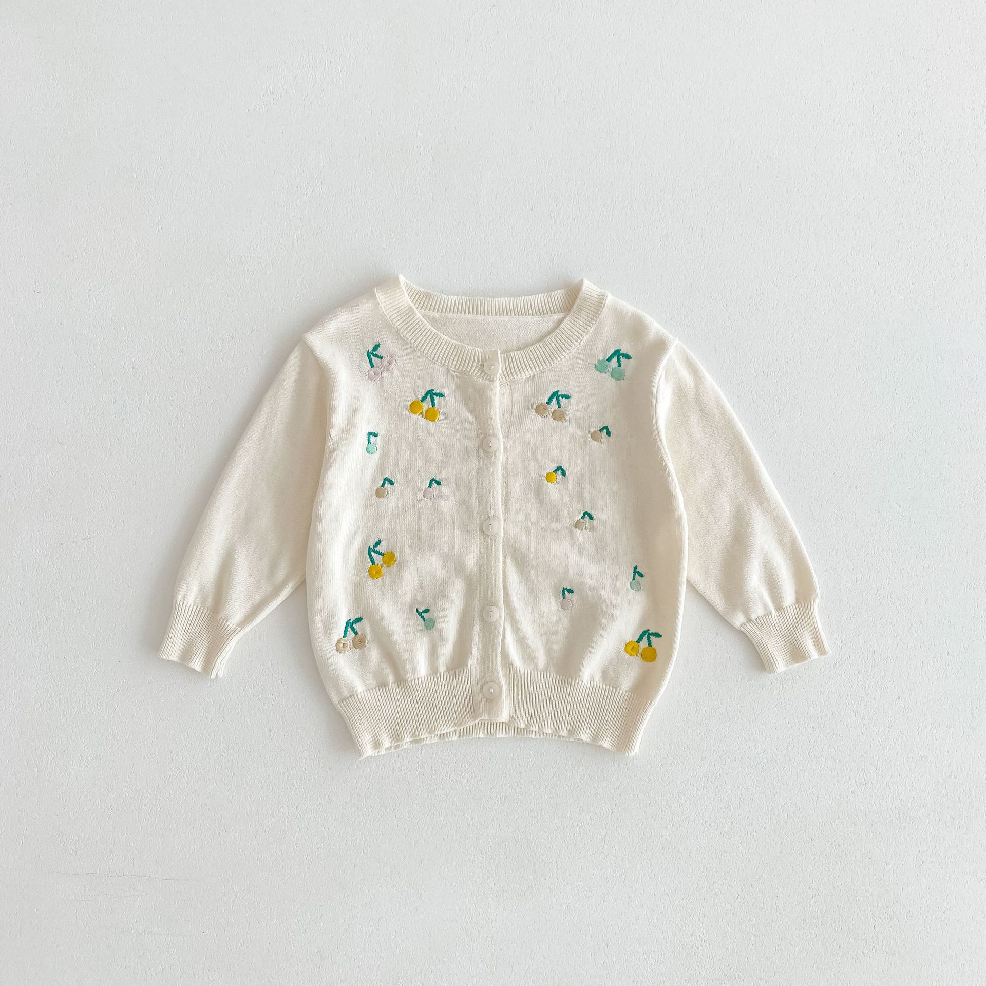 여름 2024 새로운 1-8 세 소녀 니트 카디건 한국식 수제 자수 체리 얇은 스웨터 코트스토어 가기