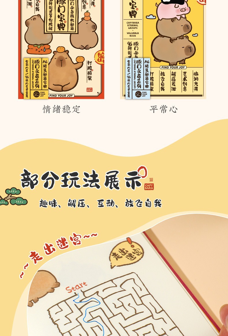 Capabala 시리즈 Dolphin Gate 컬렉션 만화 capybara 귀여운 A6 감압 벤트 오르간 북 어린이 발달 뇌 구멍