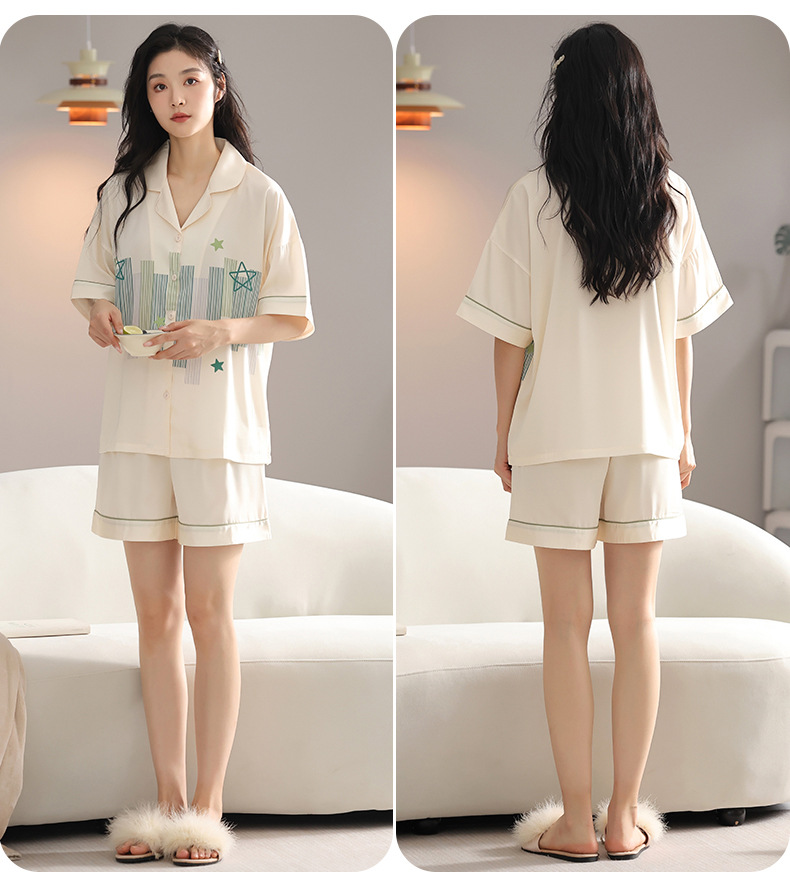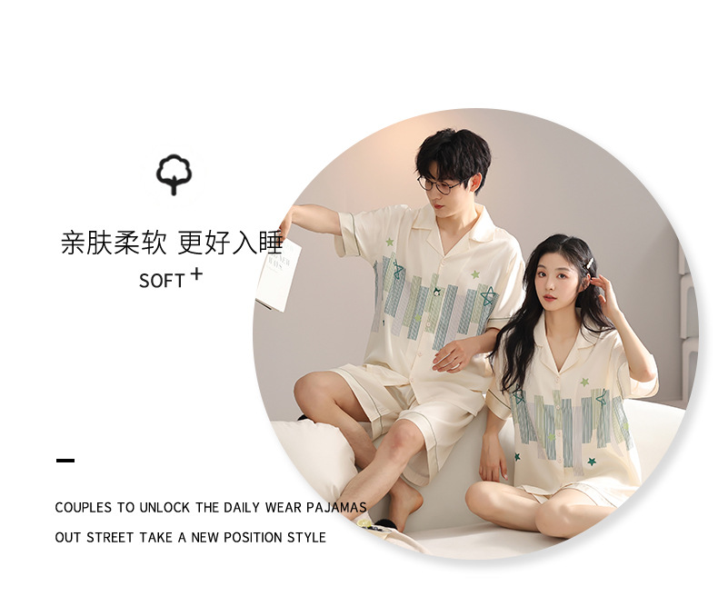 품질 커플 잠옷 여름 인공 실크 남성 실크 아이스 실크 짧은 소매 여성 홈 착용 가슴 패드 세트스토어 가기
