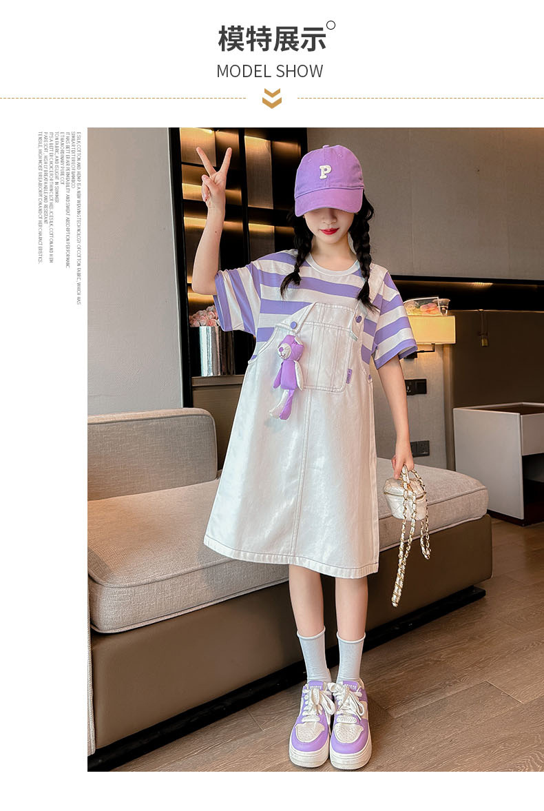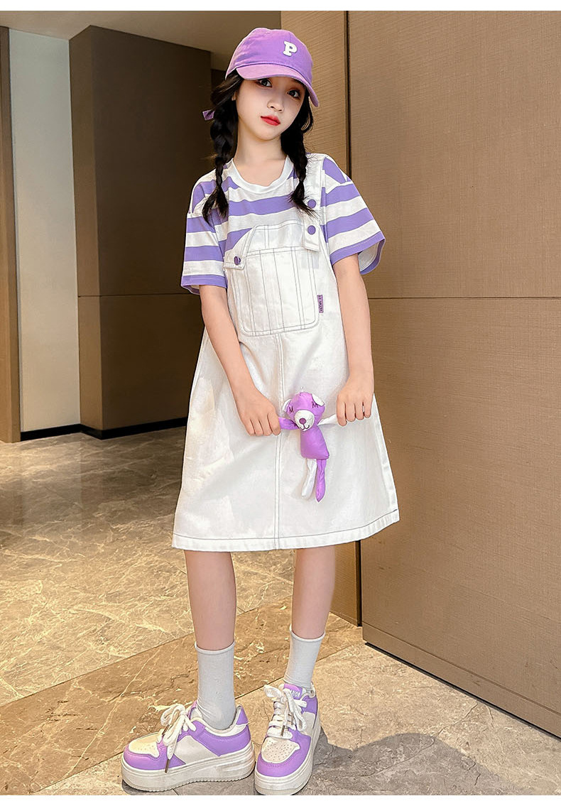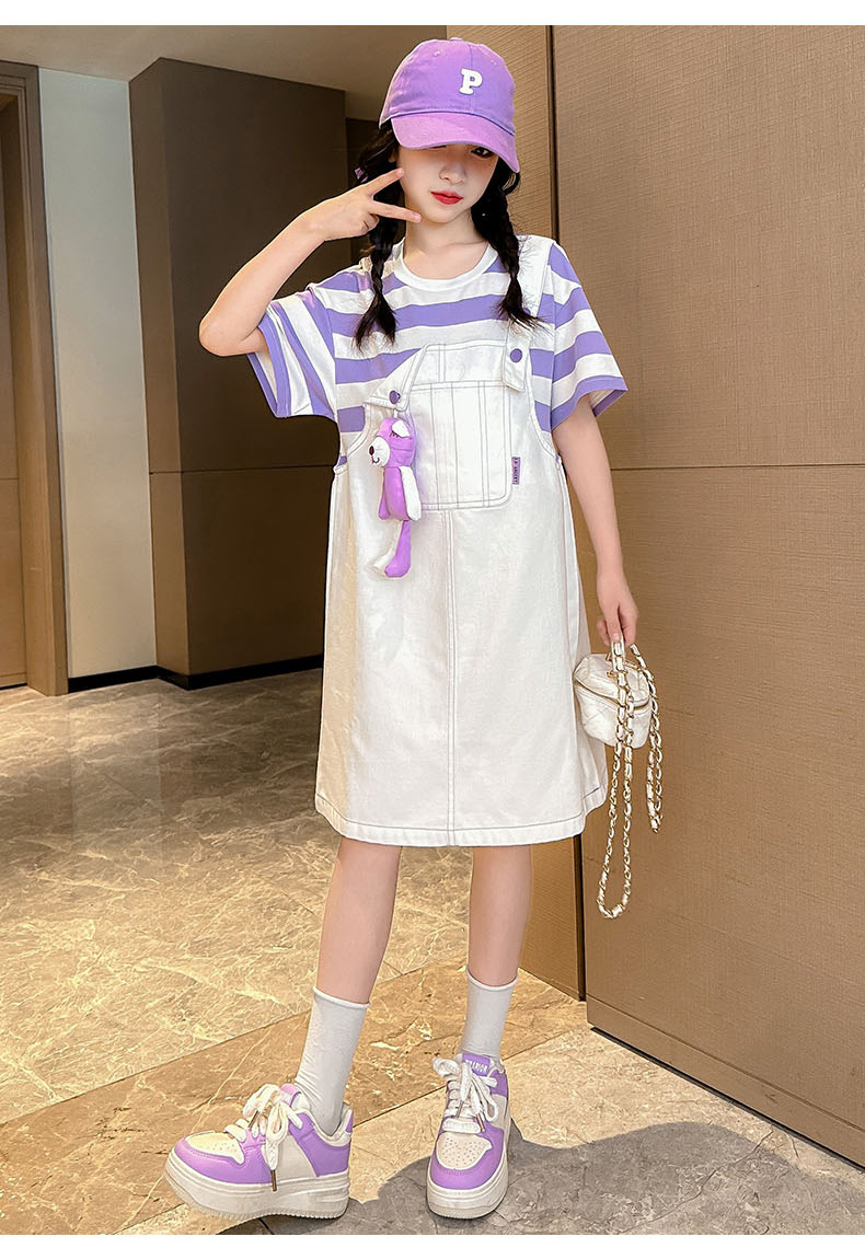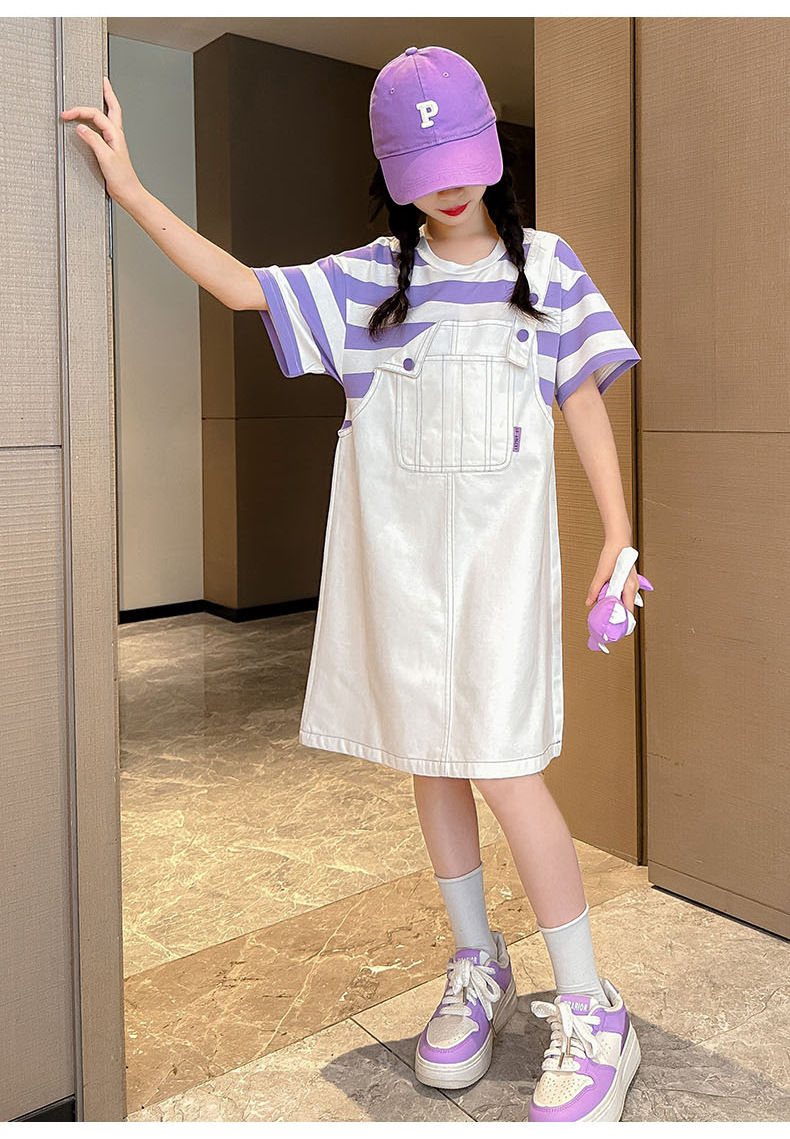 소녀 가짜 투피스 서스펜더 원피스 여름 원피스 2024 새로운 서양식 어린이 원피스 보라색 대학 스타일 공주 원피스스토어 가기