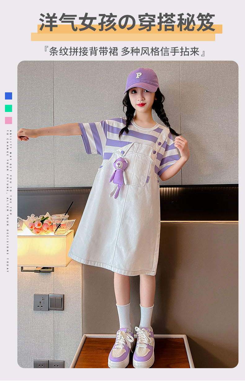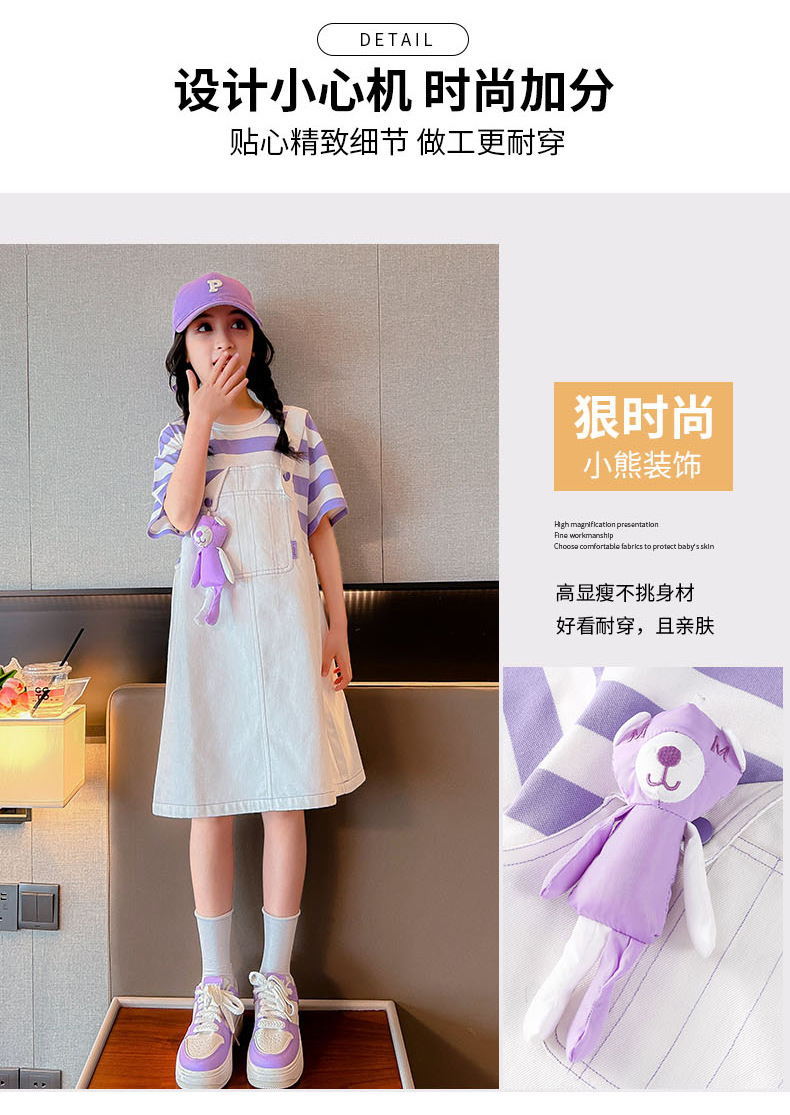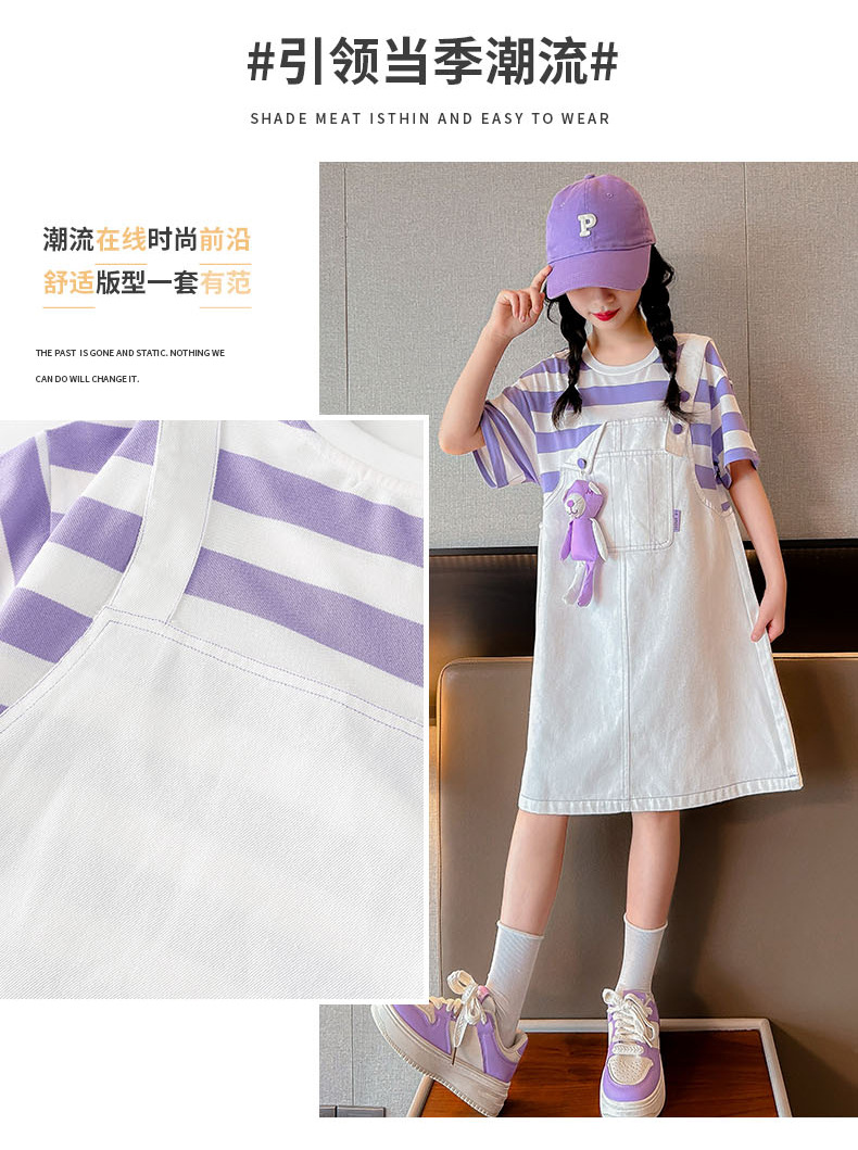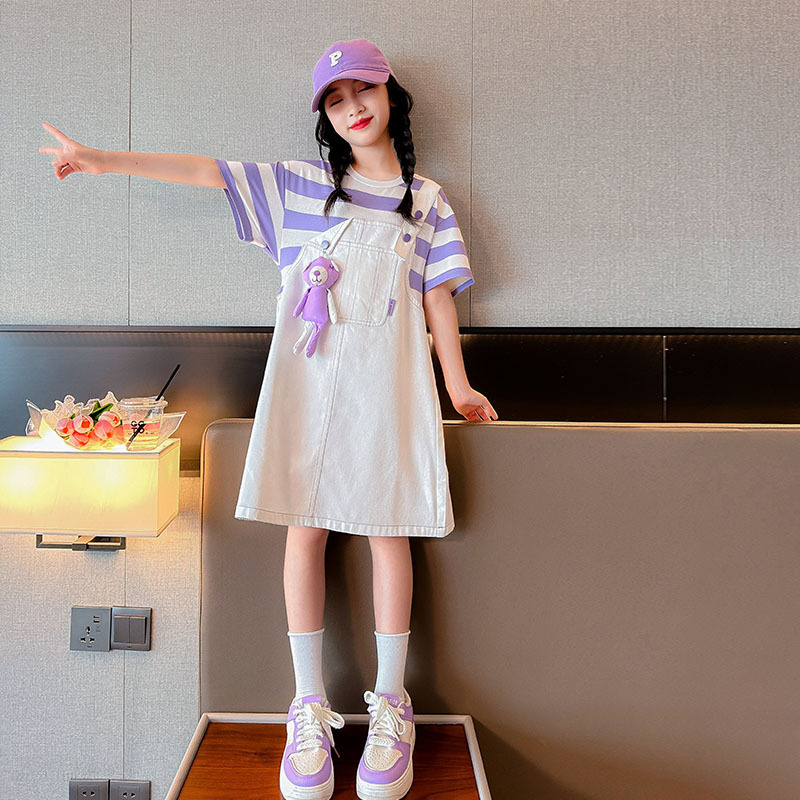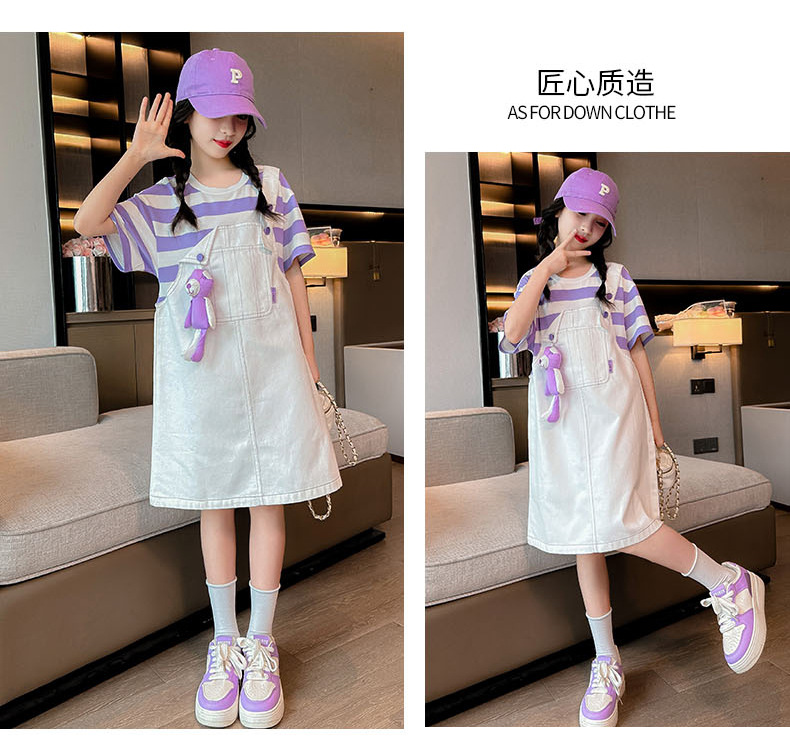 소녀 가짜 투피스 서스펜더 원피스 여름 원피스 2024 새로운 서양식 어린이 원피스 보라색 대학 스타일 공주 원피스스토어 가기
