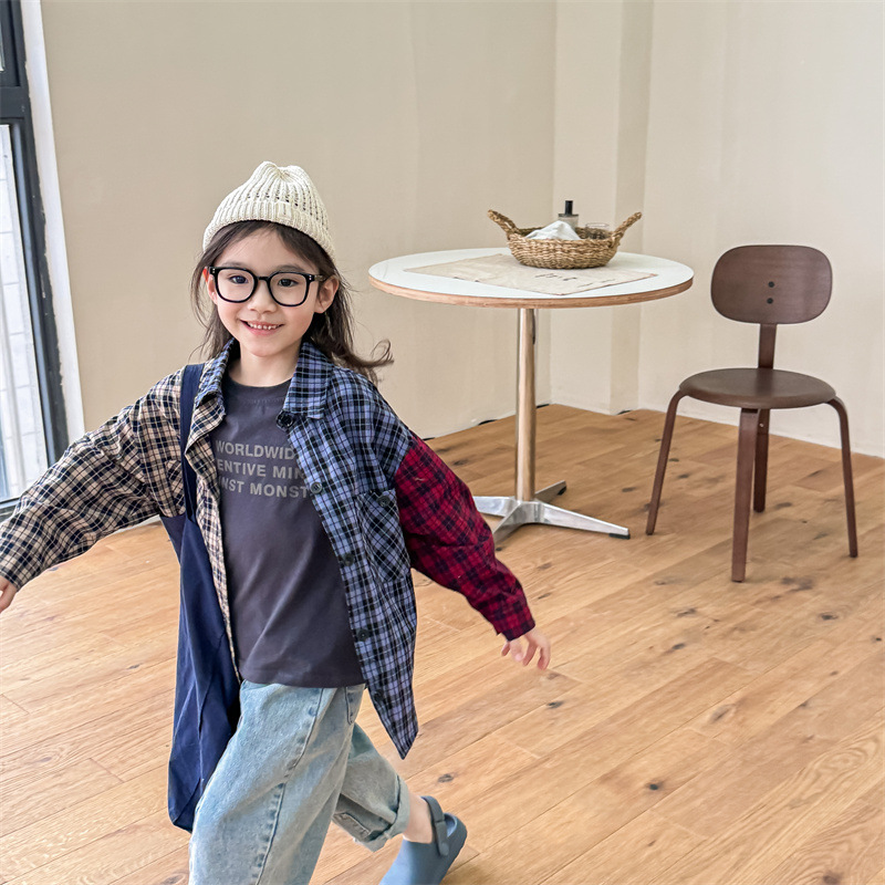 어린이 셔츠 2025 가을 한국 스타일 신상 남녀 아동용 패셔너블한 레터 프린트 셔츠 아기 캐주얼 상의 트렌디스토어 가기