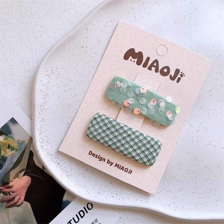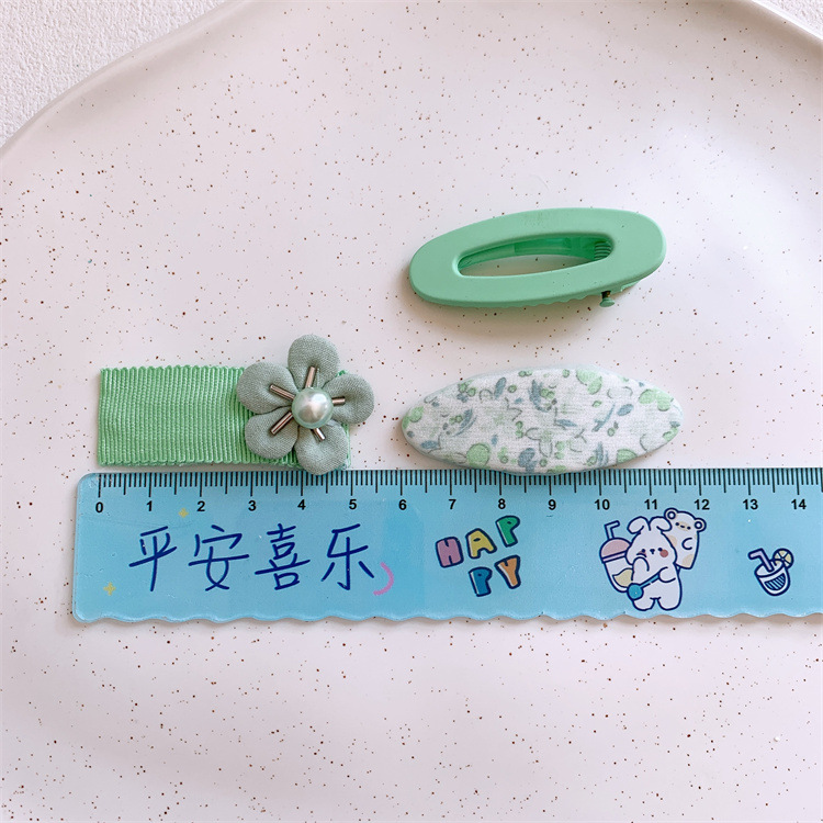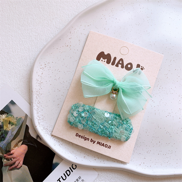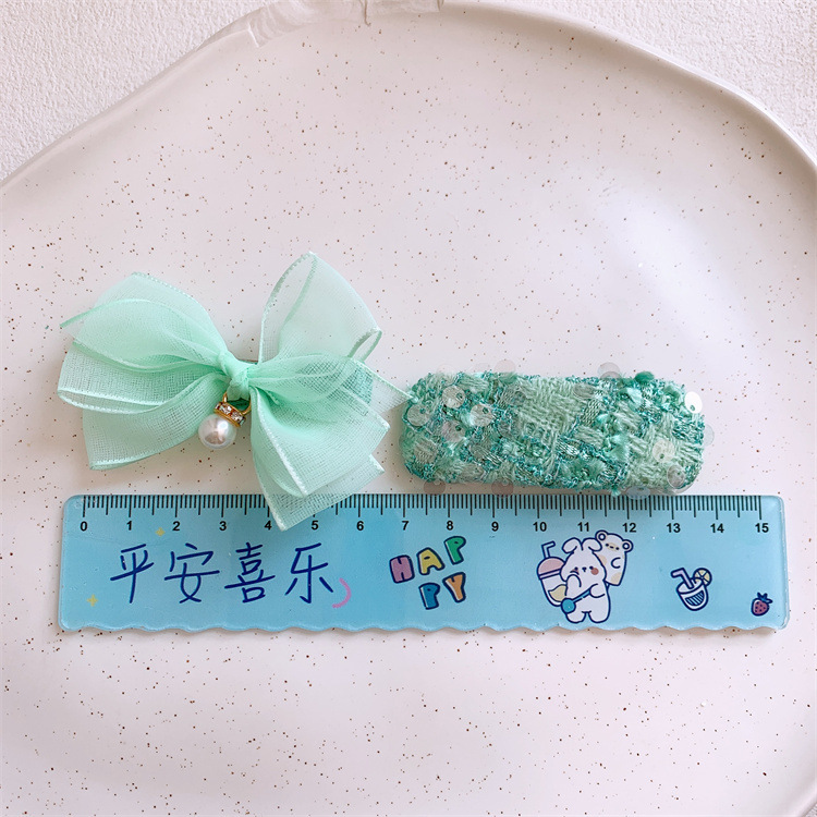 새로운 스타일의 신선한 녹색 어린이 직물 활 머리핀 소녀의 꽃 앞머리 부러진 머리 BB 클립 머리핀 머리 장식
