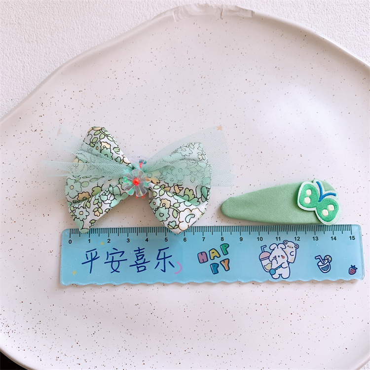 새로운 스타일의 신선한 녹색 어린이 직물 활 머리핀 소녀의 꽃 앞머리 부러진 머리 BB 클립 머리핀 머리 장식스토어 가기