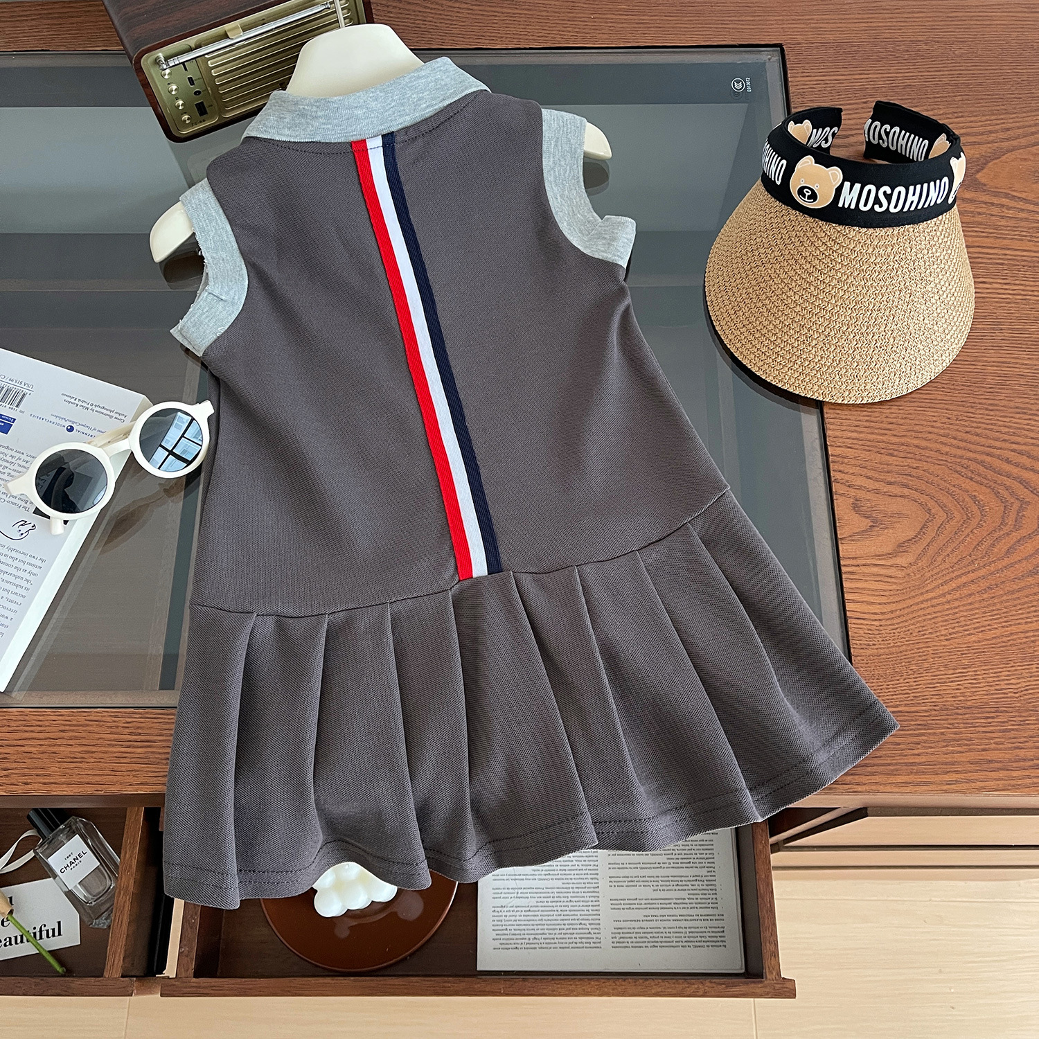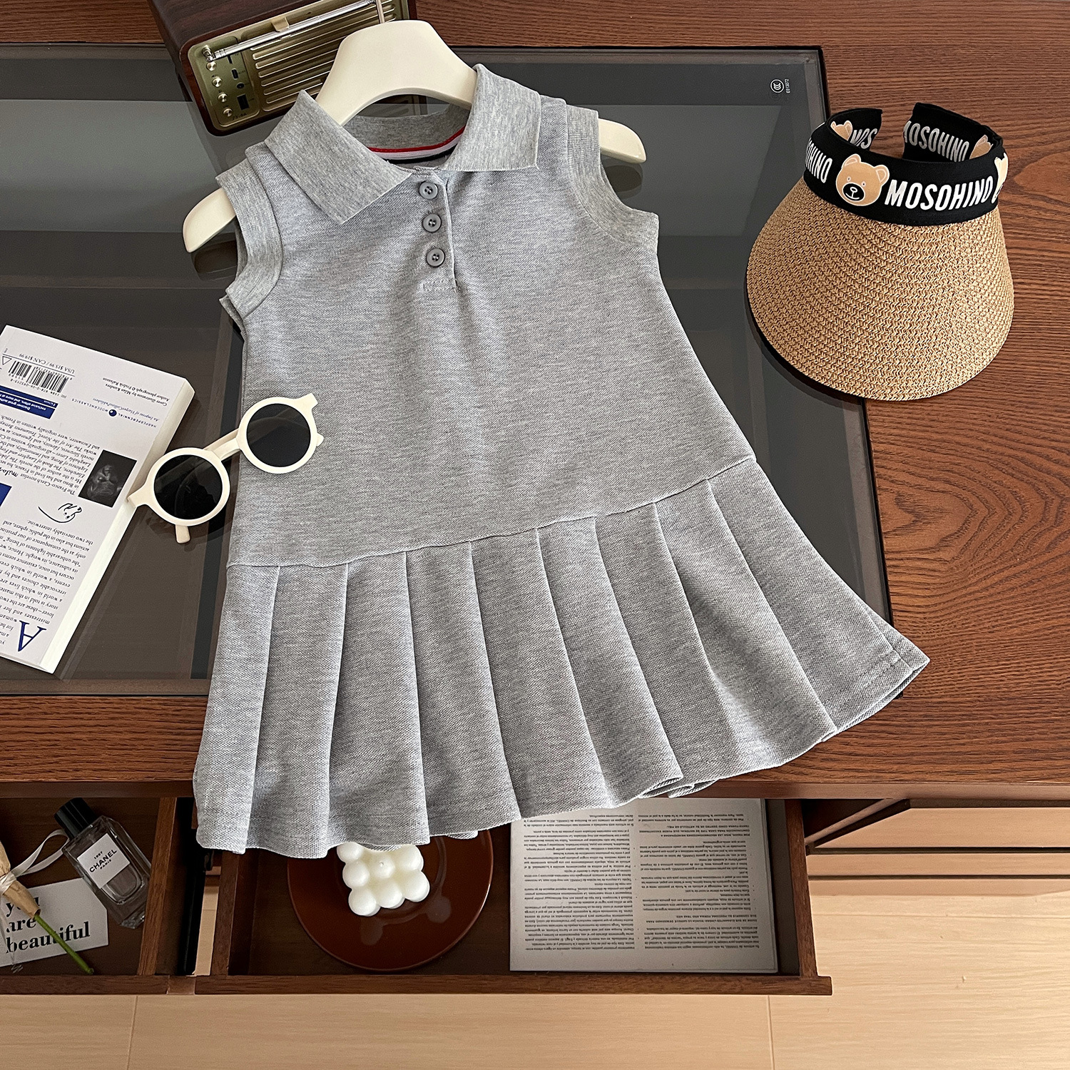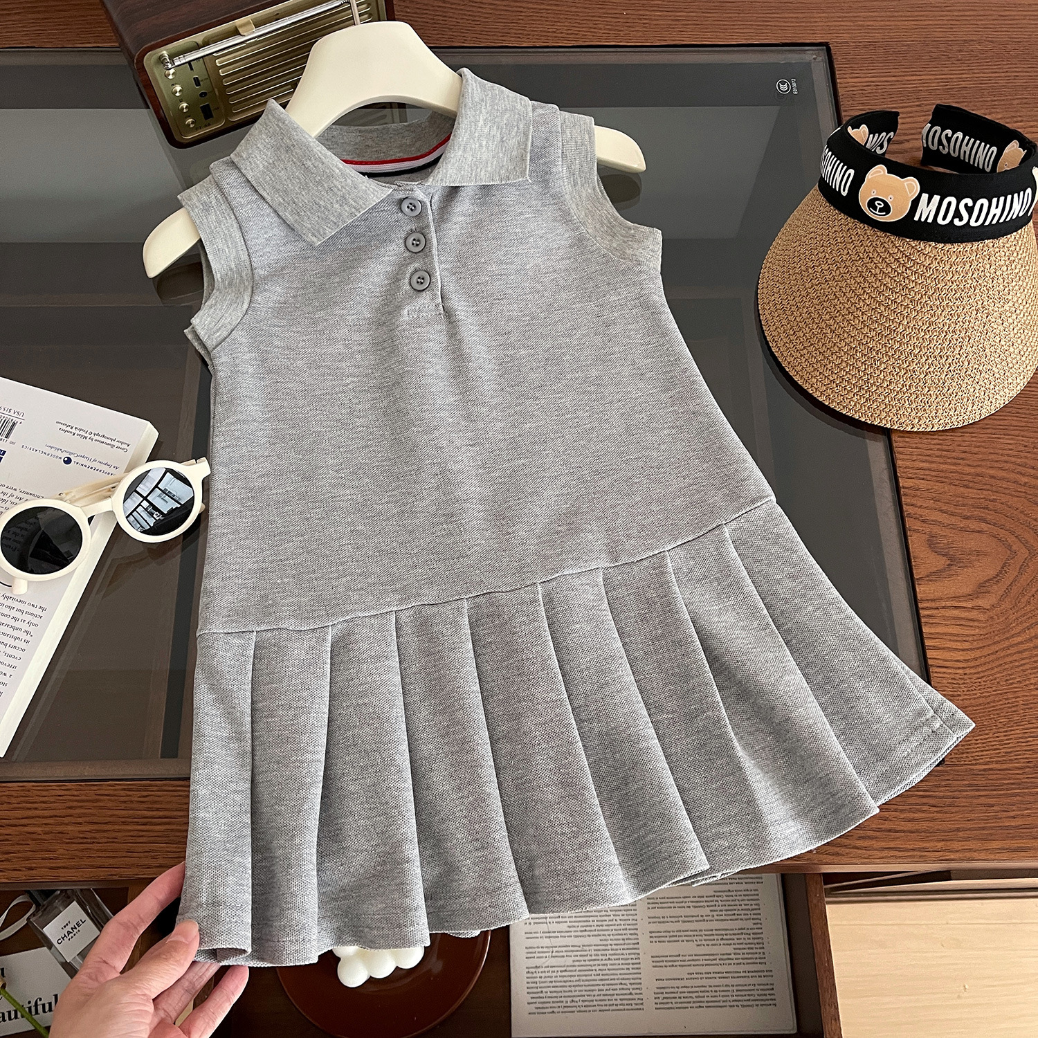어린이 원피스 2024 여름 새로운 한국식 어린이 캐주얼 셔츠 칼라 민소매 주름 원피스 국경 간 배달
