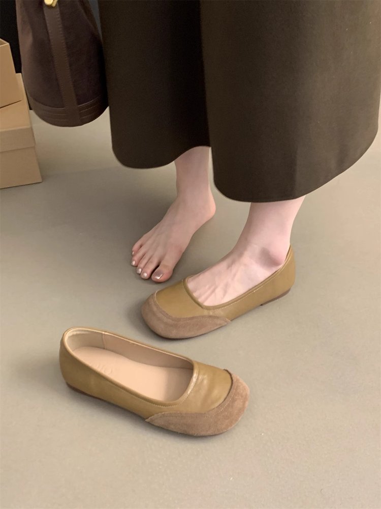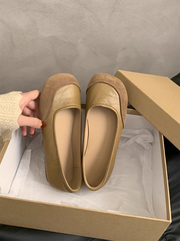 레트로 둥근 발가락 얕은 입 싱글 레이어 신발 봄과 가을 새로운 한국 스타일 프랑스 저녁 스타일 플랫 슬립 온 캐주얼 완두콩 신발스토어 가기