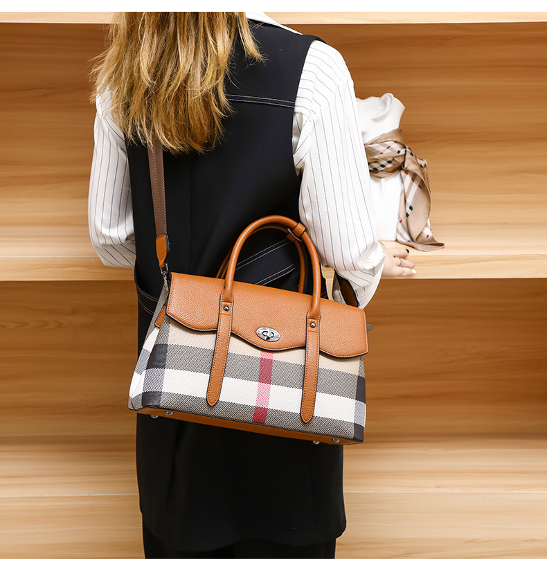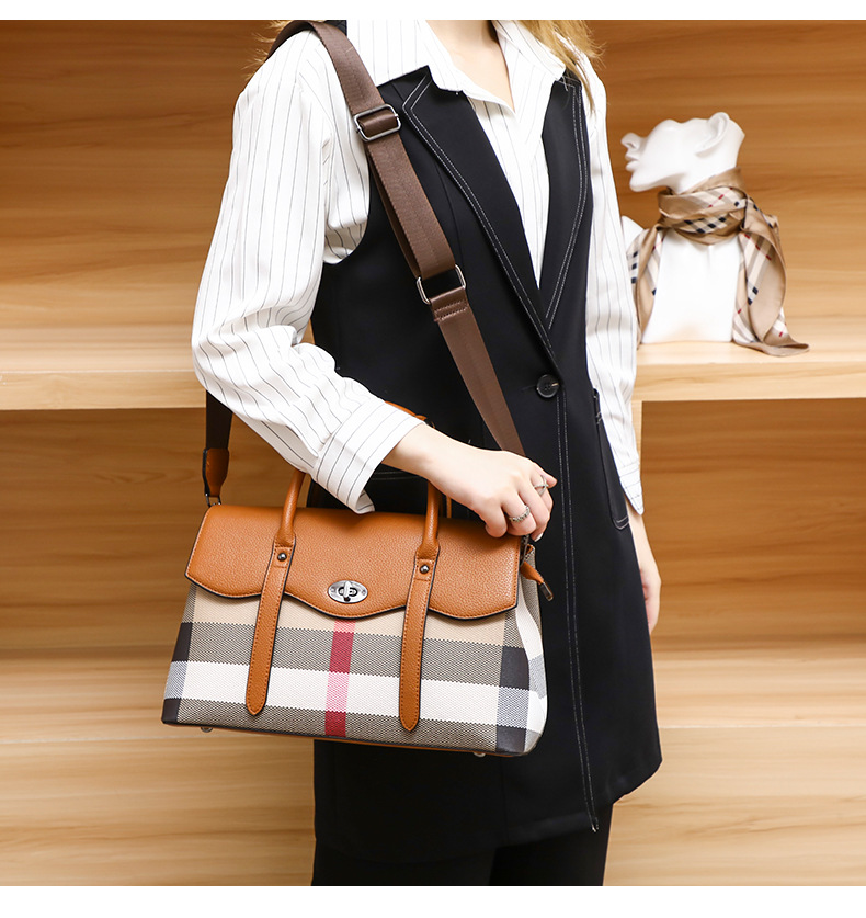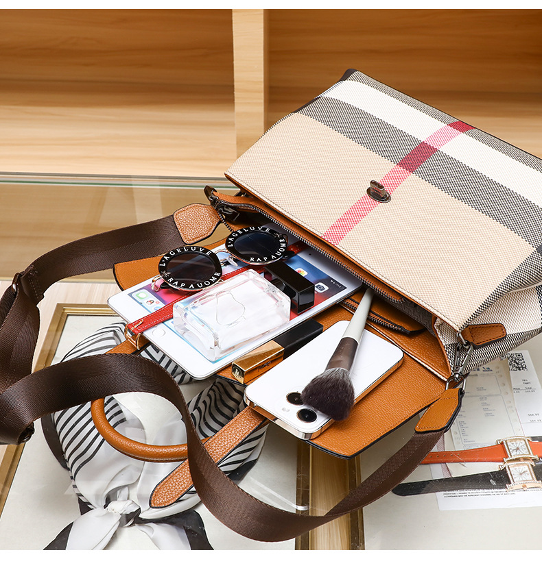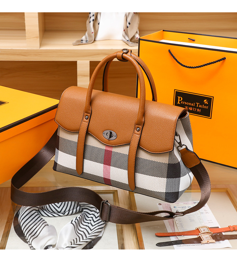 정품 가죽 여성 가방 2024 신상 패션 스퀘어 백 여성 다용도 핸드백 크로스백 숄더백 독특한 체크무늬 가방스토어 가기
