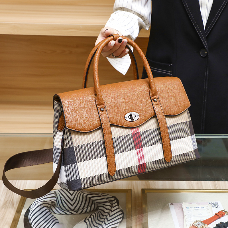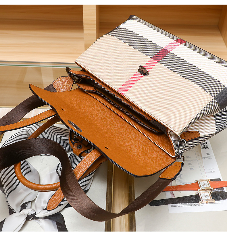 정품 가죽 여성 가방 2024 신상 패션 스퀘어 백 여성 다용도 핸드백 크로스백 숄더백 독특한 체크무늬 가방