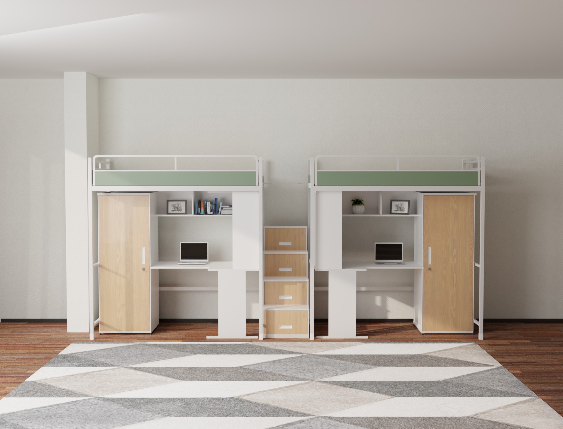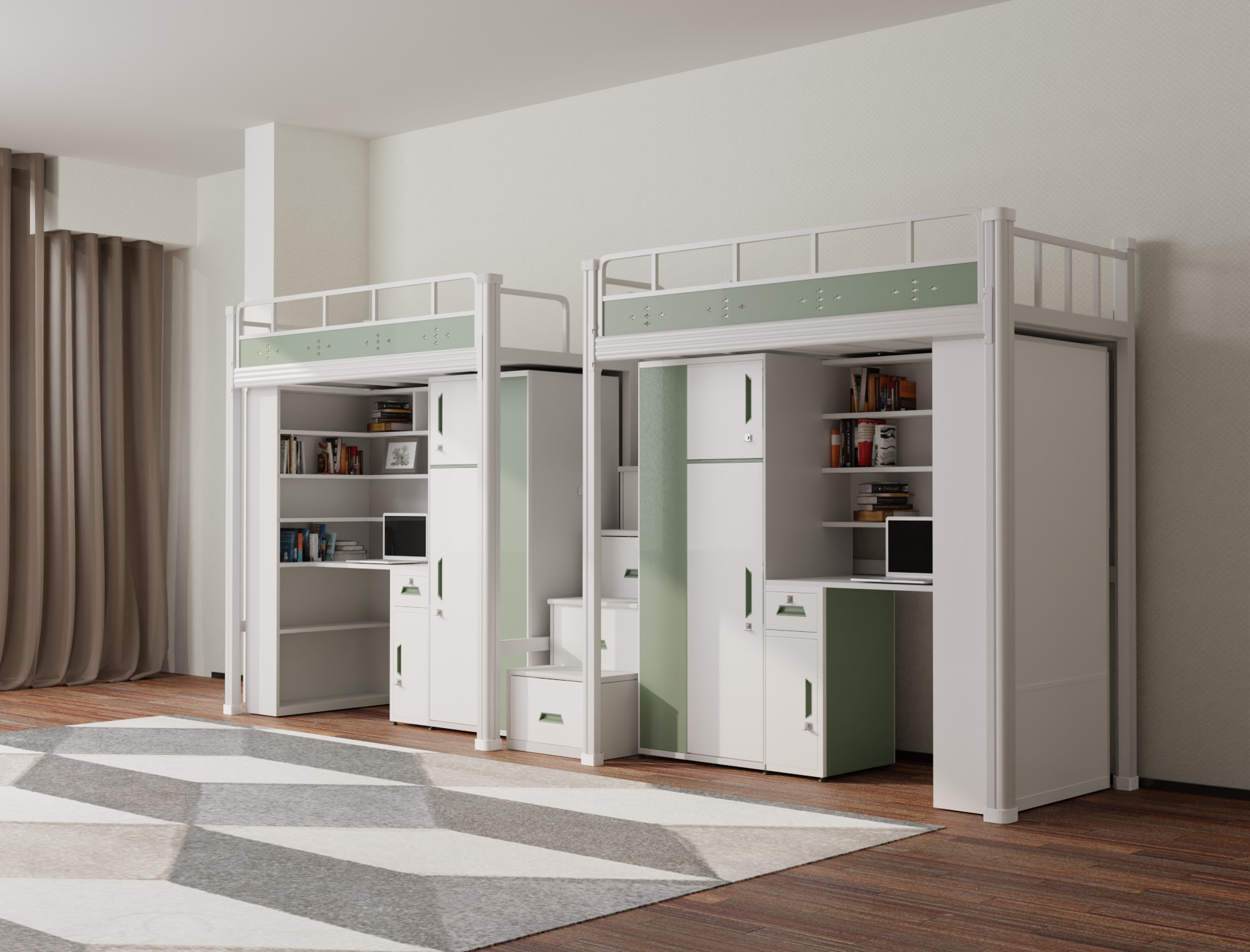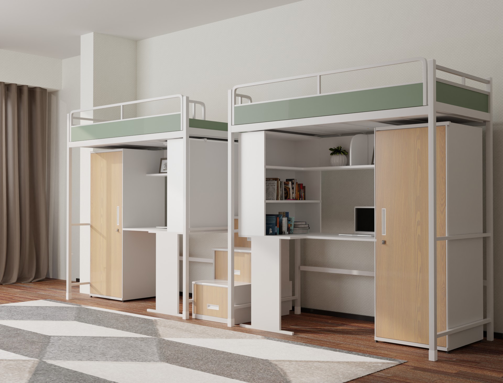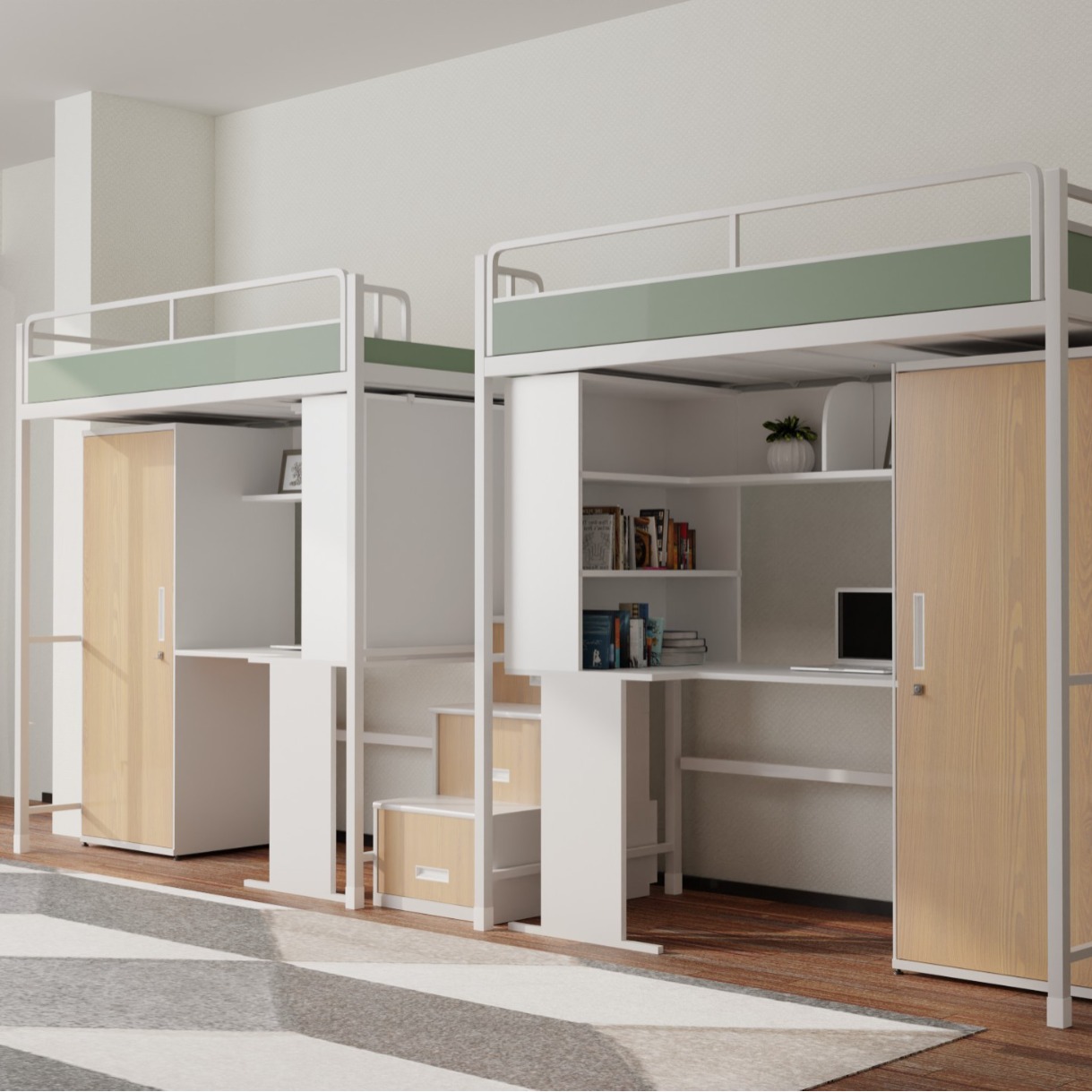 침대 위에 테이블이 있는 아파트 침대, 이층 학교 기숙사 학생 직원용 철제 침대, 강철 금속 두꺼운 싱글 침대, 심플한 디자인