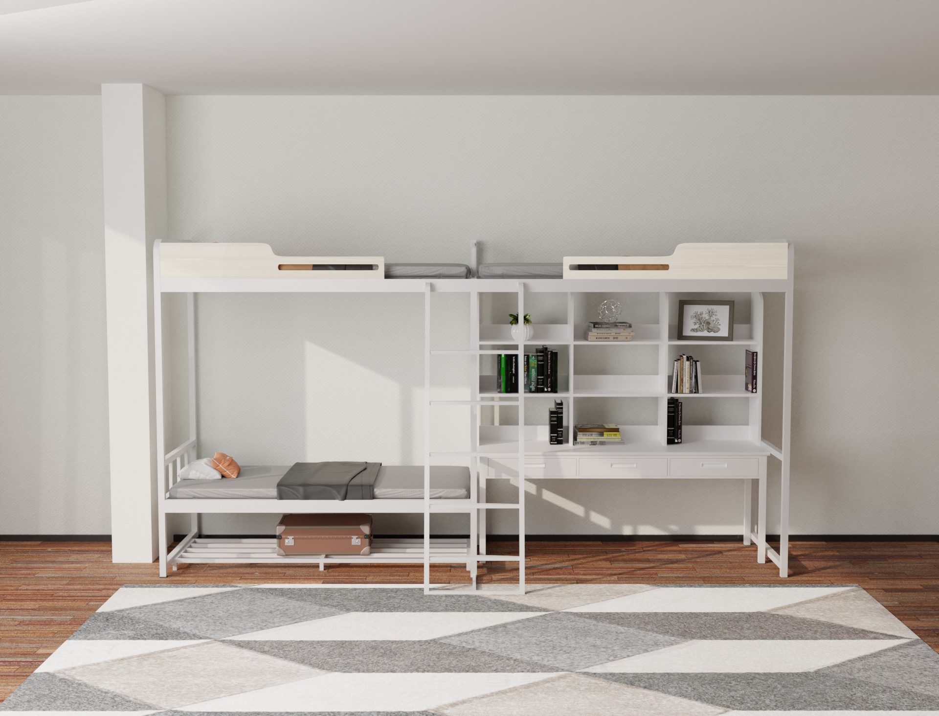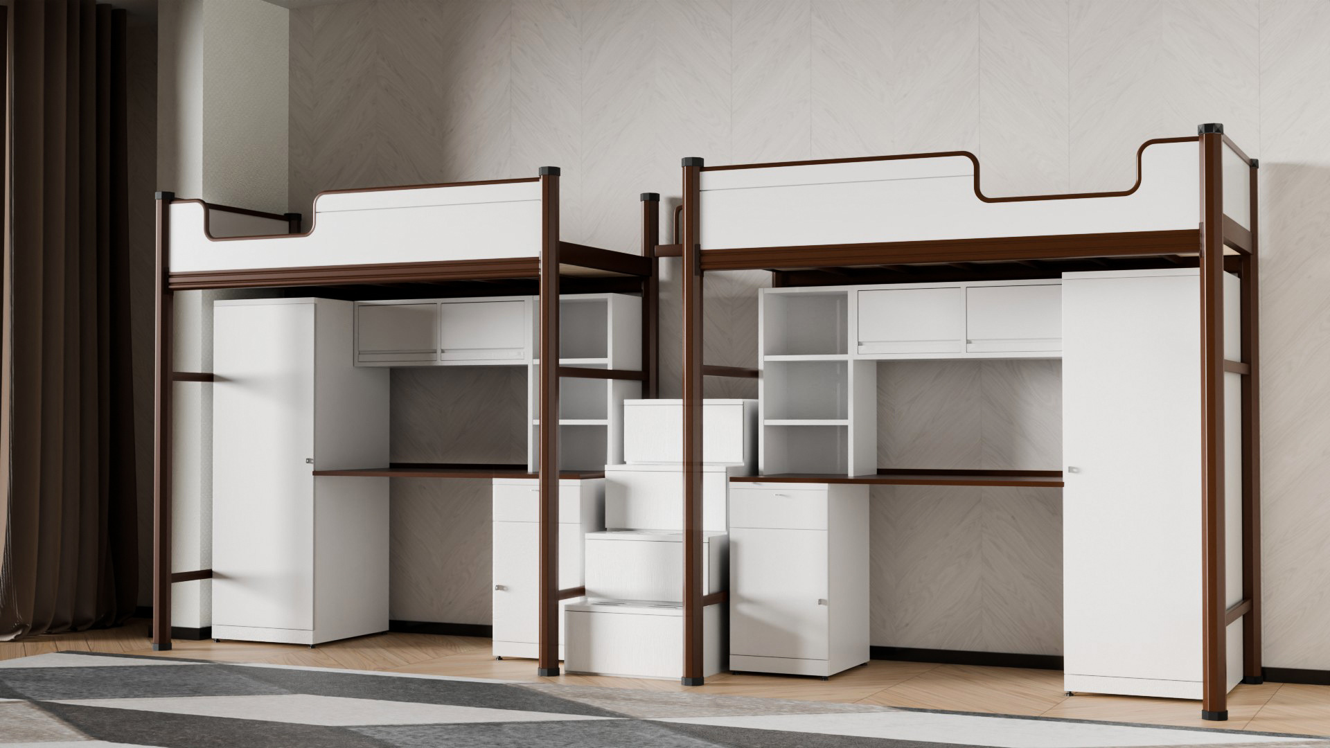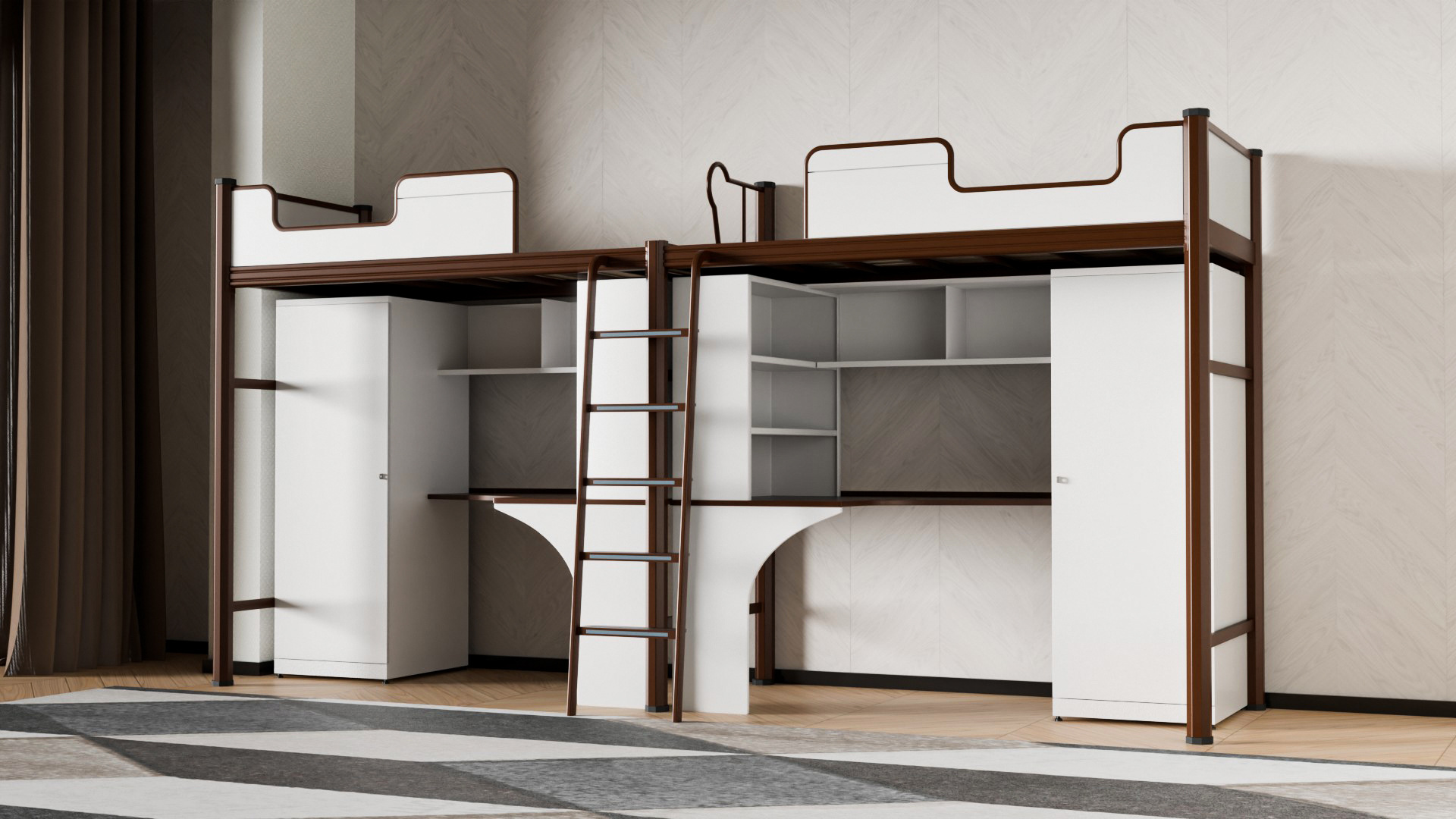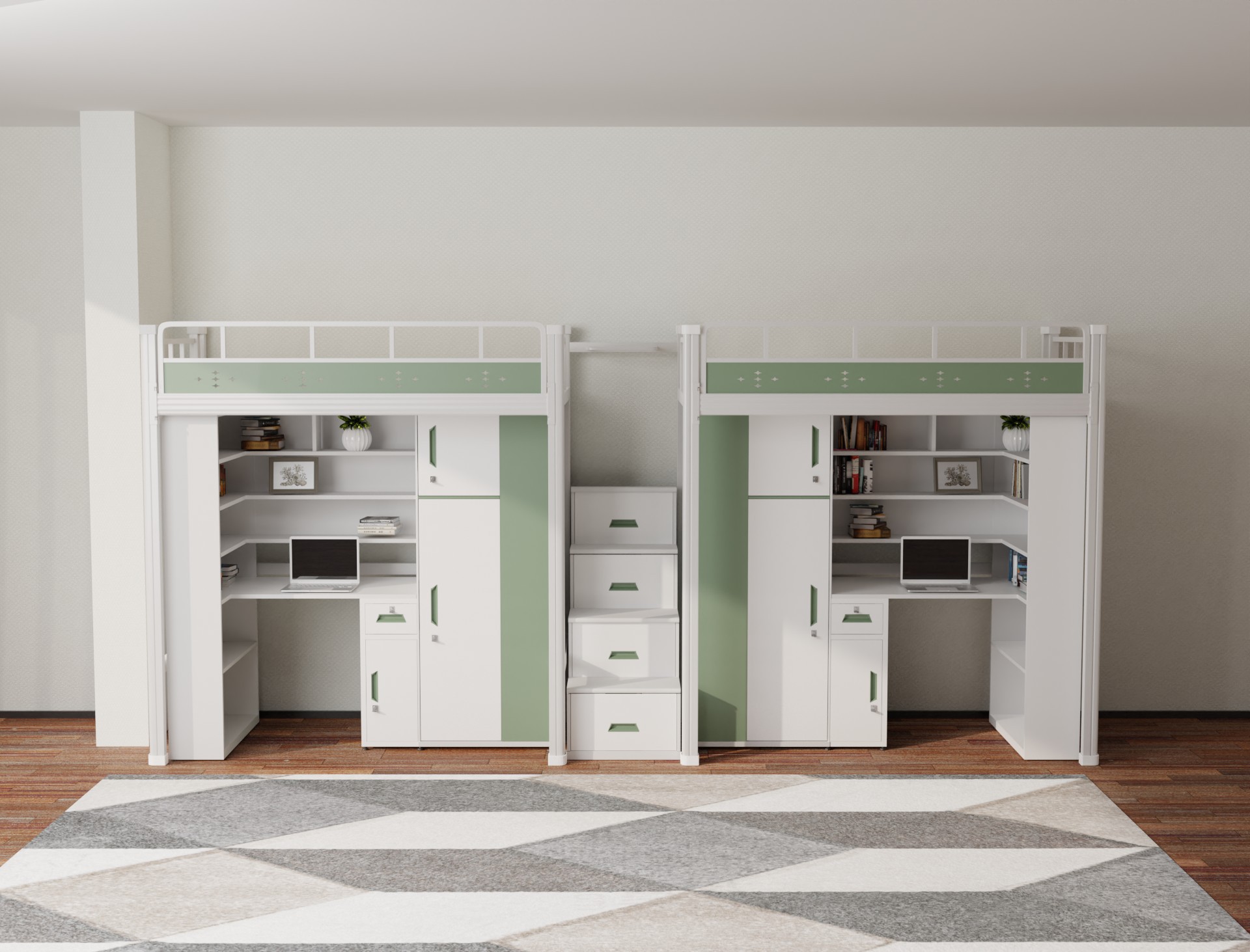 침대 위에 테이블이 있는 아파트 침대, 이층 학교 기숙사 학생 직원용 철제 침대, 강철 금속 두꺼운 싱글 침대, 심플한 디자인