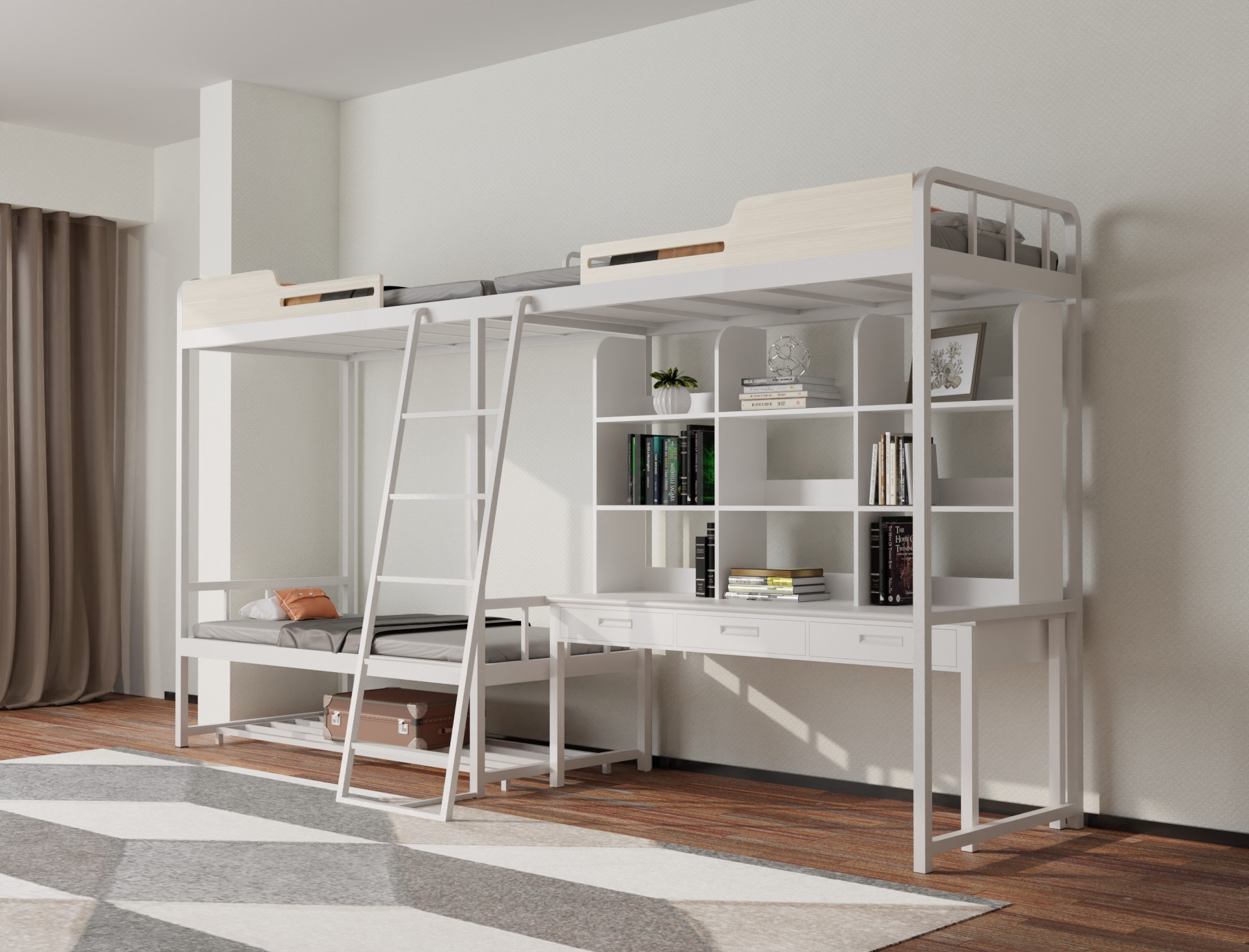 침대 위에 테이블이 있는 아파트 침대, 이층 학교 기숙사 학생 직원용 철제 침대, 강철 금속 두꺼운 싱글 침대, 심플한 디자인스토어 가기