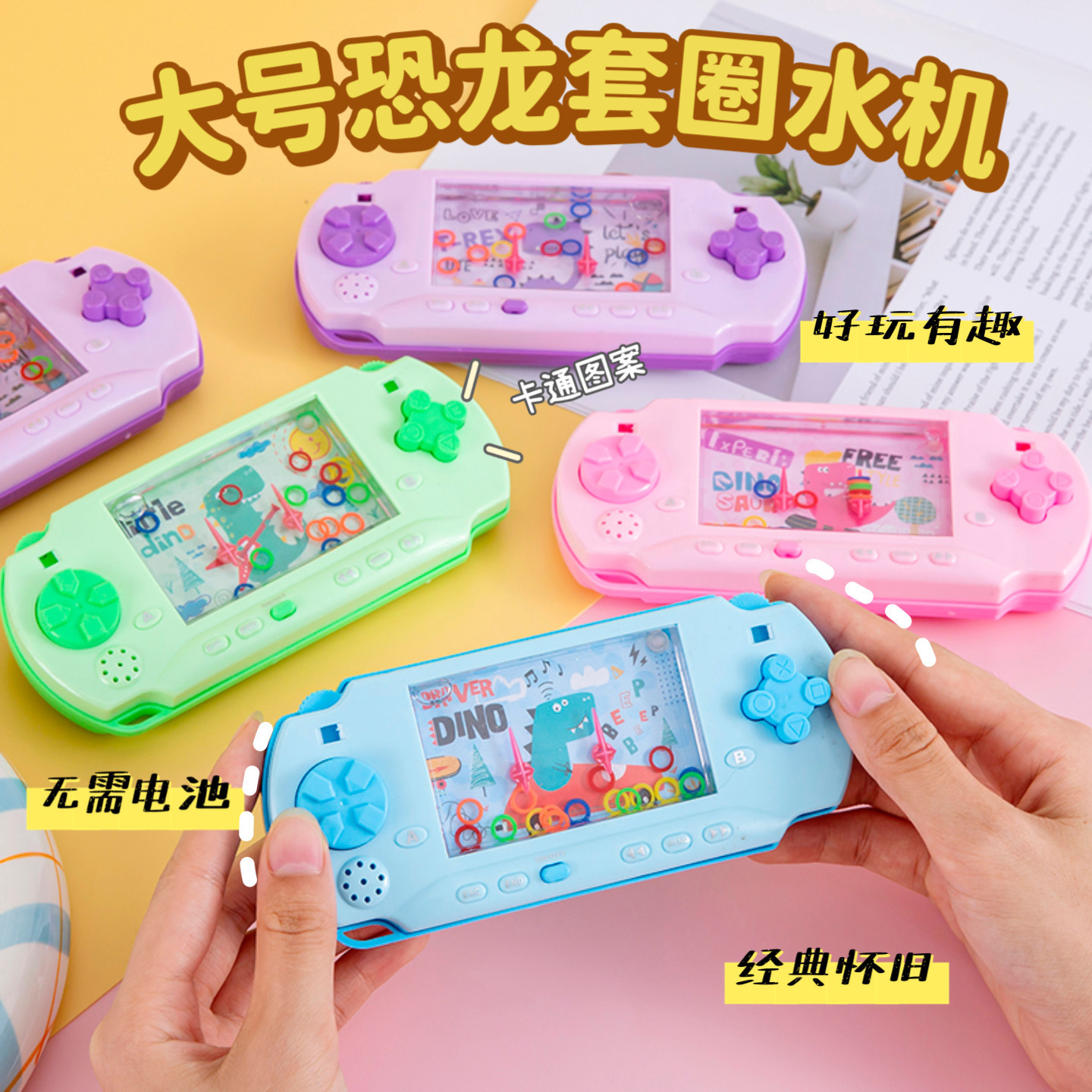 휴대용 공룡 반지 작은 장난감 어린이 교육 반지 물 기계 90 향수 고전 게임 기계 어린이 선물