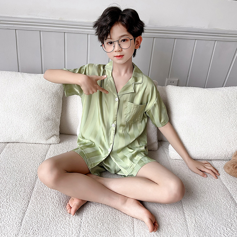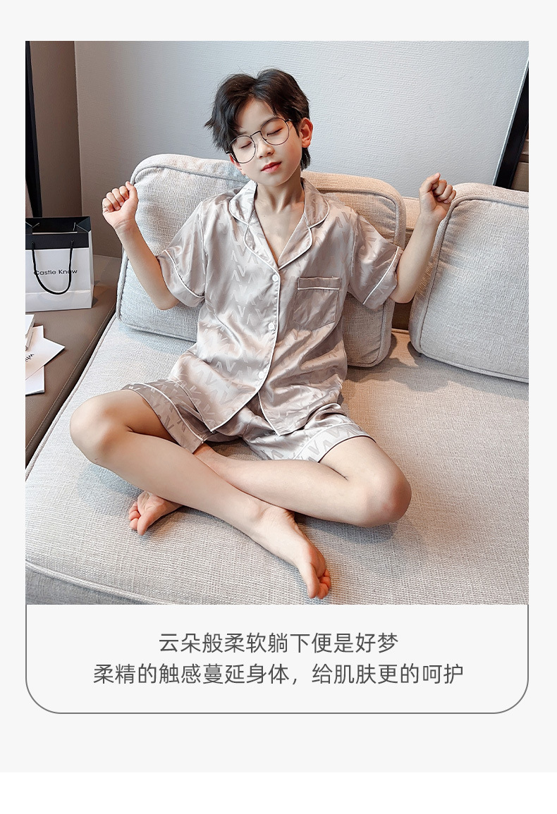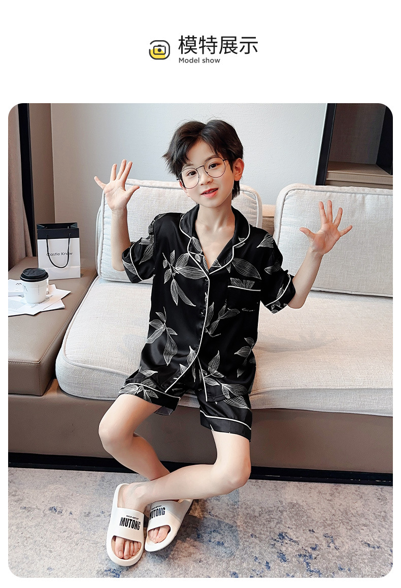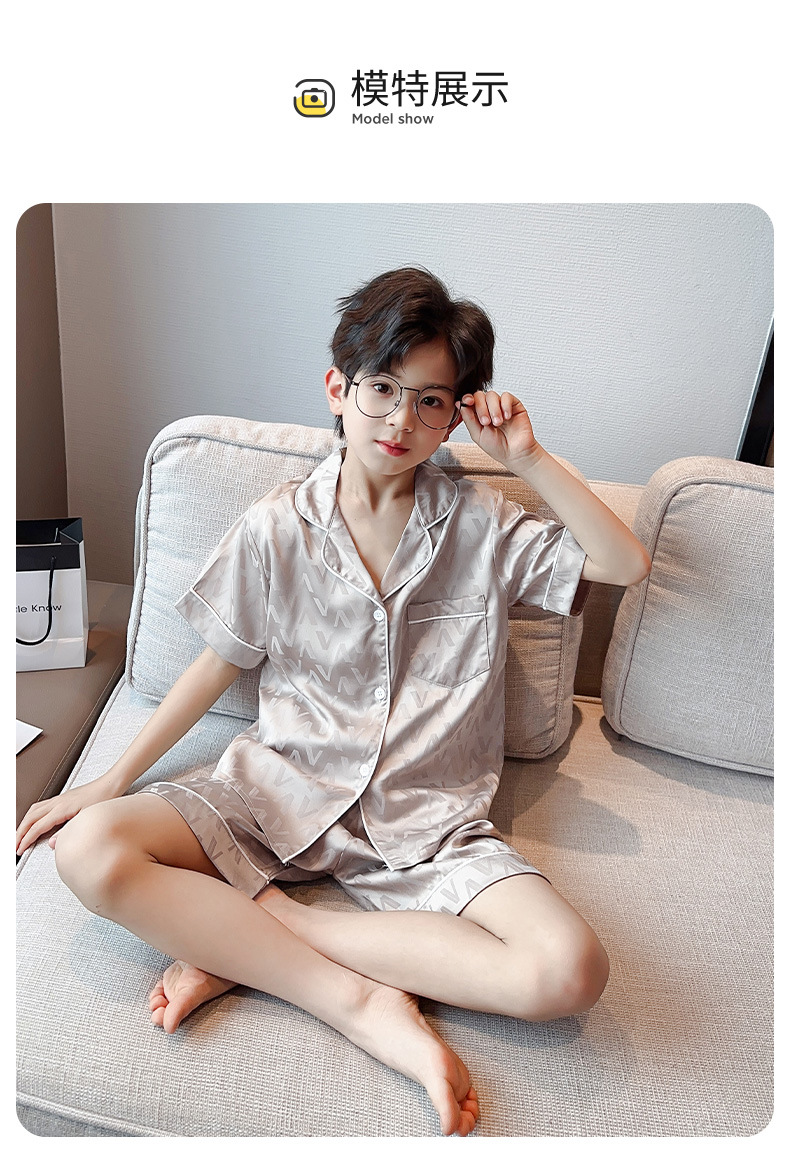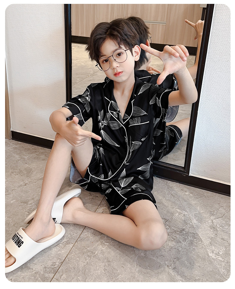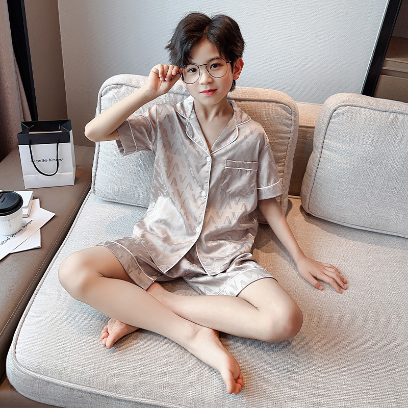 소년 얼음 실크 잠옷 여름 반팔 2025 새로운 어린이 여름 옷 가정 옷 인터넷 연예인 큰 어린이 여름 에어컨 옷스토어 가기