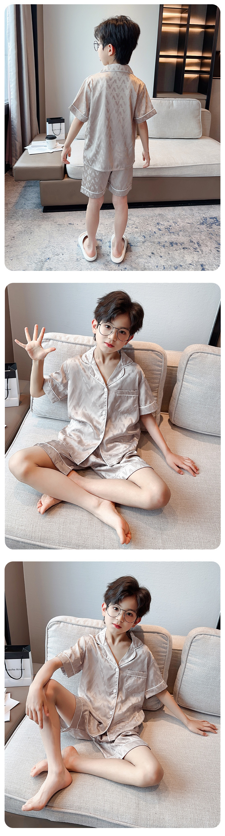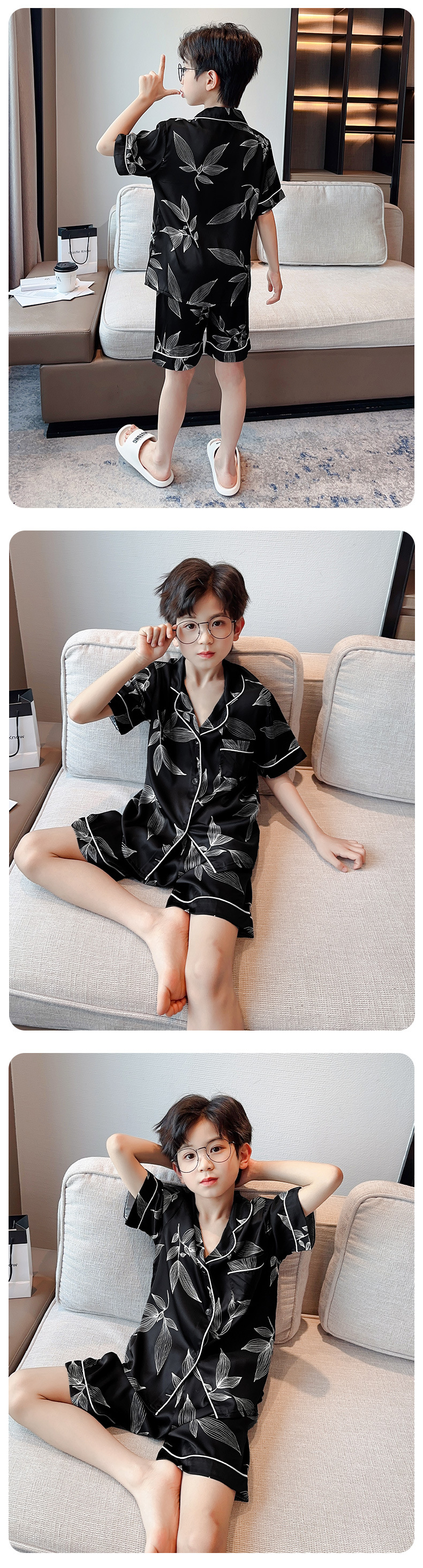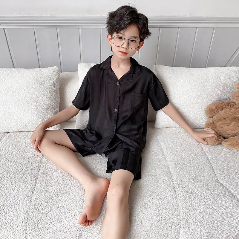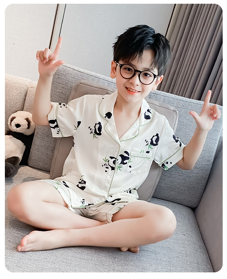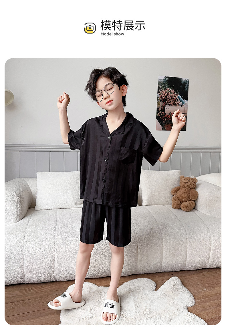 소년 얼음 실크 잠옷 여름 반팔 2025 새로운 어린이 여름 옷 가정 옷 인터넷 연예인 큰 어린이 여름 에어컨 옷스토어 가기