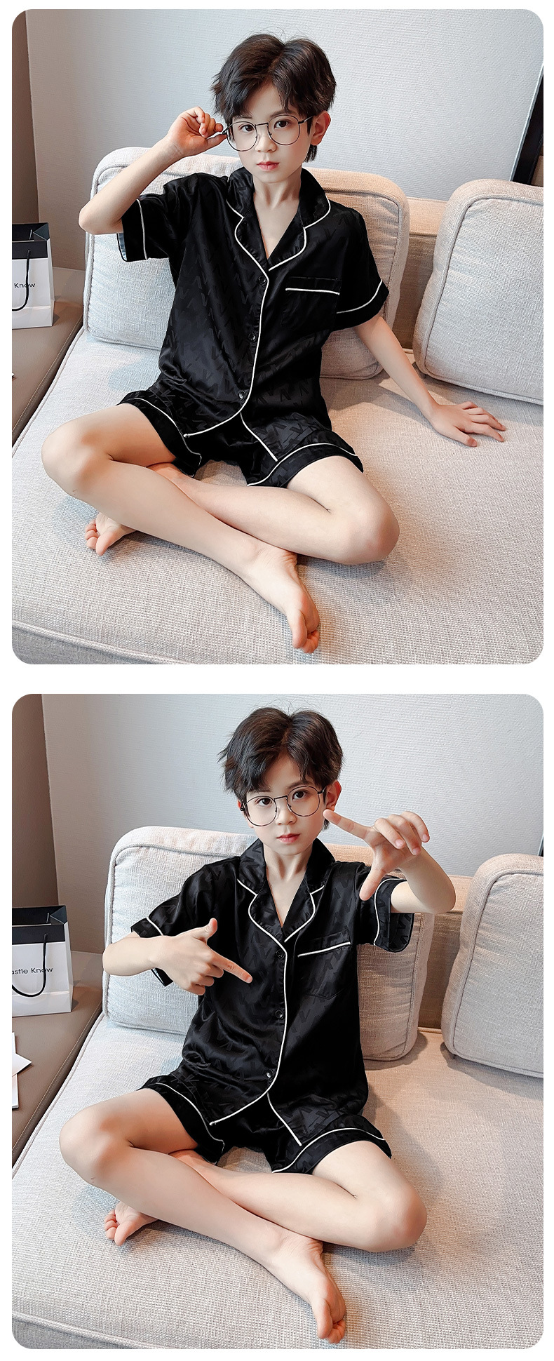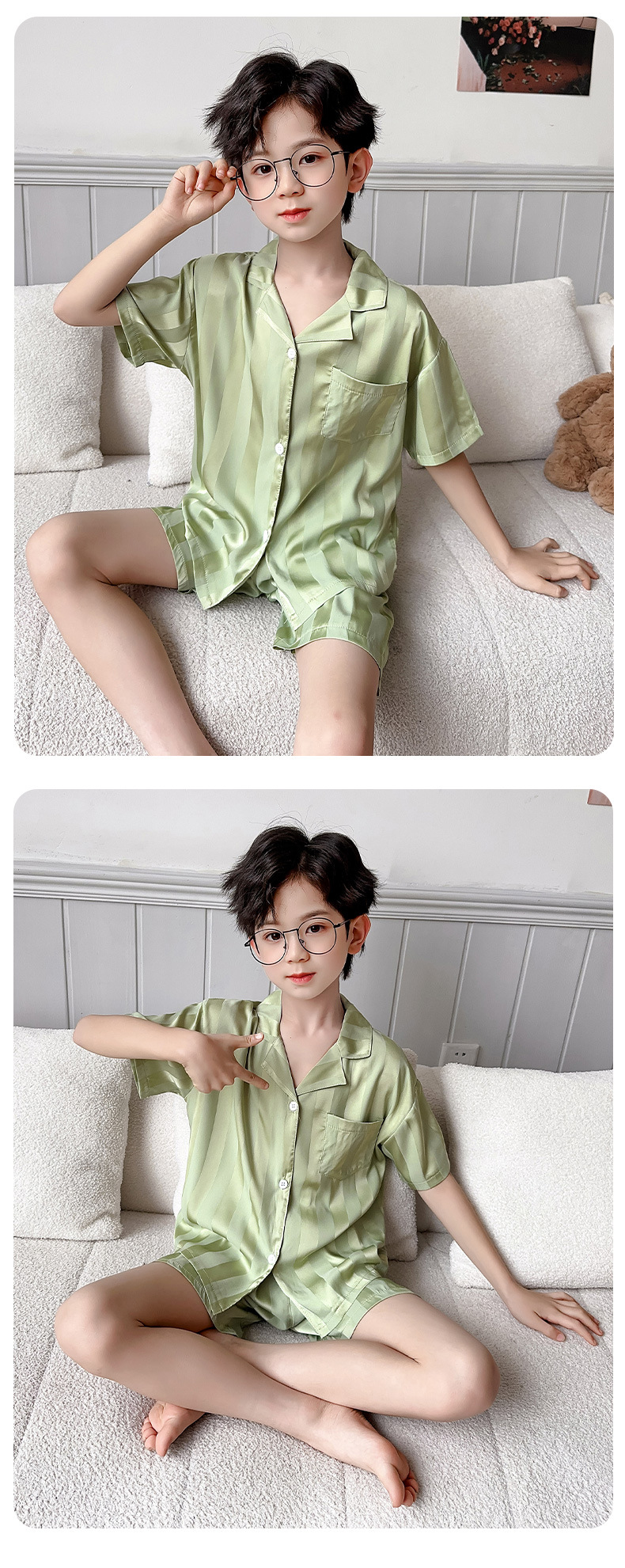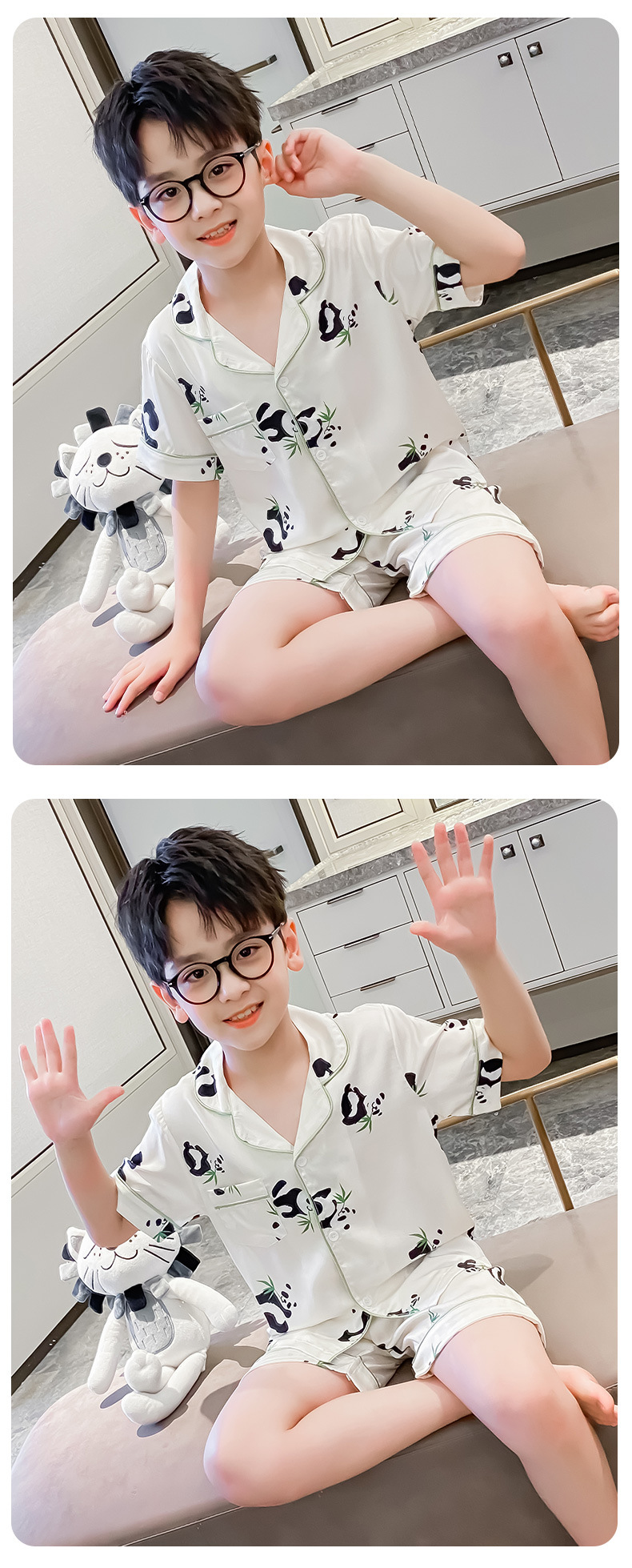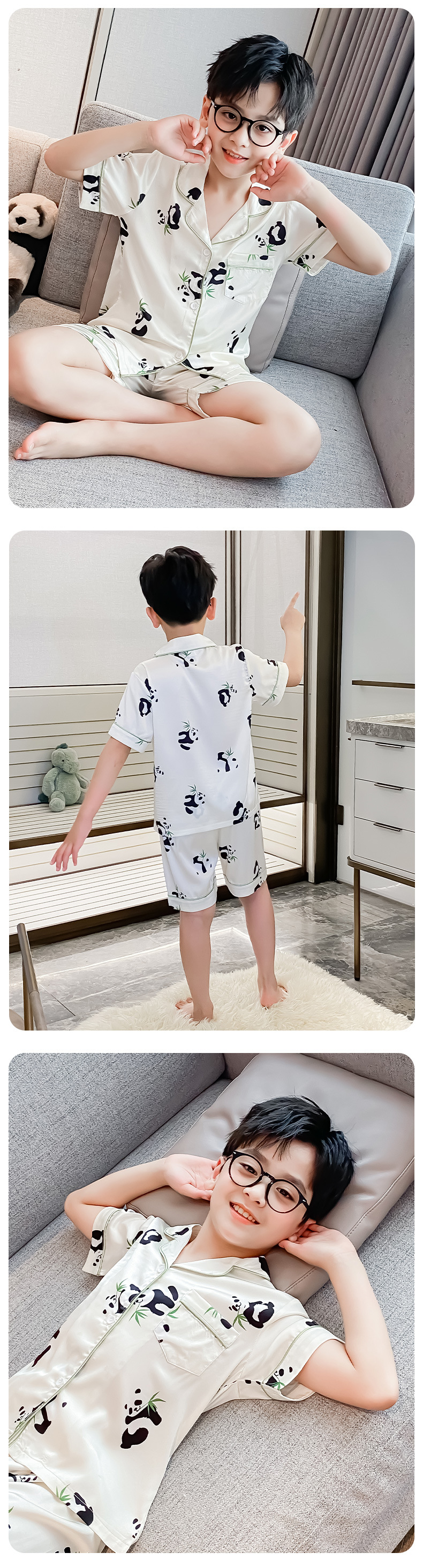 소년 얼음 실크 잠옷 여름 반팔 2025 새로운 어린이 여름 옷 가정 옷 인터넷 연예인 큰 어린이 여름 에어컨 옷스토어 가기