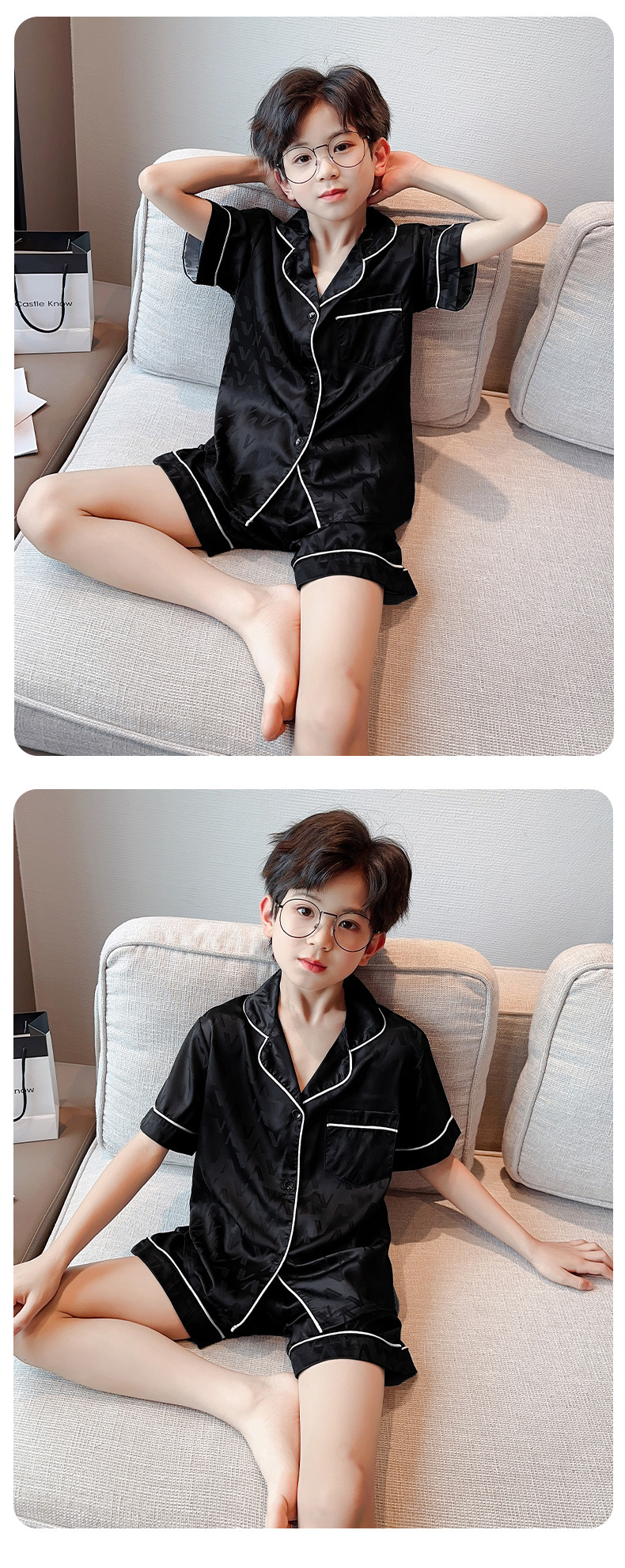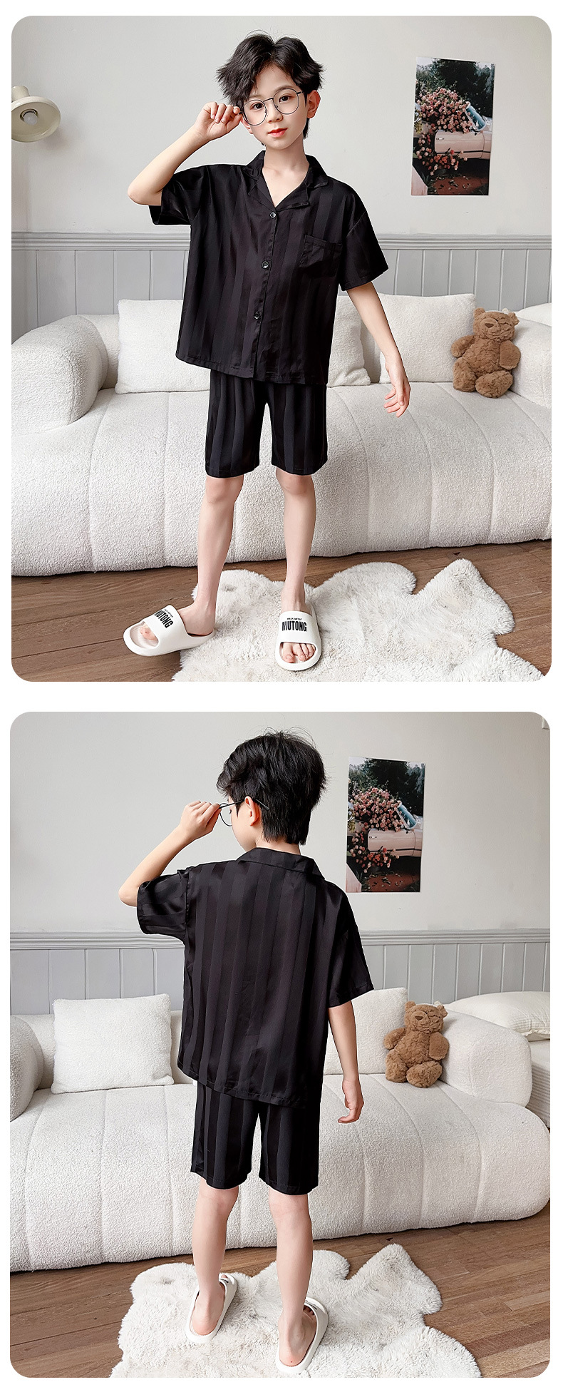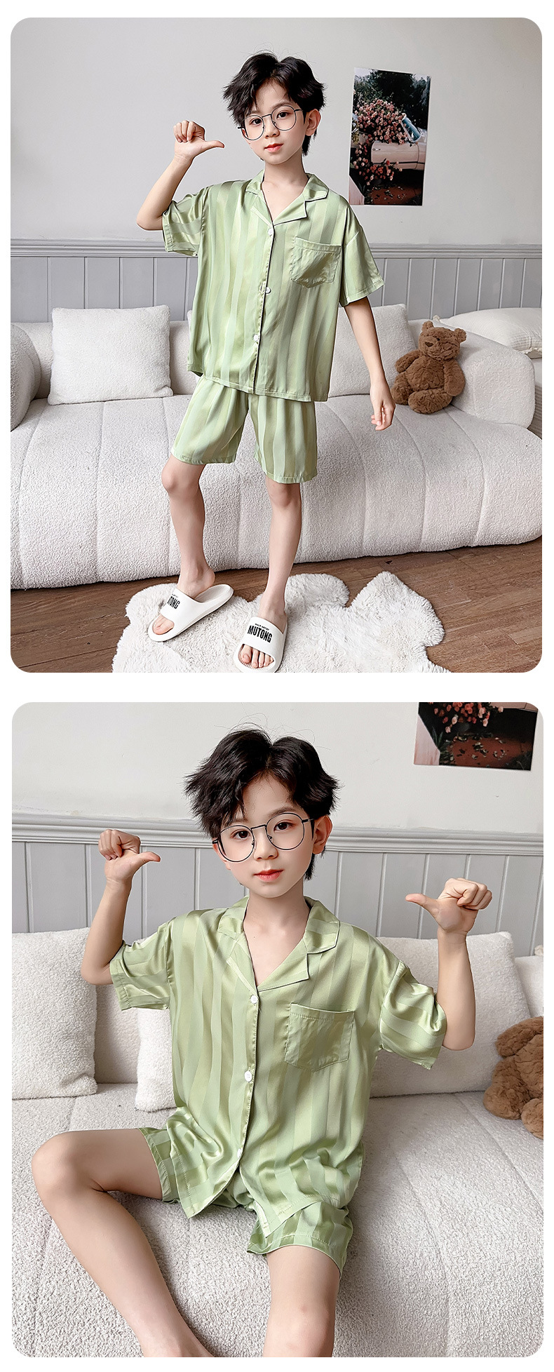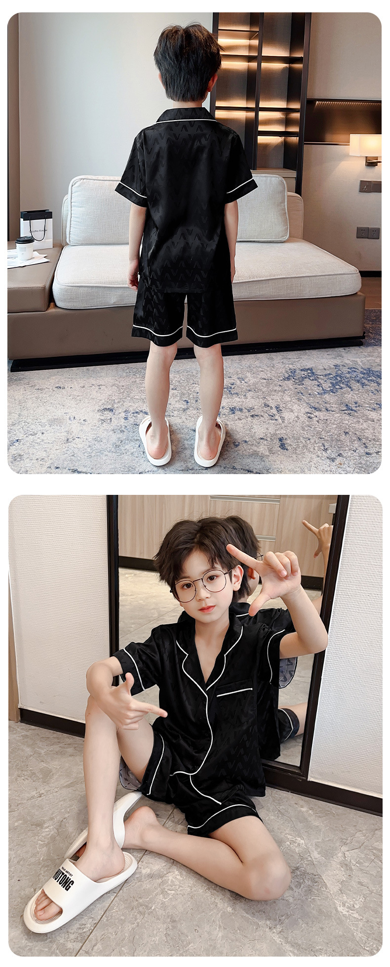 소년 얼음 실크 잠옷 여름 반팔 2025 새로운 어린이 여름 옷 가정 옷 인터넷 연예인 큰 어린이 여름 에어컨 옷스토어 가기